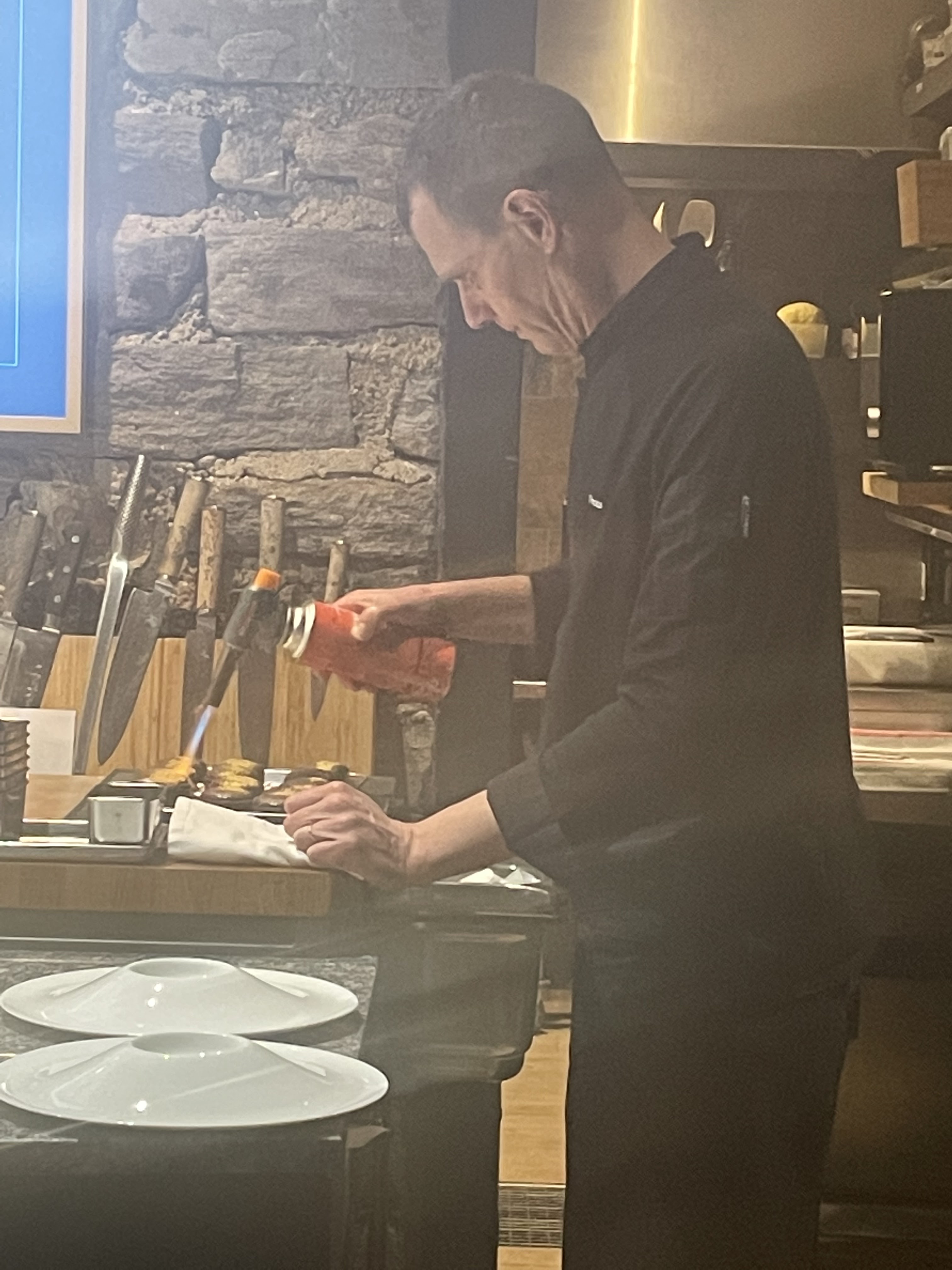 Moment exceptionnel, tout est extrêmement réussi. Concept atypique avec grande tablée. Nous sommes au plus près du chef et de son épouse sommelière qui parle à merveille des vins. Une créativité, une recherche dans les plats qui subliment les produits locaux. Nul doute qu’ils auront 3 étoiles tant la prestation est haut de gamme. Un grand Bravo !