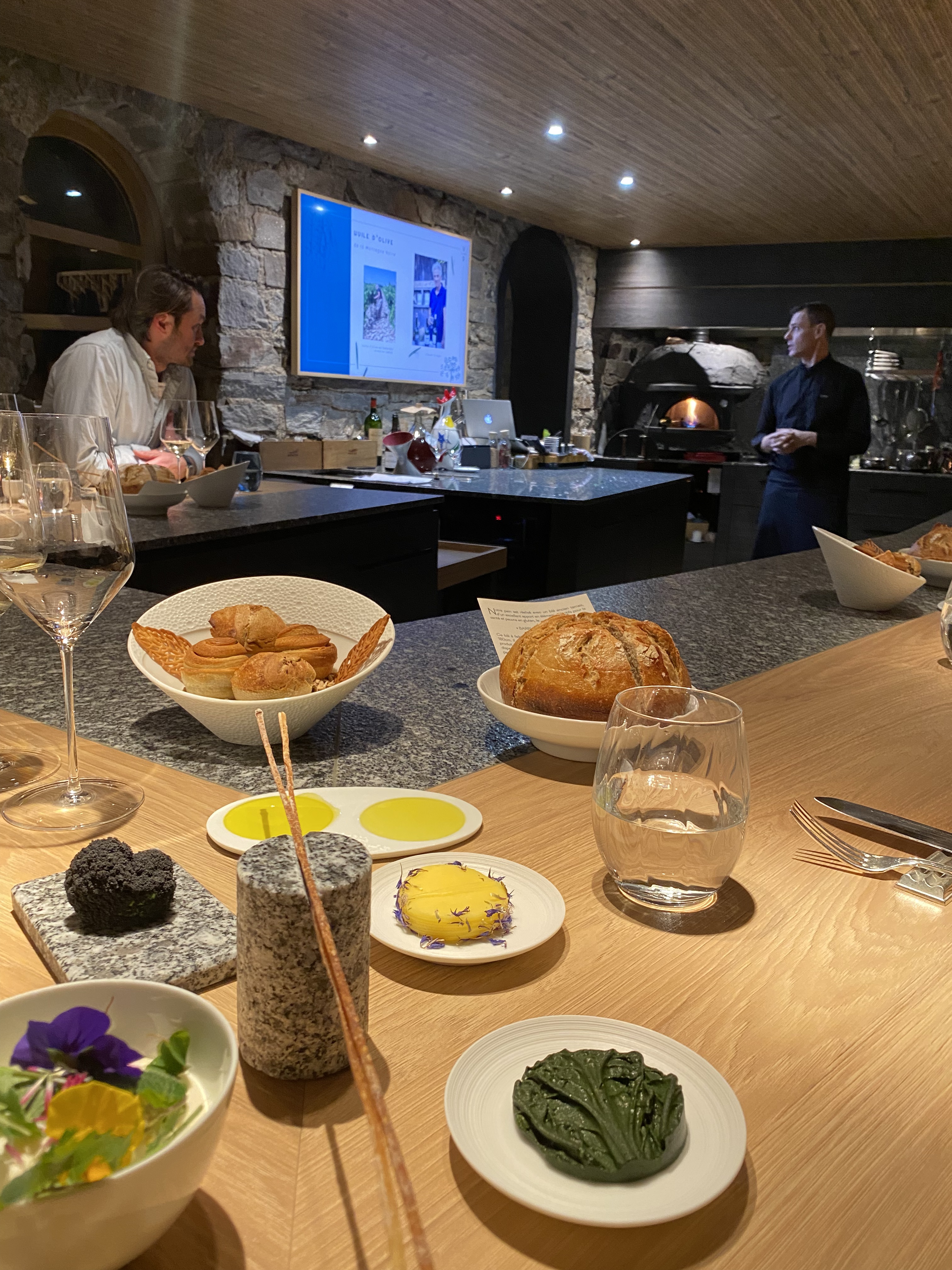 Comment expliquer… Il faut y participer pour comprendre gustativement cette alchimie qui fait que l’on découvre des goûts aussi étonnants qu’exceptionnellement bons. Ils sont simplement deux pour préparer devant nos yeux des centaines de saveurs. Tablée de quatorze convives uniquement (c’est voulu…) ce qui rends le moment très intimiste et unique. Merci à nos enfants pour ce cadeau unique en son genre.