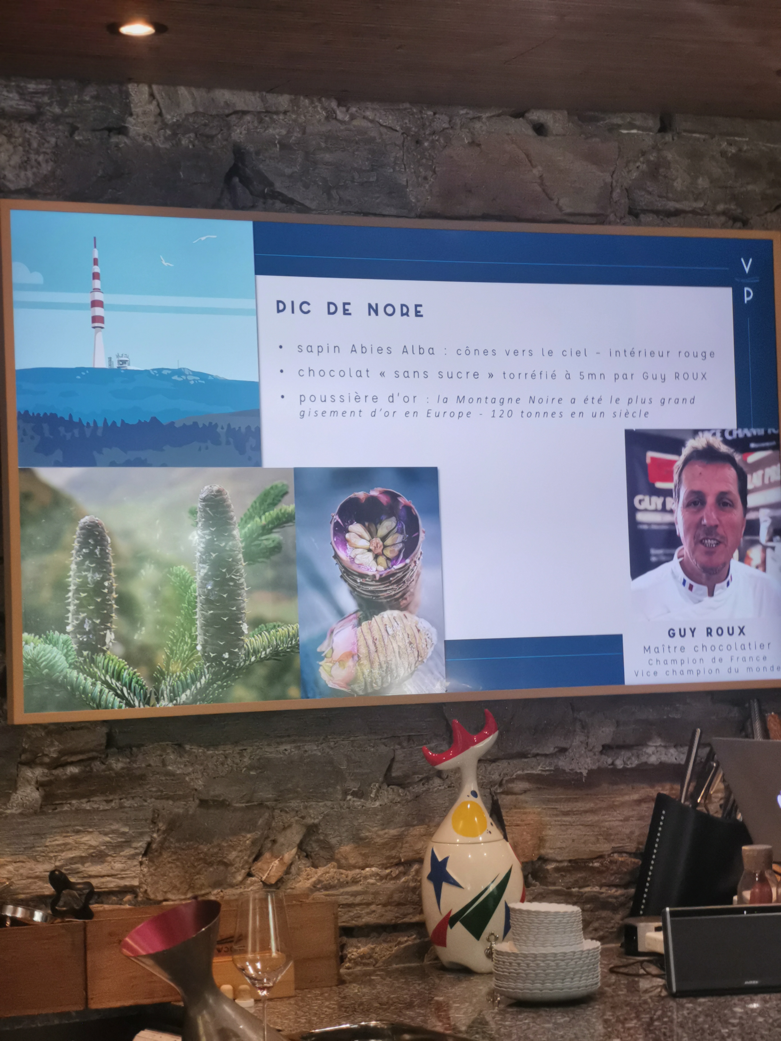 Une Table exceptionnelle qui vous propose des plats sublimants les produits de notre terroir avec une belle touche artistique ! Des vins de prestige à la hauteur de tous les mets. Merci Anne et Thomas pour ce beau voyage à travers la Montagne Noire.
