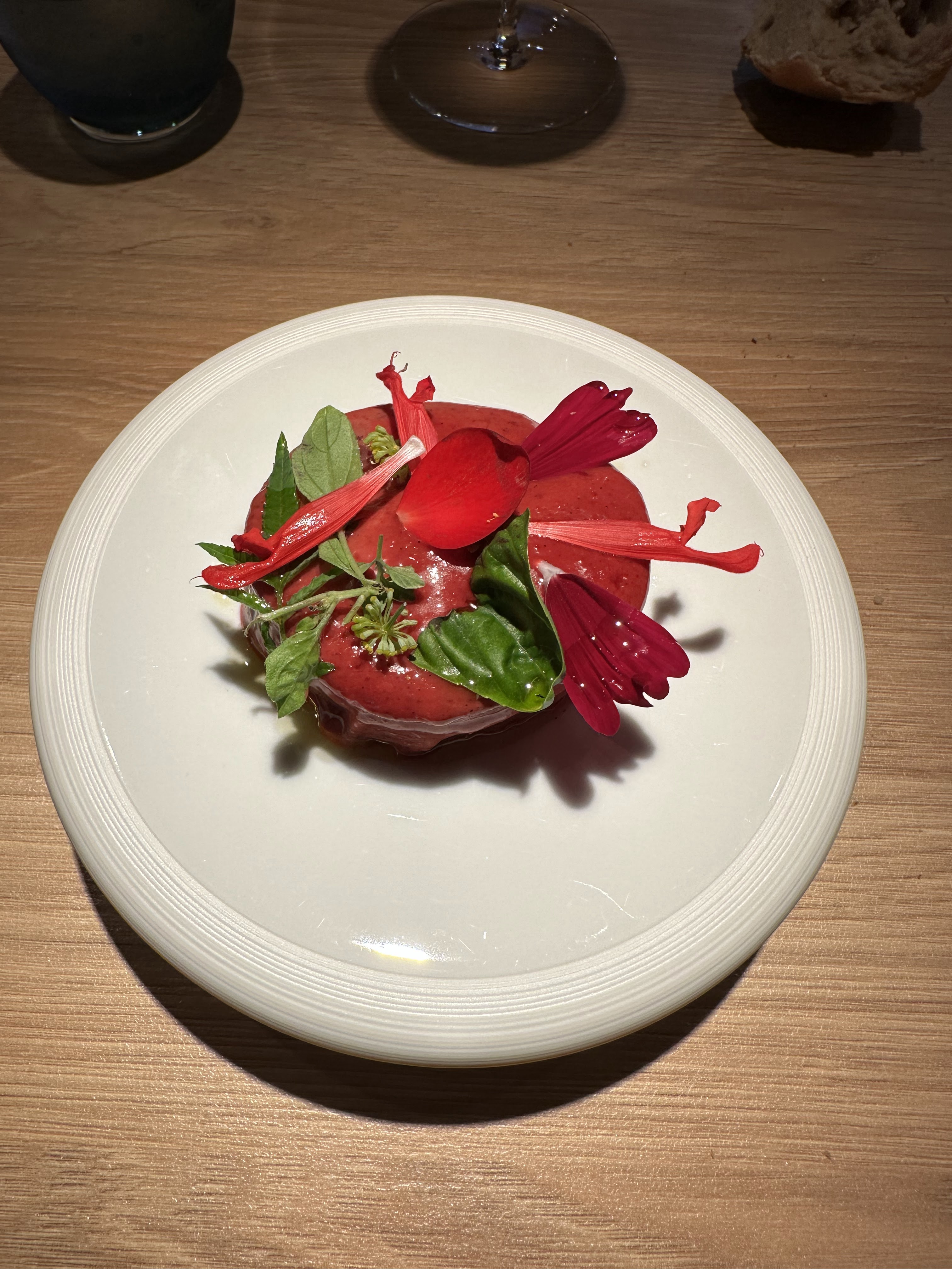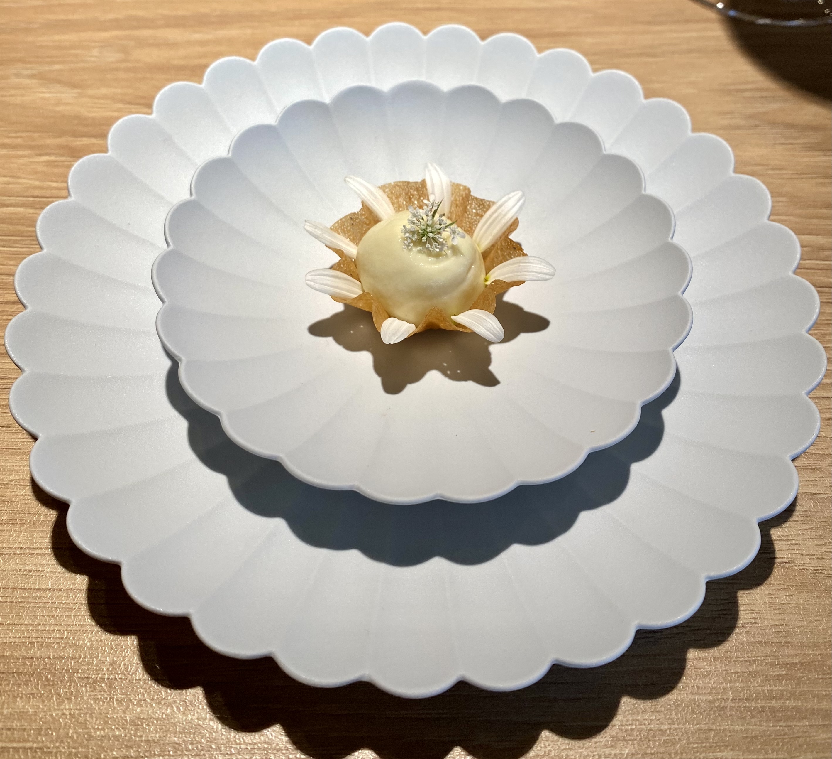 Une très merveilleuse expérience, on voit que tout a été mûrement réfléchis, le cadre est superbe, intimiste, tout est très bien expliqué on a l’impression de participer à la création des différents plats. La beauté des très belles assiettes et les compositions avec les saveurs et couleurs nous ont comblés. Une surprise à partager et à refaire car la carte change selon les saisons et ce que les cueilleurs rapportent. Les vins exceptionnels ont superbement accompagnés, les 3h1/2 de ce moment inoubliable. Merci 🙏