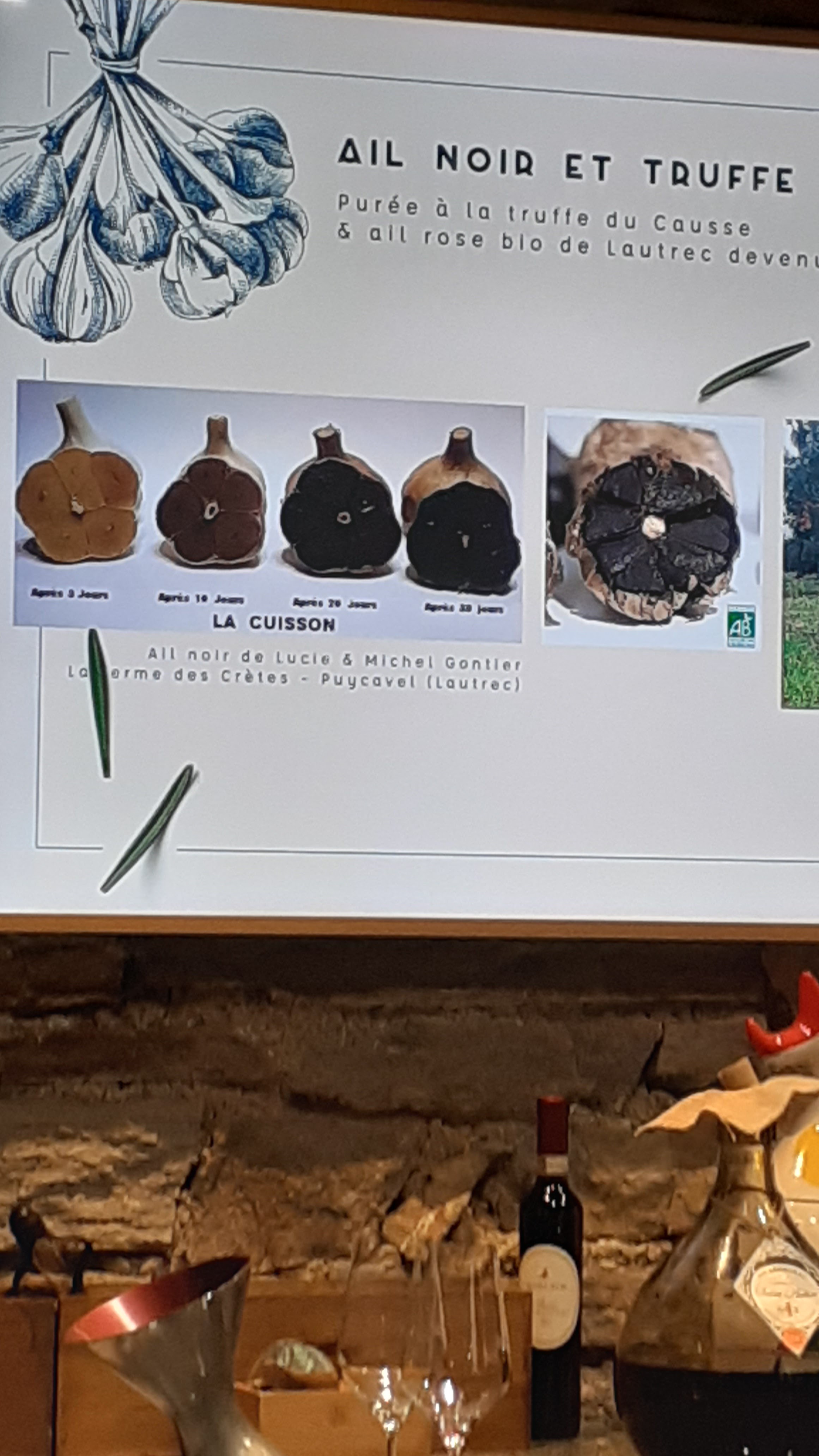Comme promis une véritable expérience oeno-gastronomique avec des produits locaux de la Montagne Noire et du Causse. Créativité, originalité, surprises et plaisirs sont au rendez-vous, en faisant appel à nos cinq sens. En prime, un parfait accord vins et mets. Tout semble l'évidence grâce au travail de Anne et Thomas, pour un résultat exceptionnel. Un grand merci à eux !