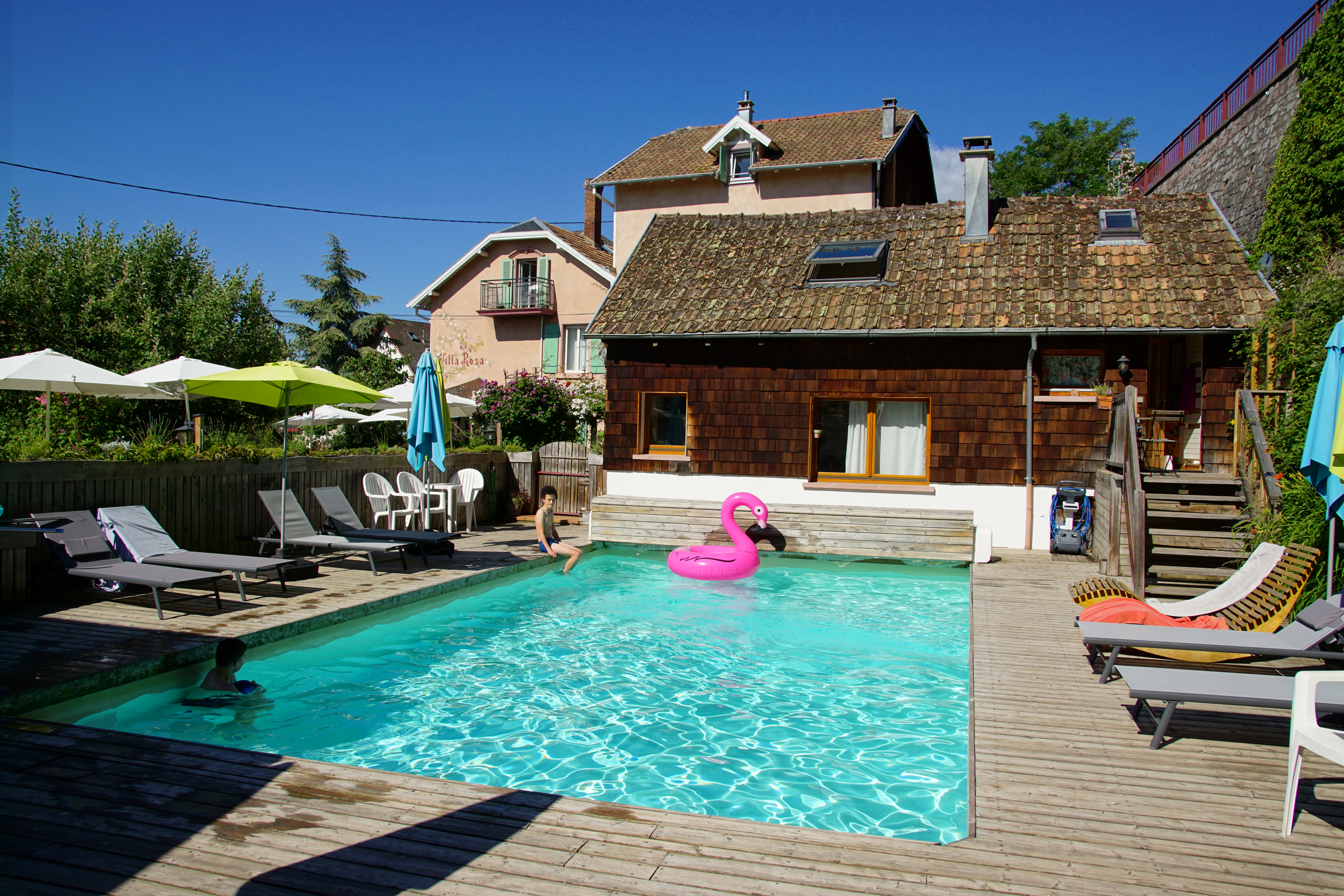 Nous avons séjourné à la Villa Rosa avec notre famille (nous et nos 2 garçons) début juin - c'est maintenant la deuxième fois. Comme la première fois, nous avons passé un merveilleux séjour, l'emplacement est génial, les chambres sont décorées avec beaucoup de goût, le jardin est magique et porte bien son nom. Le point fort pour les garçons était la magnifique piscine. Le petit-déjeuner et la nourriture étaient également excellents, tout comme l'hospitalité des propriétaires.