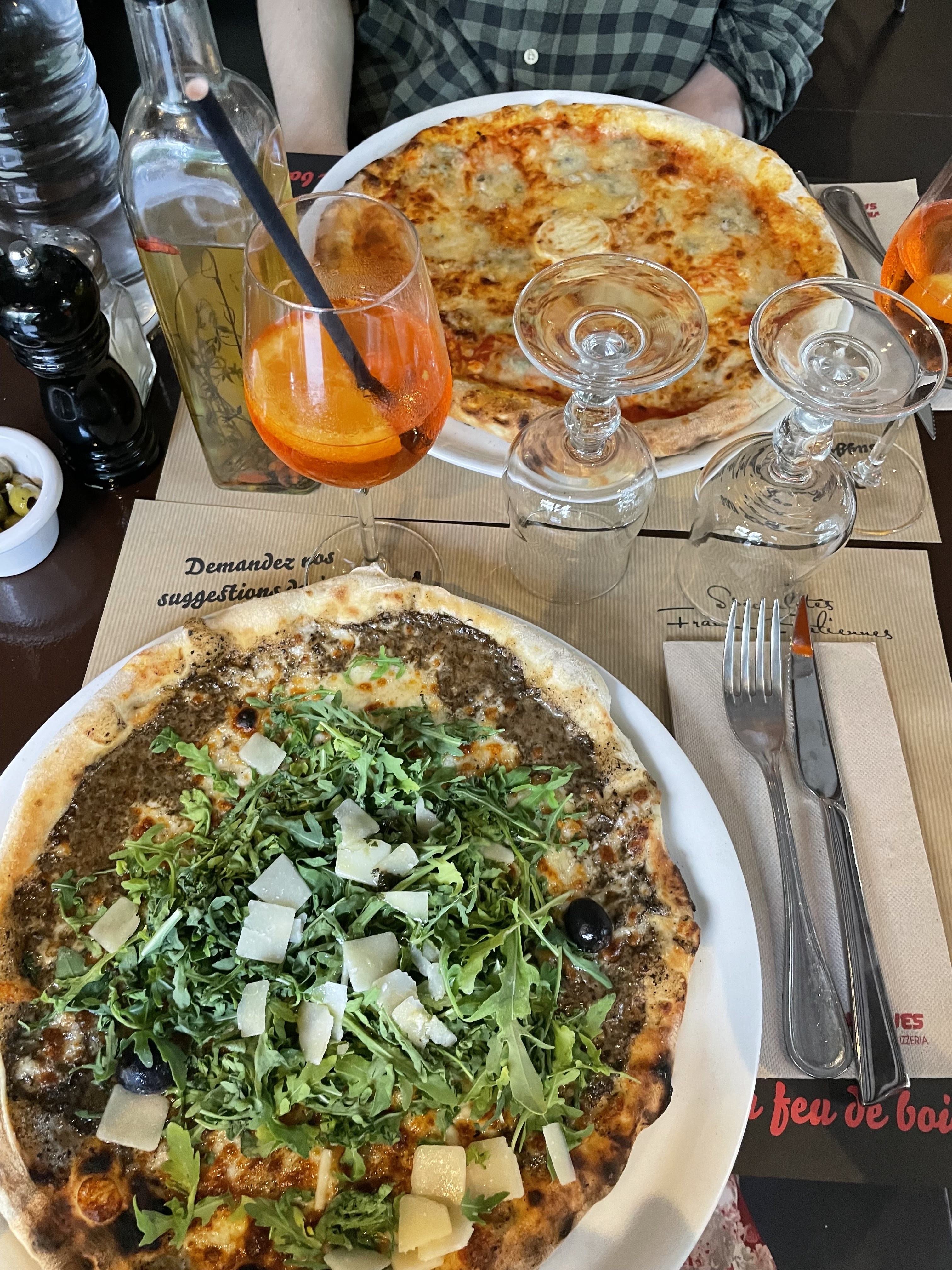 Très bon restaurant italien, nous avons passé une soirée très tranquille en pleine semaine, le lieu était calme sans être désert donc parfait pour un petit moment avec votre partenaire. Le service était impeccable, serveurs très polis et agréables. Nous avions pris des Spritz qui était généreux et très bon pour 6,5€ donc vraiment intéressant ! Les pizzas étaient vraiment grosses, copieuses et vraiment bonnes. J’avais choisi la Tartuffo, un vrai régal, un bon goût de truffe tout du long et de la roquette bien fraîche. La pâte n’était ni trop fine ni trop épaisse, une bonne texture facile à découper de surcroît. Mon partenaire avait pris la Cinq Fromage et elle était tout aussi bonne, le mélange non pas des quatre mais cinq fromages étaient parfaits ! Pizza toutefois un peu plus lourde mais sans surprise, évidemment. En somme, une belle soirée reposante autour du pizza à un prix très abordable, j’y retournerai assurément.