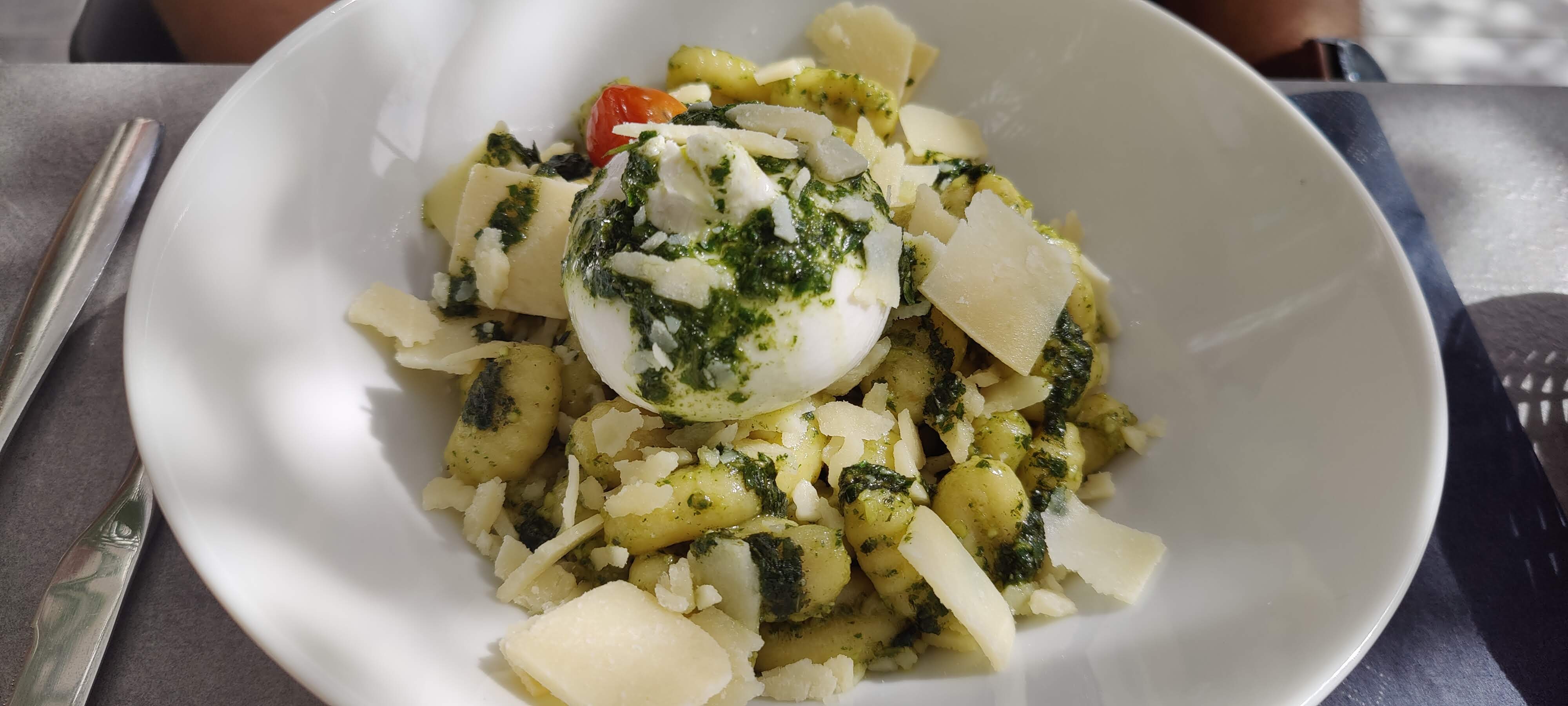 Nous avons partagé un excellent repas, menu à 22€. Entrée simple et très bonne, tomates mozza di buffala, puis raviolis aux fromage à la crème de gorgonzola et burrata crémeuse, absolument excellents ! Il y a longtemps que je n'avais pas mangé une telle qualité de raviolis, avec une telle saveur. Desserts très variés. Mon mari avait pris une pizza, il s'est régalé. Une vrai pizza bien cuite et bien garnie. Tout était très copieux