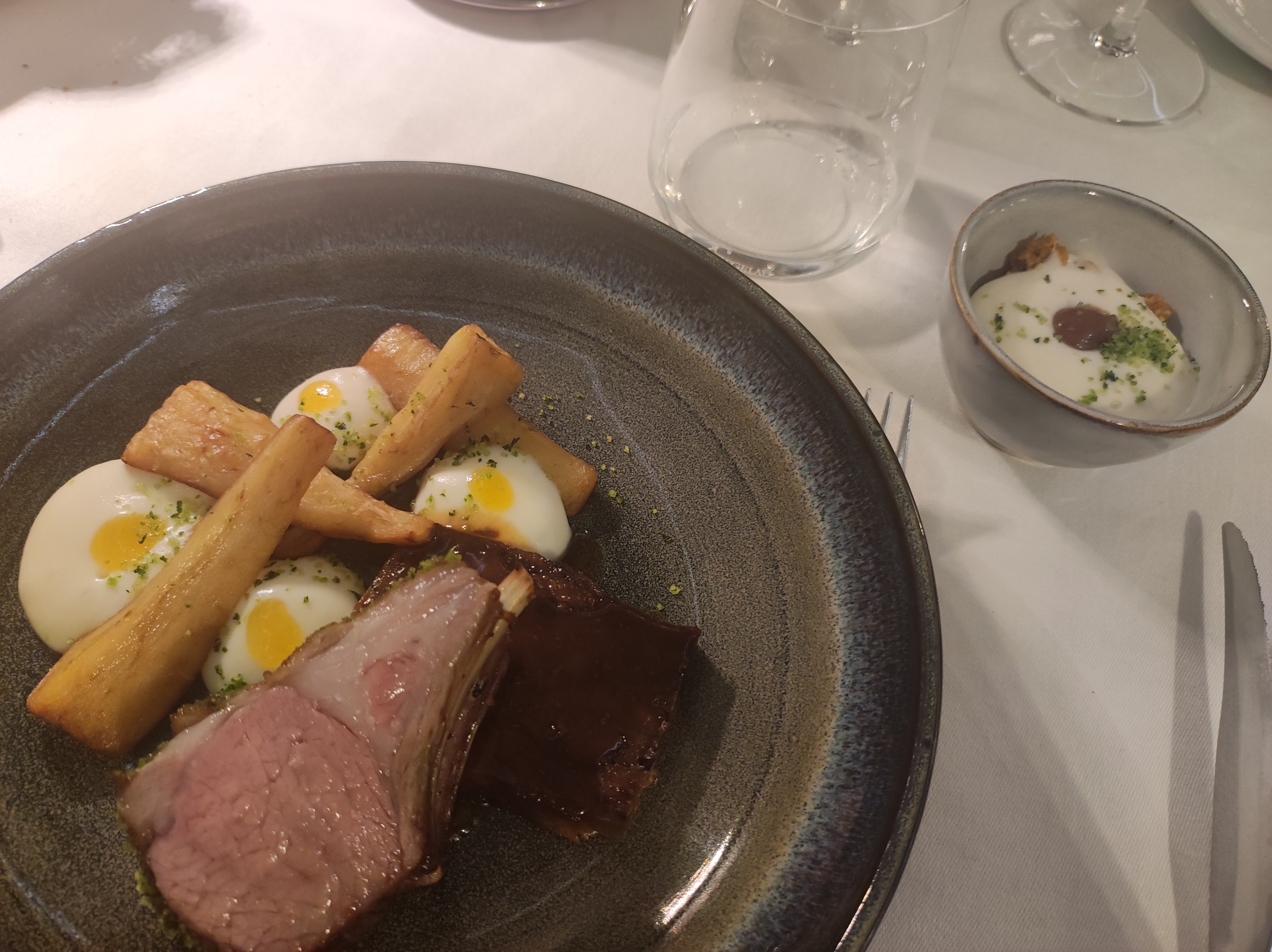 Menu en 6 service parfait sur toute la ligne avec juste une réserve pour la galette servie avec l'agneau... cette galette farcie était in peu sèche