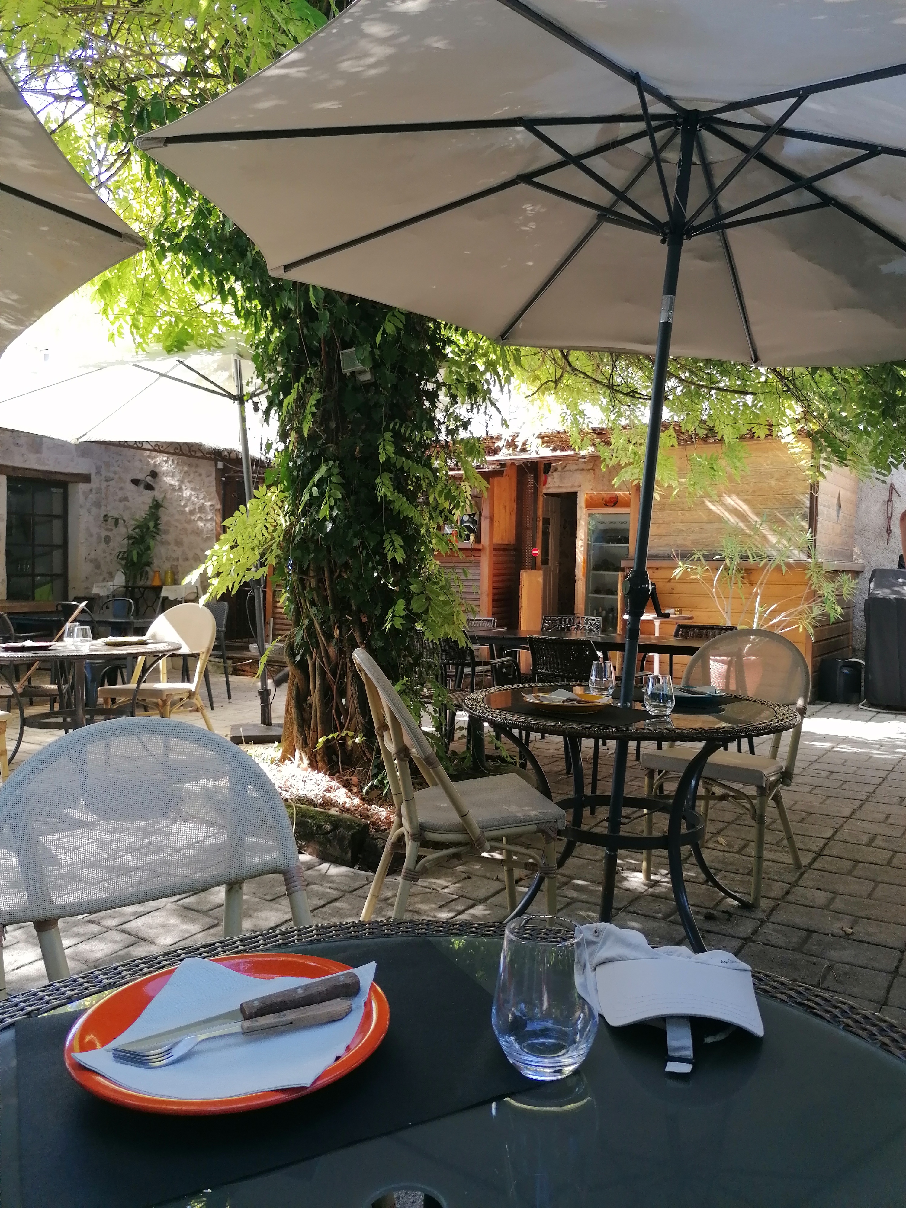 Ombragé.. Gentillesse du personnel et très réceptif....Super mise en bouche..Plats Très Très copieux et surtout Excellent...A conseillé et nous y reviendrons...et cerise sur le gâteau..on vous propose de vous faire votre doddibagpour finir votre repas à la maison...VRAIMENT Très Bon Restaurant et Super sympa....Allez y vous ne serait pas déçu...🥰😍🤩