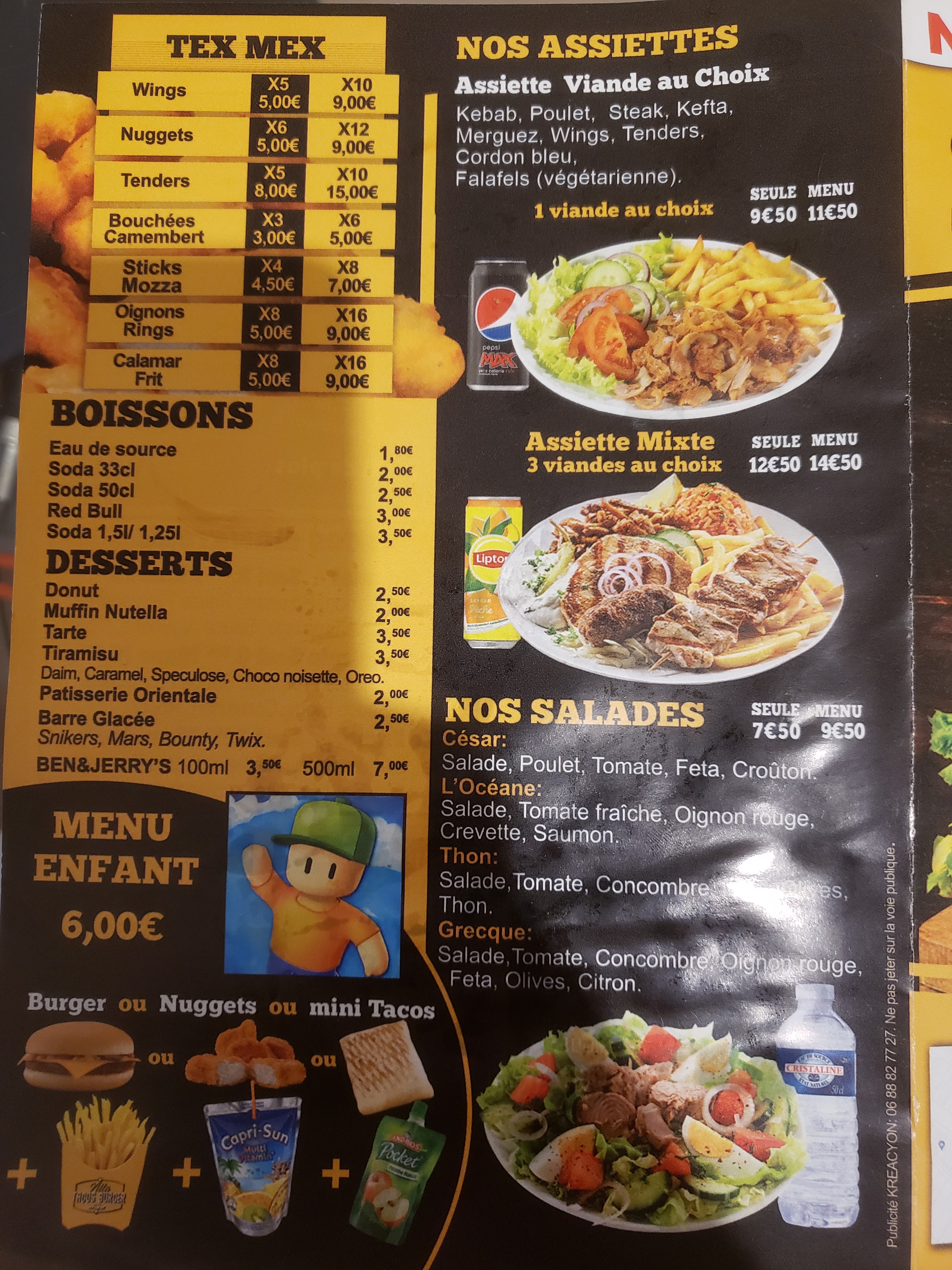 EXCELLENT DANS TOUT CEST POINTS . ACCUEIL au top super agréable accueillant. Adorable également avec les enfants. Kebab EXCELLENT ayant essayer 4 kebab dans le coin c'est le meilleur !!!! Pas fade, juste ce qu'il faut en sauce et en quantités de viande . On recommande vraiment à 💯 % Ce trouve à cotez du coiffeur d intermarche. Tarif comme les autre kebab mais EXCELLENT à manger !!!!