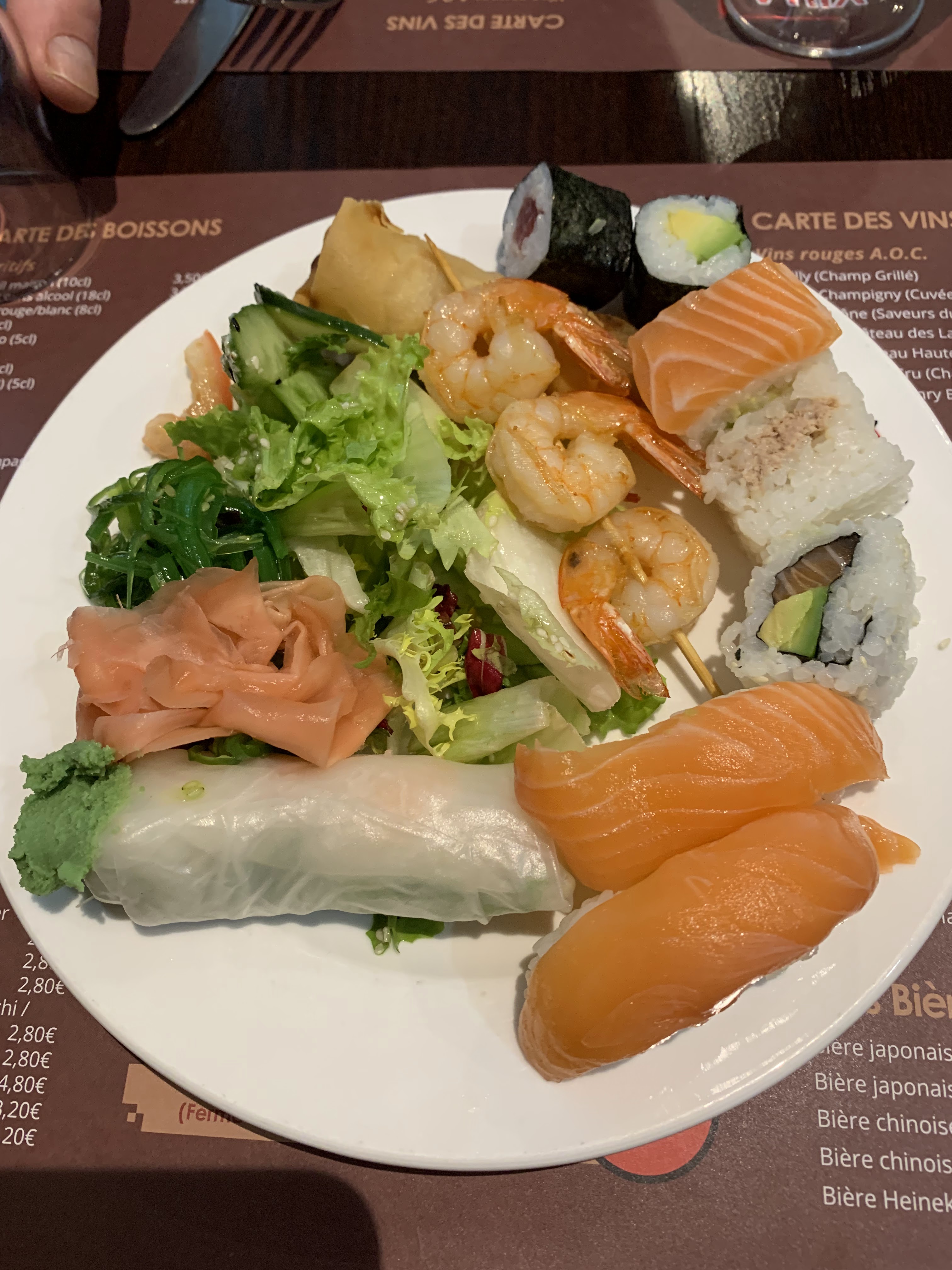 Accueil agréable.Nous avons appelé a 19h30 pour un groupe de 20 personnes un samedi soir et ils nous ont dit oui tout de suite! Les plats sont bons. Mélange entre le chinois et le japonais. Les sushis, sashimis et les makis sont frais. Ce qui est tres agreable! Il y a de la variété dans les desserts. Le rapport qualité prix est tres correct! Je recommande!
