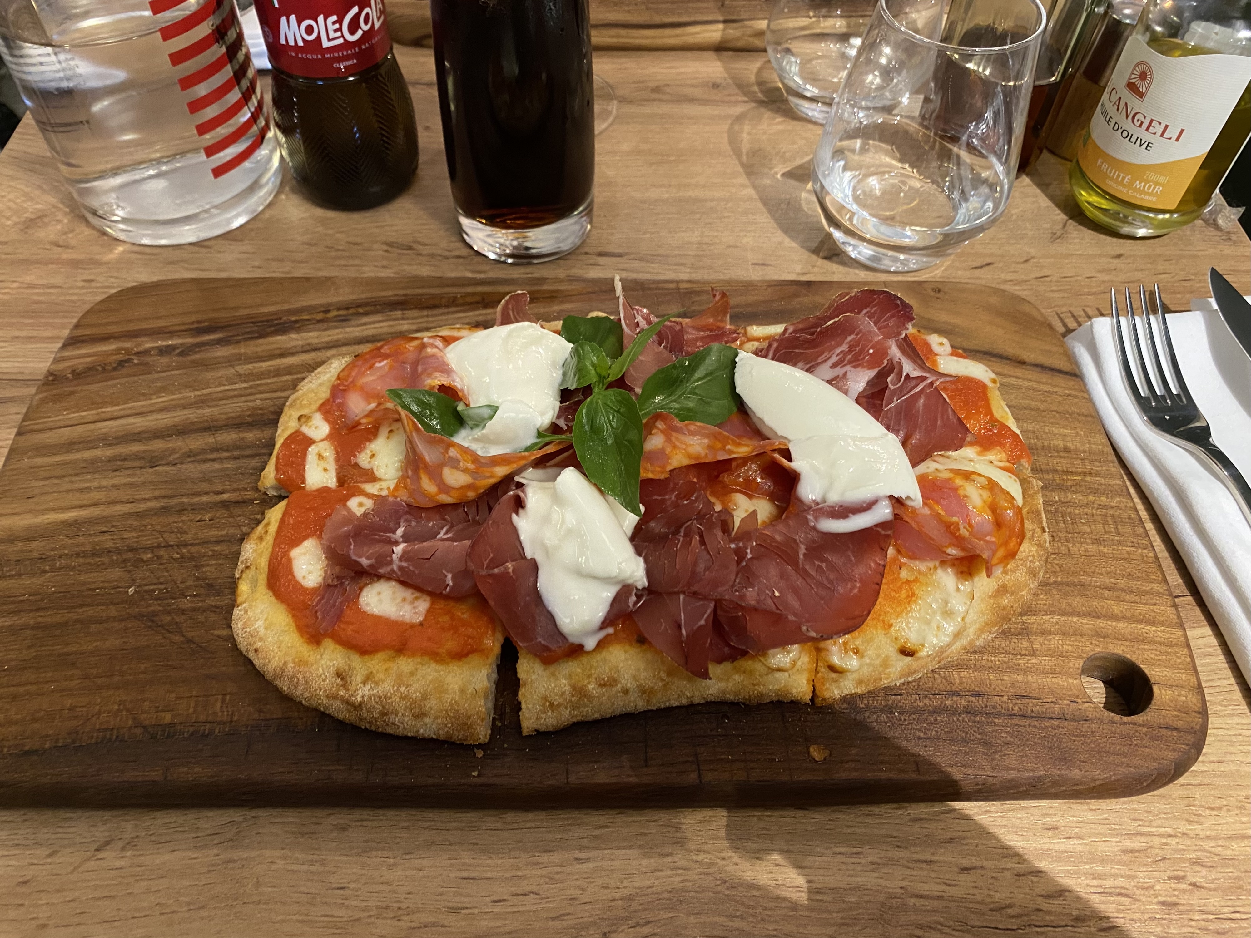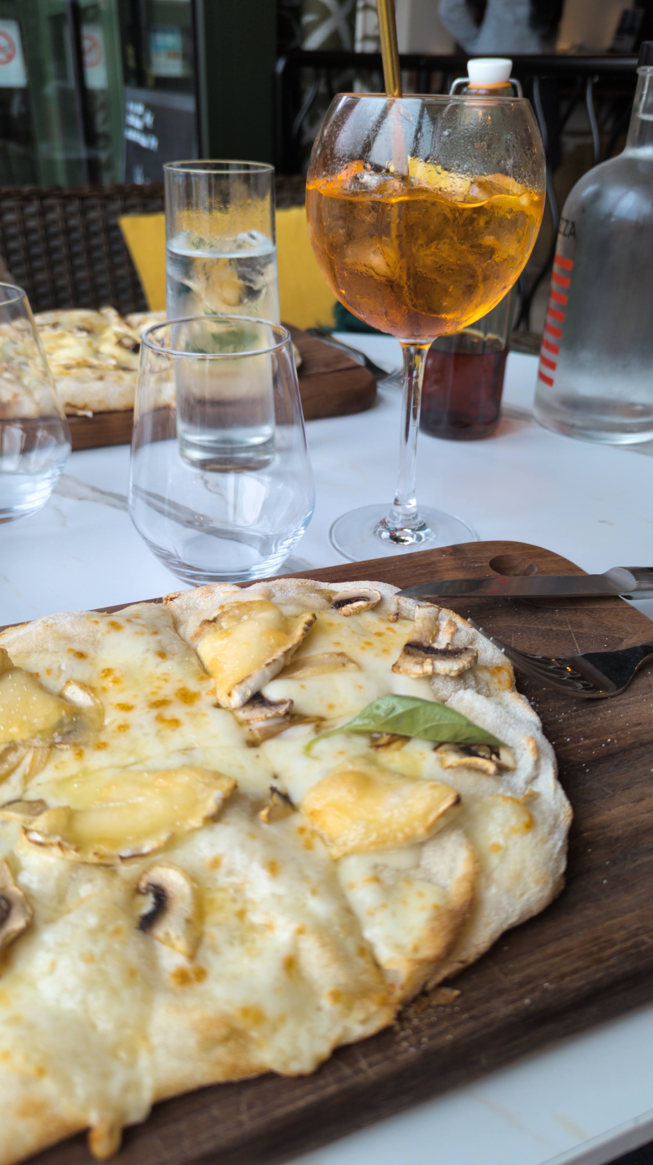 je me suis cassée le ventre !!!! autant la bruschetta est très bonne, autant je m’attendais à un peu plus. PAR CONTRE, on pourrait croire que les pizza sont petites mais elles sont super fat. Je me suis régalée c’était vraiment très très bon. Le personnel est super gentil et vif. Je recommande ce restaurant ! :)