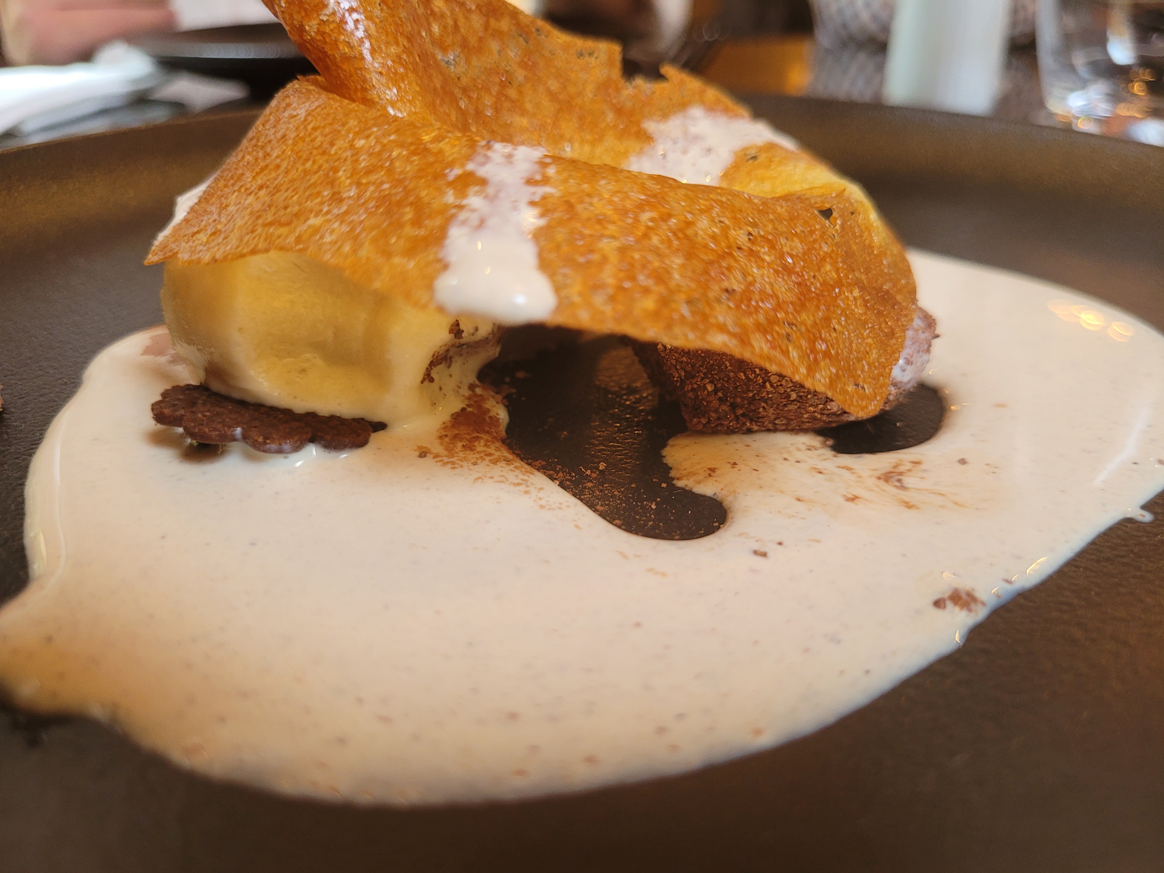 Très belle expérience, personnel très compétent. Proposition d'un amuse bouche pour patienter ainsi qu'un digestif avant le dessert. J'ai choisi un poisson Saint Pierre avec épinards. Légume détesté le plus ! Villa9trois m'a fait aimé cet accompagnement ! Si vous aimez la qualité et la fraîcheur, allez y. Repas en grande finesse. Je recommande et retournerai avec plaisir ( ne convient pas aux petites économies).