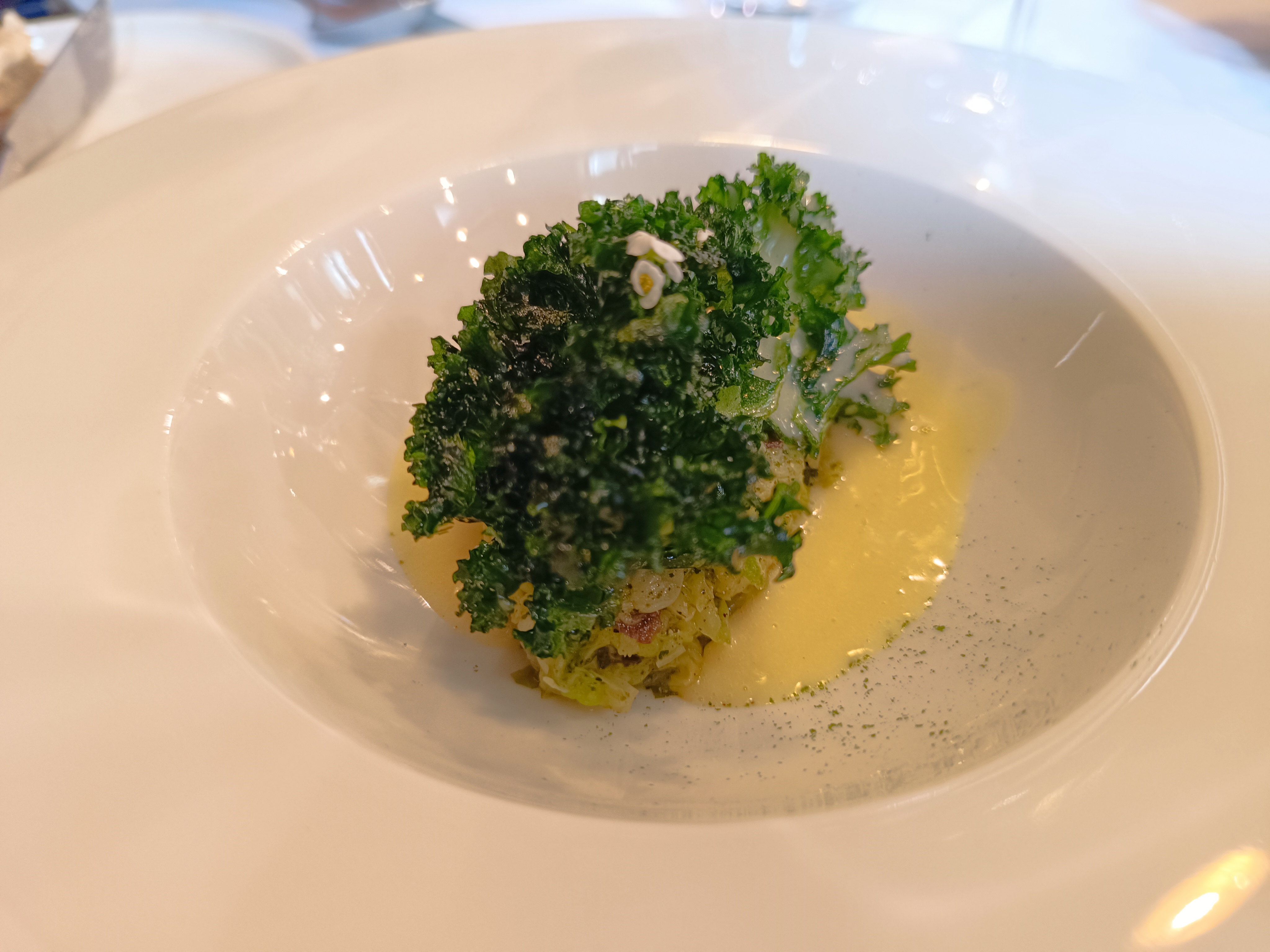 Bonne expérience pour ce nouvel étoilé. Nous avons choisi le menu saveurs pour notre déjeuner. Nous avons apprécié le repas dans son ensemble mais nous nous attendions à être un peu plus surpris par les plats servis au niveau des saveurs. Si la qualité était présente un peu plus de générosité notamment au niveau du plat principal aurait été appréciée. Le dessert en revanche était surprenant et a relevé la note d’ensemble.