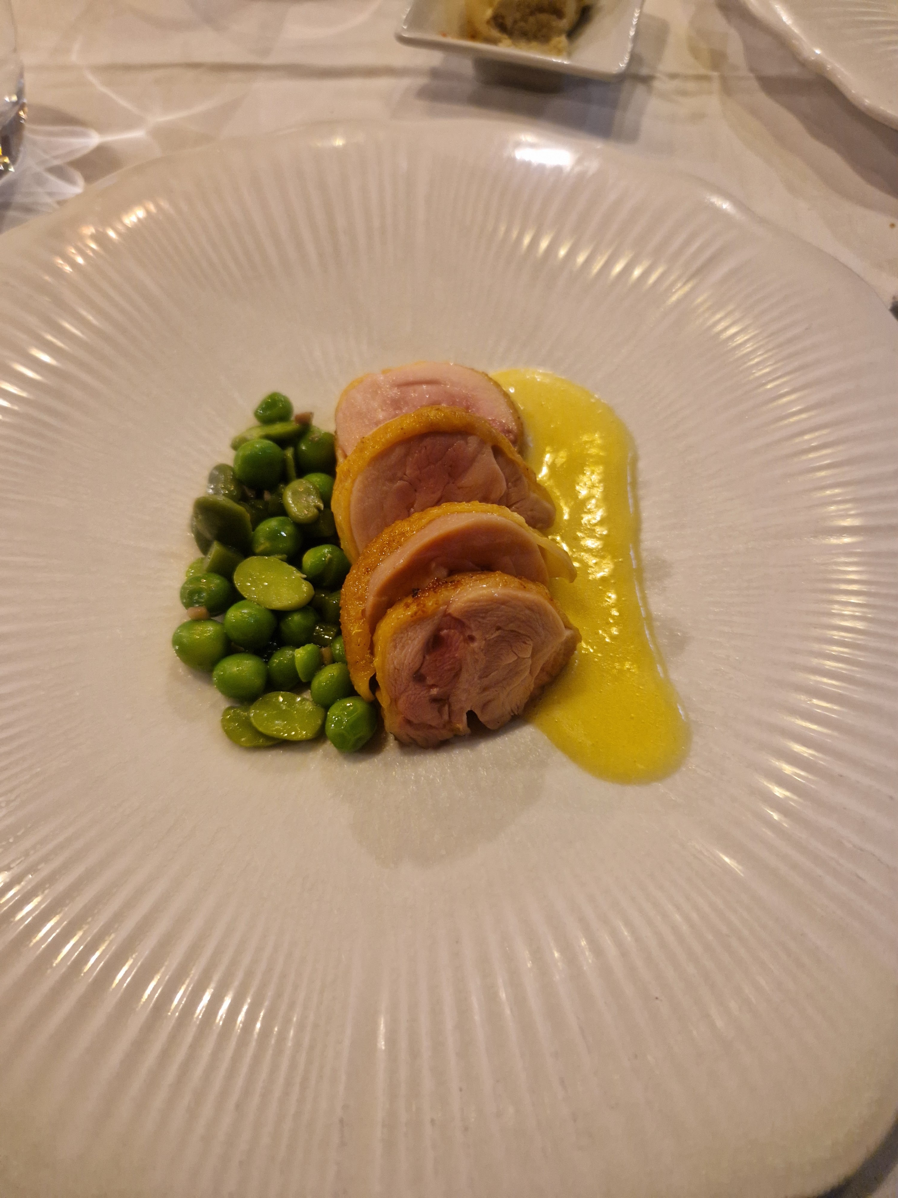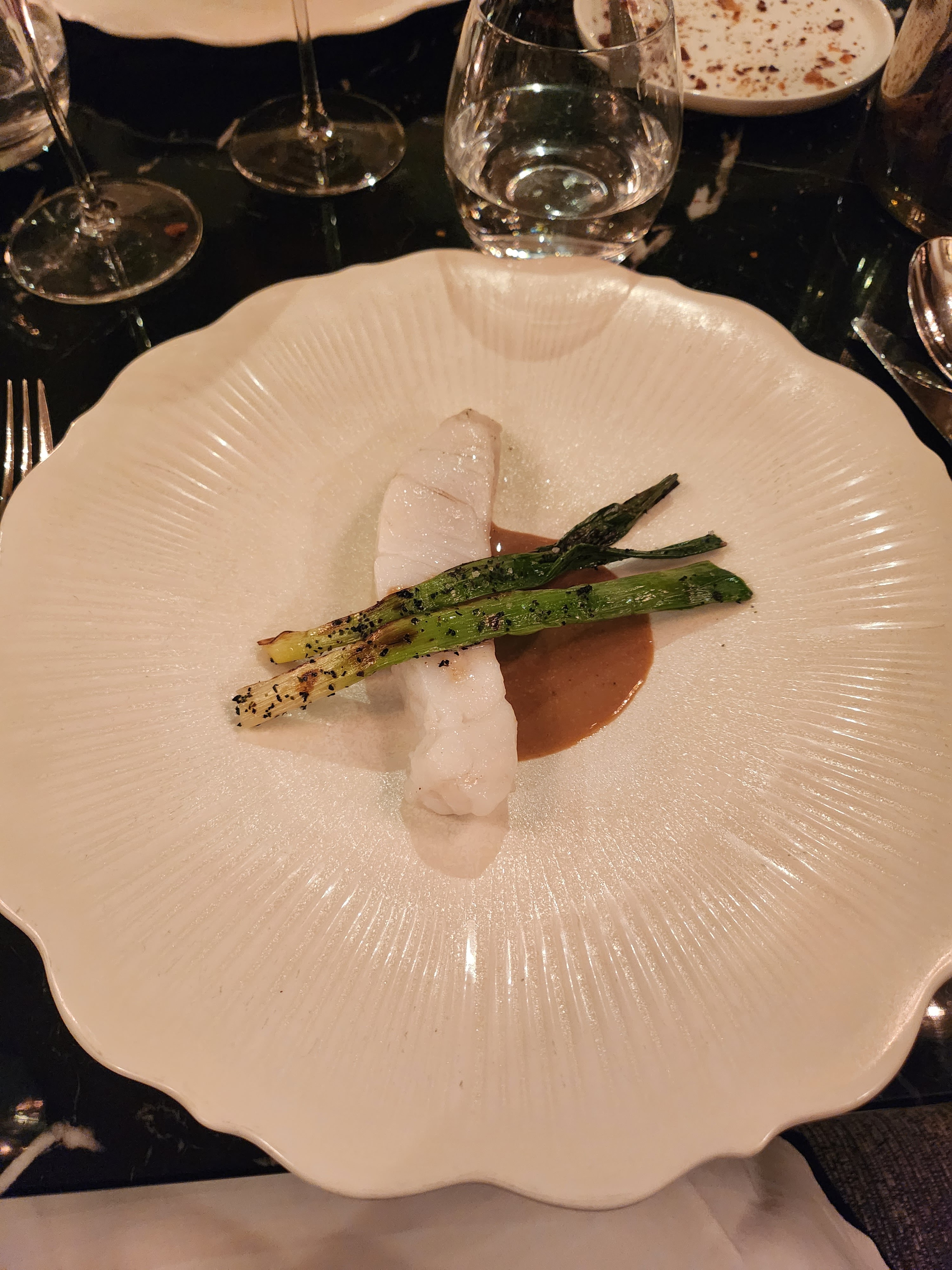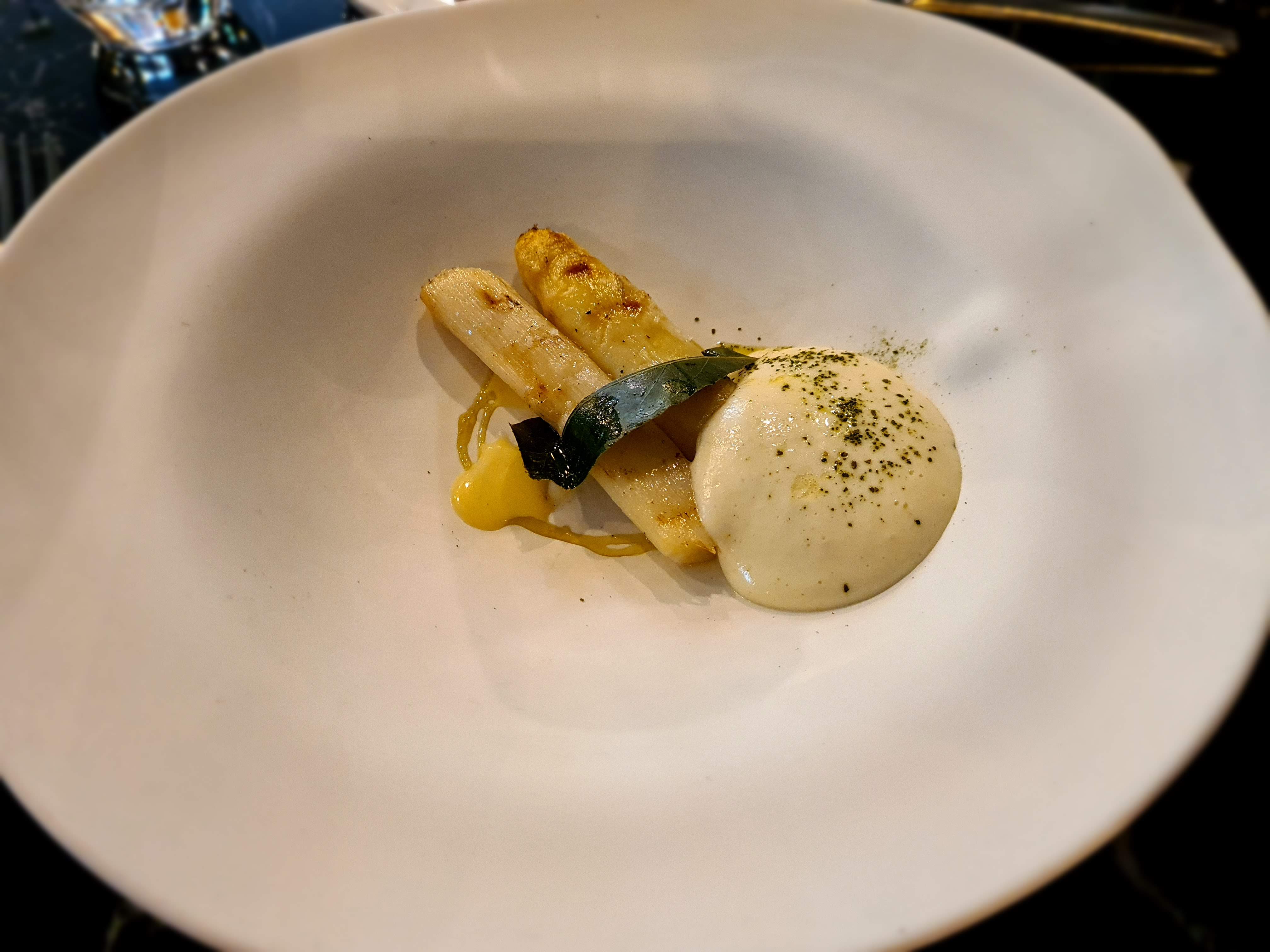 Tout était parfait, serveurs, serveuses souriants et agréables. Les plats (turbot,homard très bons, assaisonnements au top). Asperges excellentes. Et dessert agrume au top. Tout était bien.