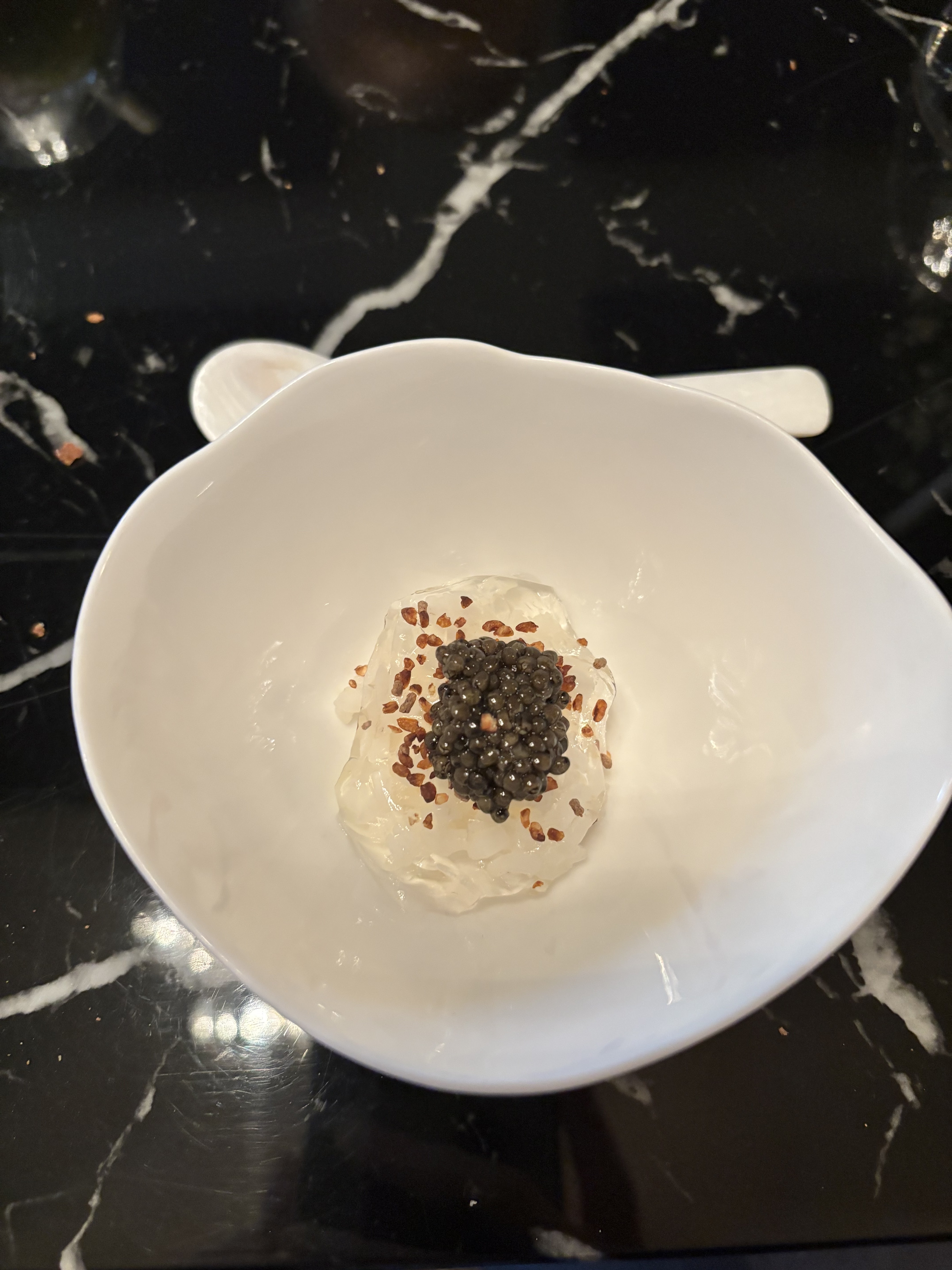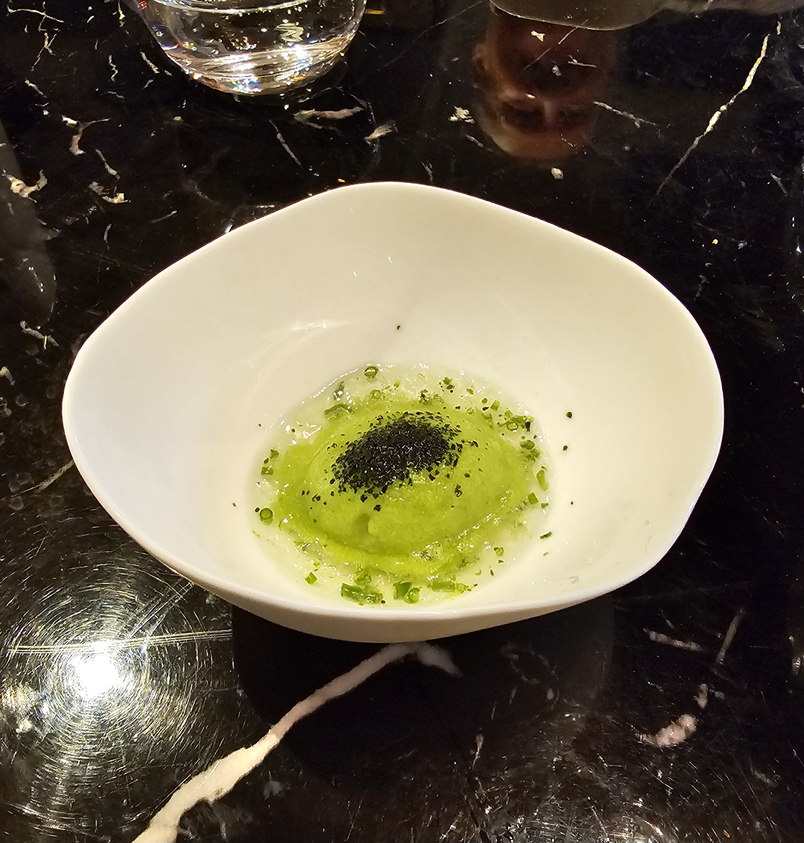 Service parfait . Rien à dire . Jeune et très compétent Présent sans trop l être , et aux petits soins Cuisine excellente . Le lien avec la gastronomie japonaise est très interessant L oursin glacé est de haute volée , il restera longtemps dans ma mémoire Le caviar également