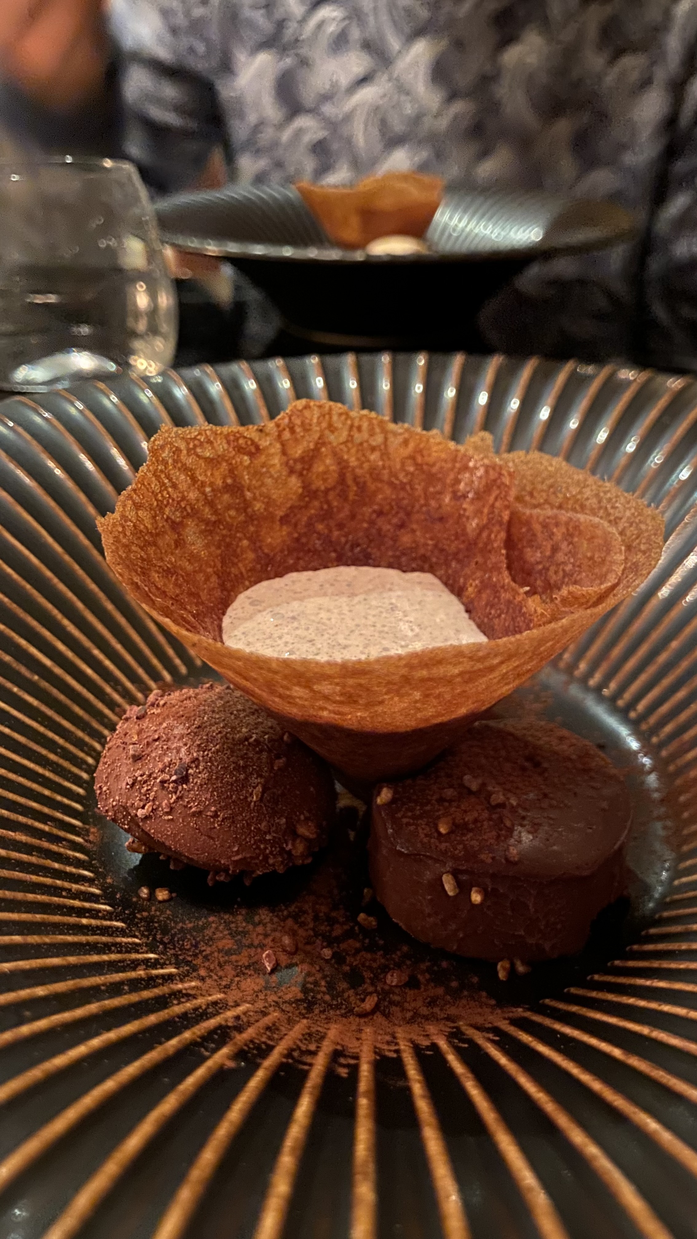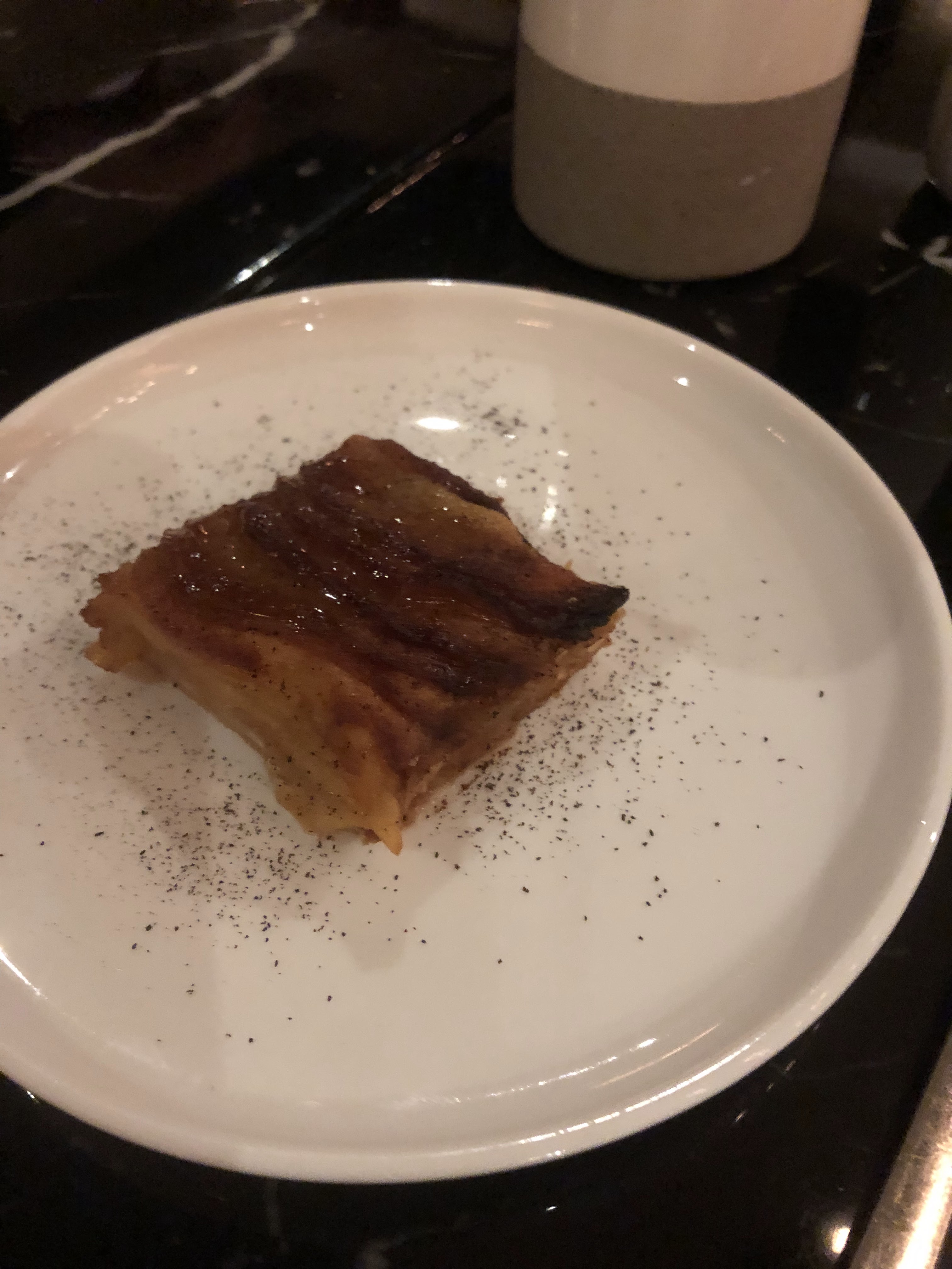Nous avons adoré le moment: chaque plat est délicieux et l’ensemble du service est impeccable. On ressent une bonne entente et un objectif commun orienté client par tous les membres de l’équipe, ce qui rend l’ambiance encore plus plaisante. Un seul bémol sur la température dans la salle du restaurant. Il y faisait très chaud alors que la température extérieure était plutôt fraîche. On aurait apprécié qu’on ouvre les fenêtres ou qu’il y ait un peu de climatisation.