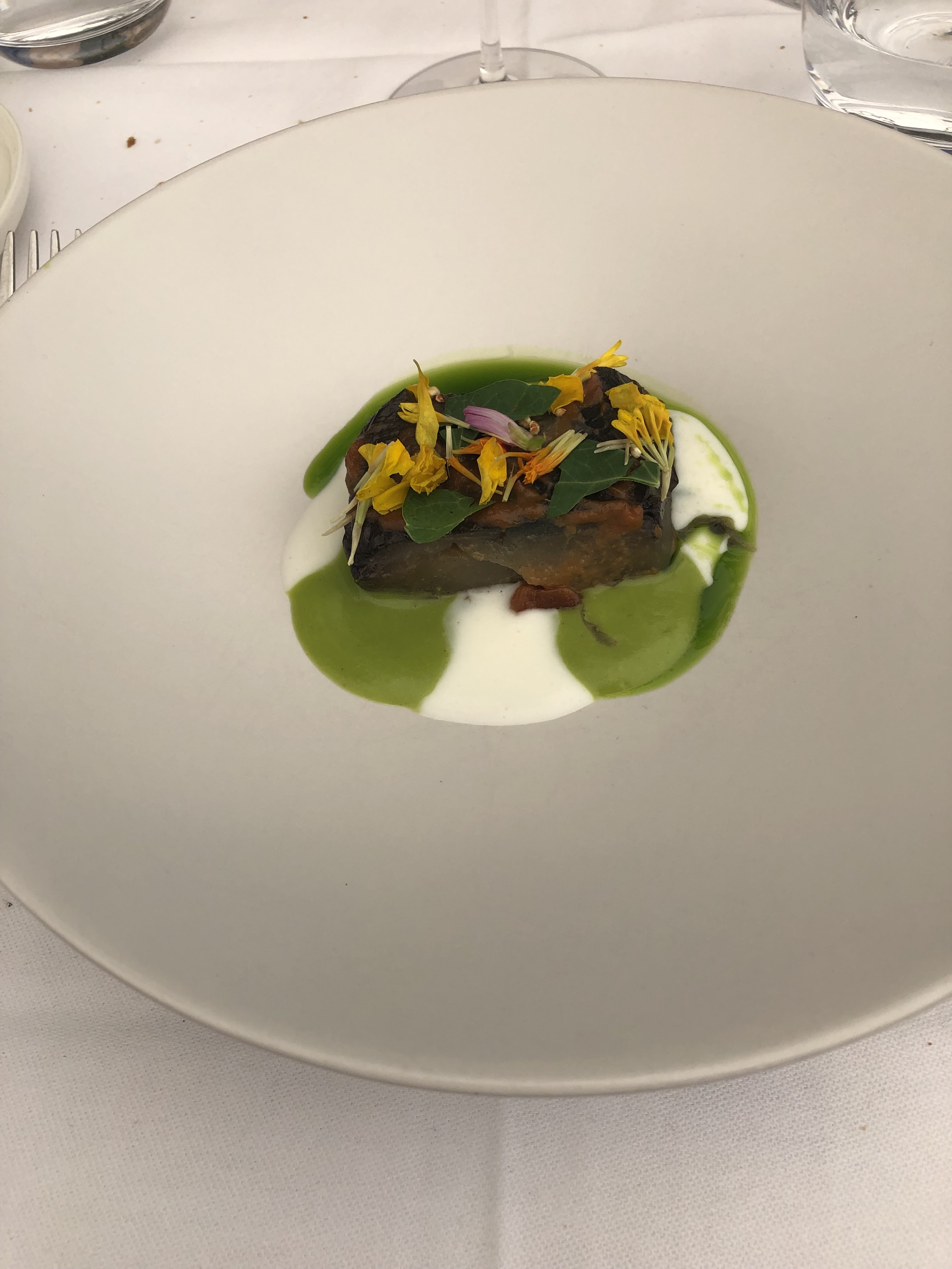 Un moment hors du temps. Terrasse superbe, service décontracté mais impeccable. Un chef audacieux, un menu dégustation plein de saveurs Portions petites. De bonnes trouvailles en vins. Nous reviendrons c’est sur!