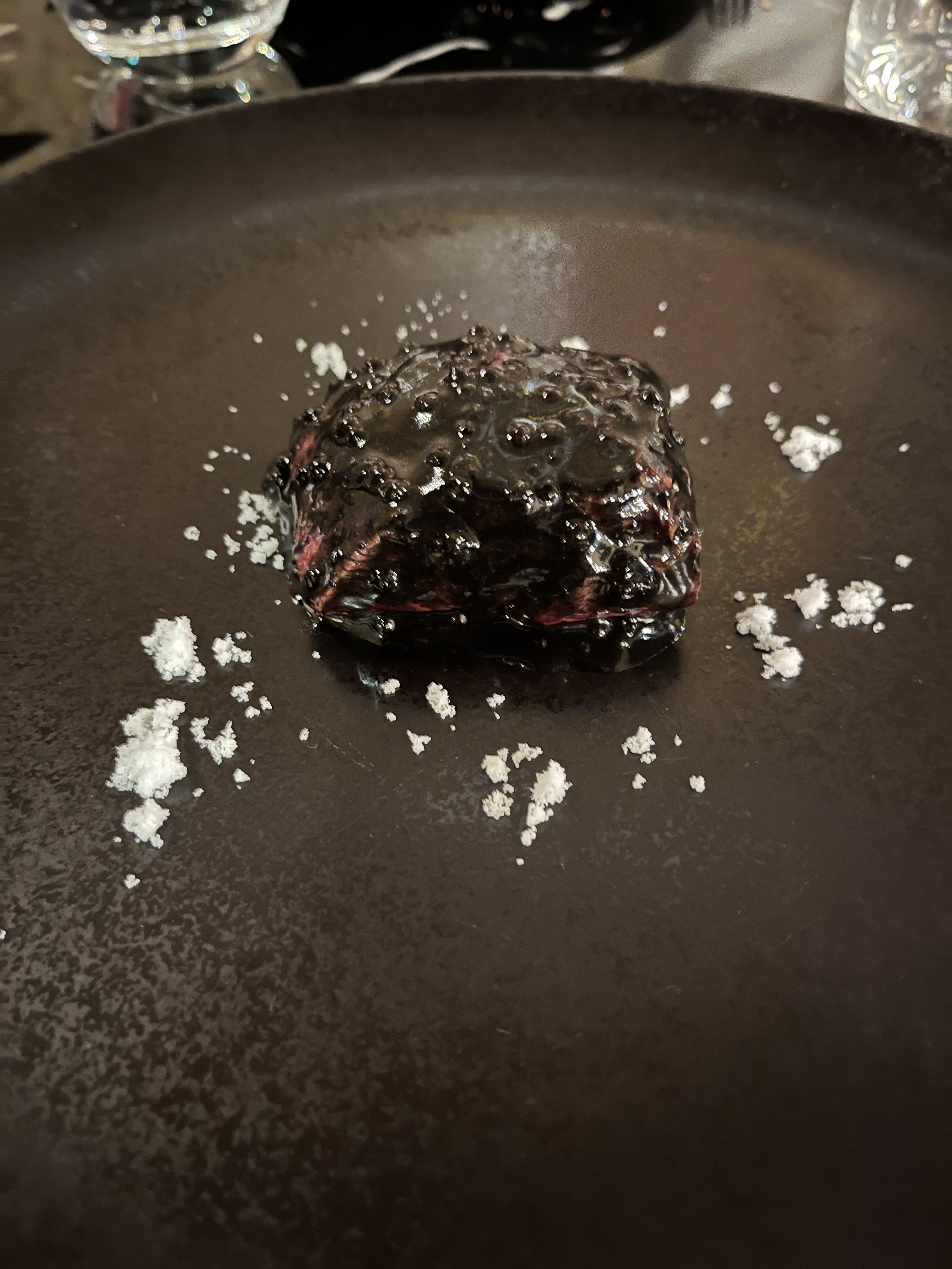 Une salle chaleureuse Un service souriant, à la fois présent et discret, dynamique L'iode et le fumé nous accompagnent tout le long du repas, expérience top. Un plat de lieu et poireau crayon si réconfortant et si délicieux qu'on serait prêt à y replonger prochainement. Quelques autres plats nous ont aussi tout de suite conquis : paleron, dessert à la frangipane. Petite déception sur l'entrée caviar et sur le dessert au chocolat Sao Tomé. PS: nous avons trouvé le pain excellent, pour répondre à certains avis négatifs
