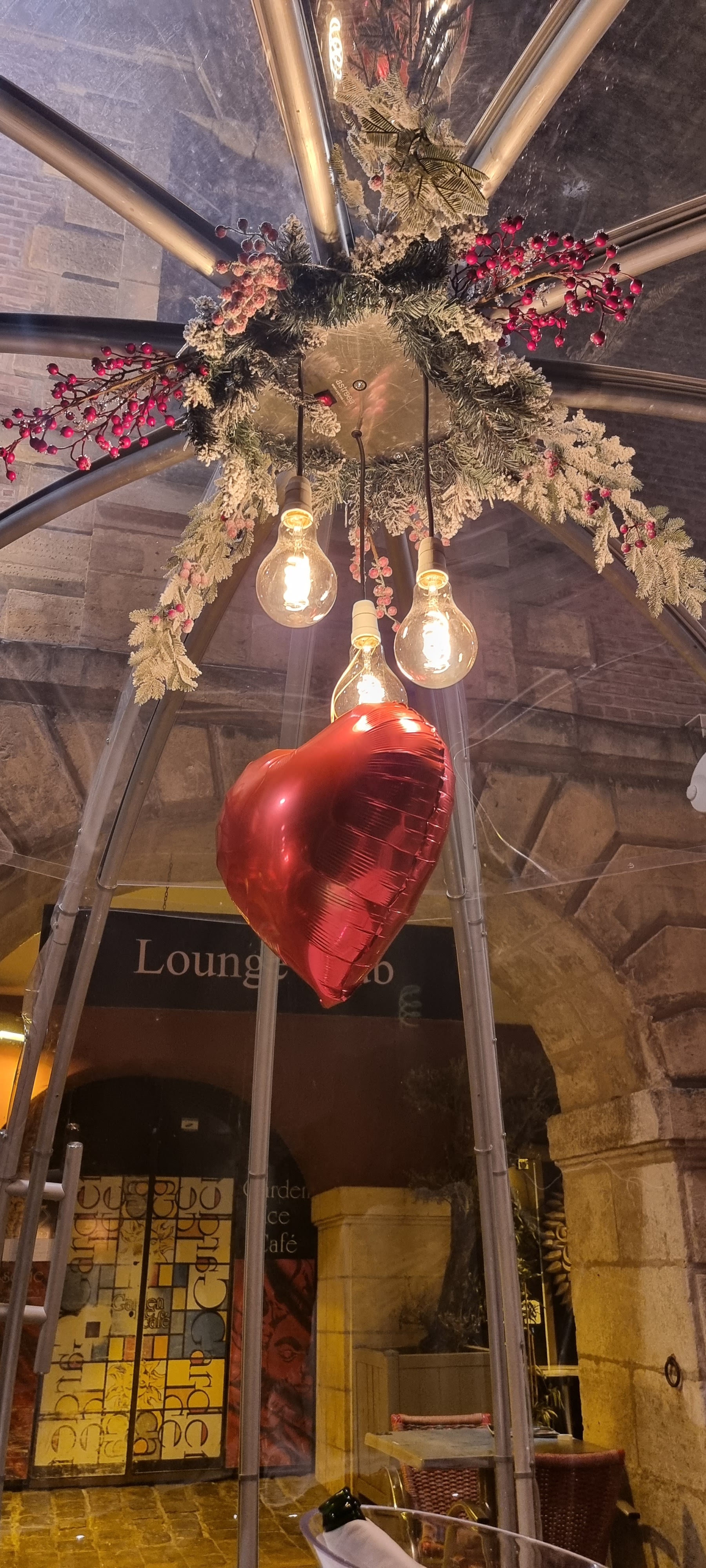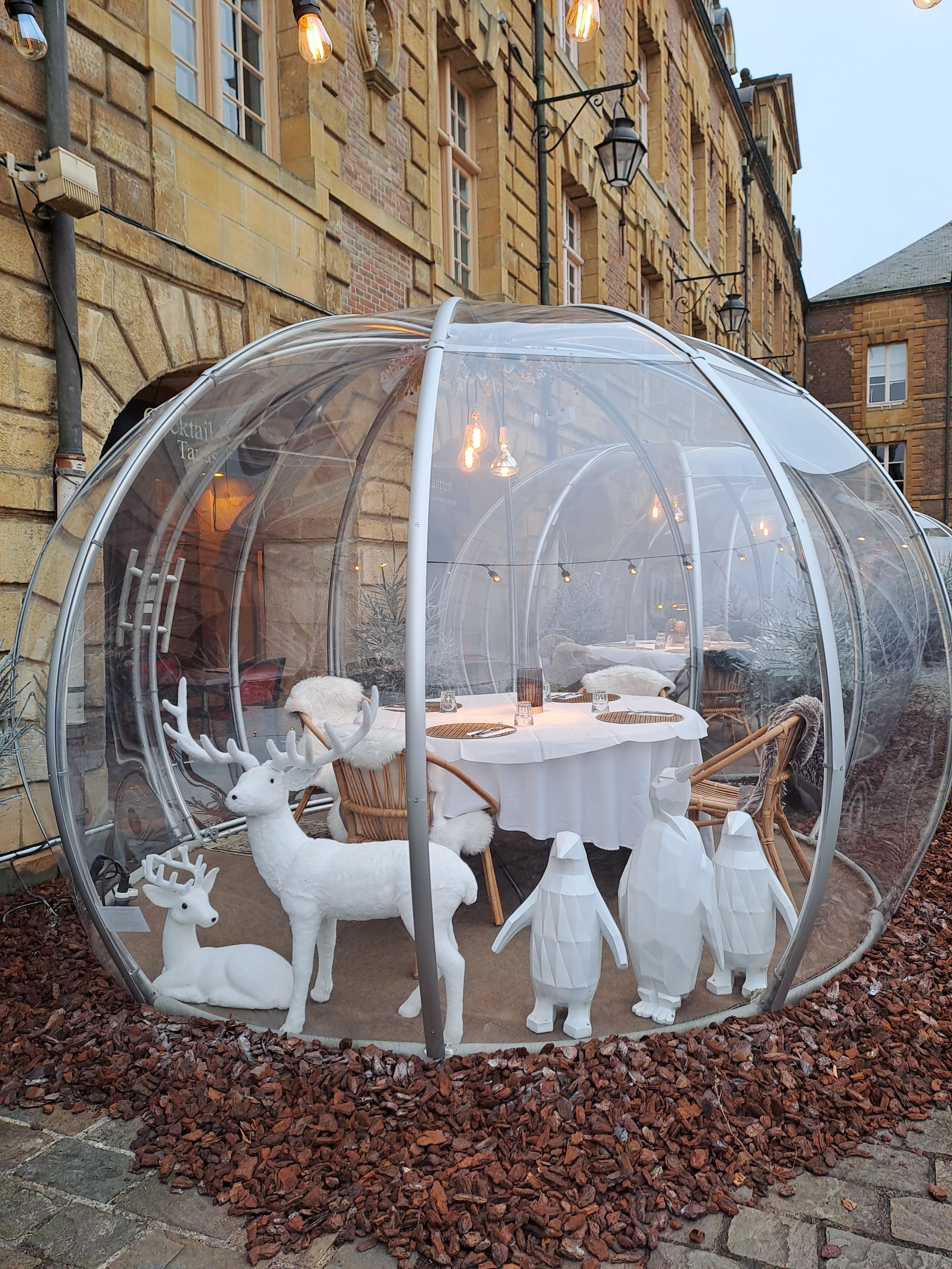 Dans une bulle avec 4 couples .. avec le phénomène sonore d'un dôme nous entendions les discussions de chacun .. aucune intimité.. grosse déception. Payer ce prix pour cette expérience c'est juste pas possible. Heureusement que la serveuse est très pro. Une fois ceci partagé avec le manager, il m'a simplement dit : c'était écrit en petit ... Plus jamais !
