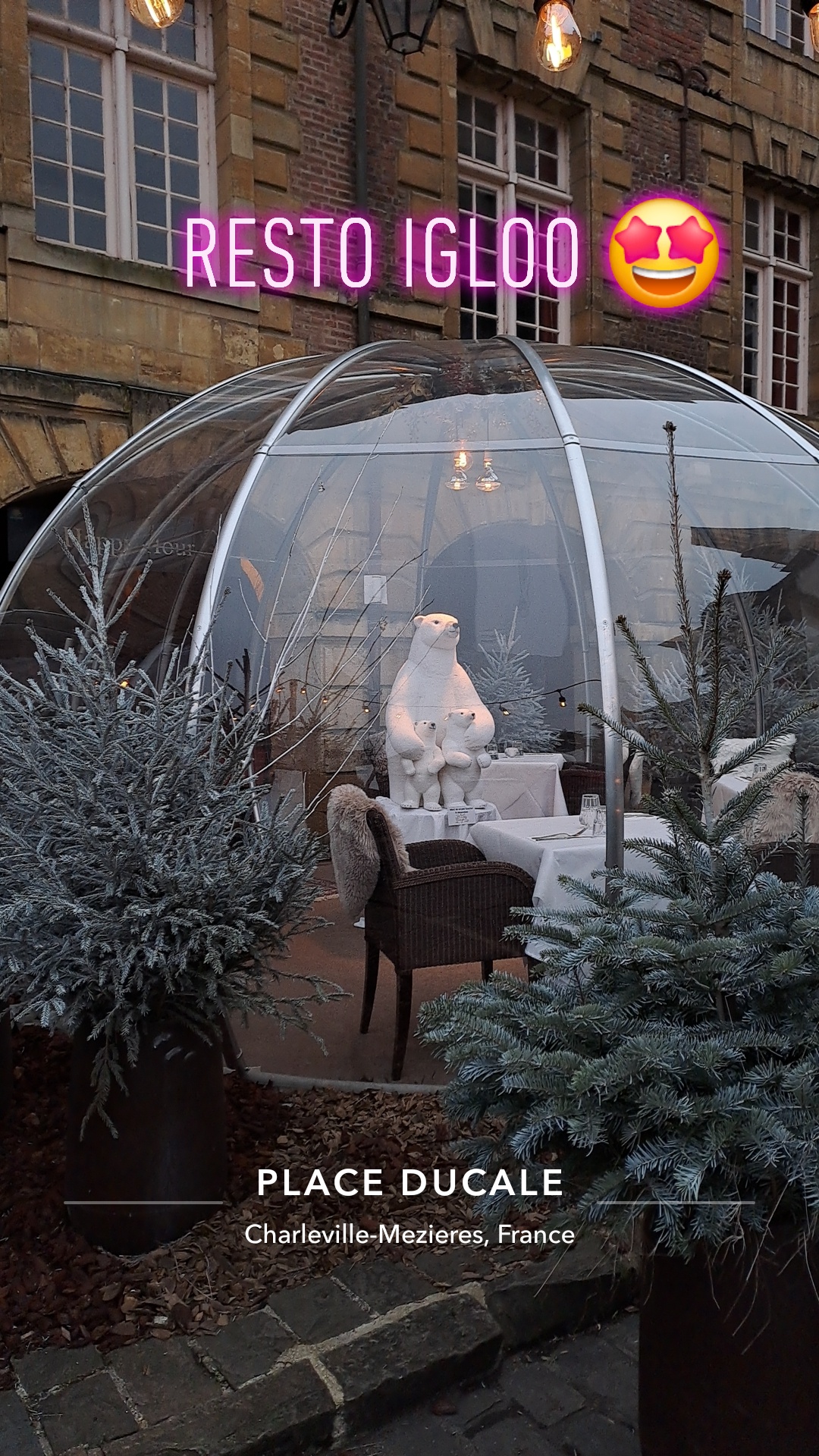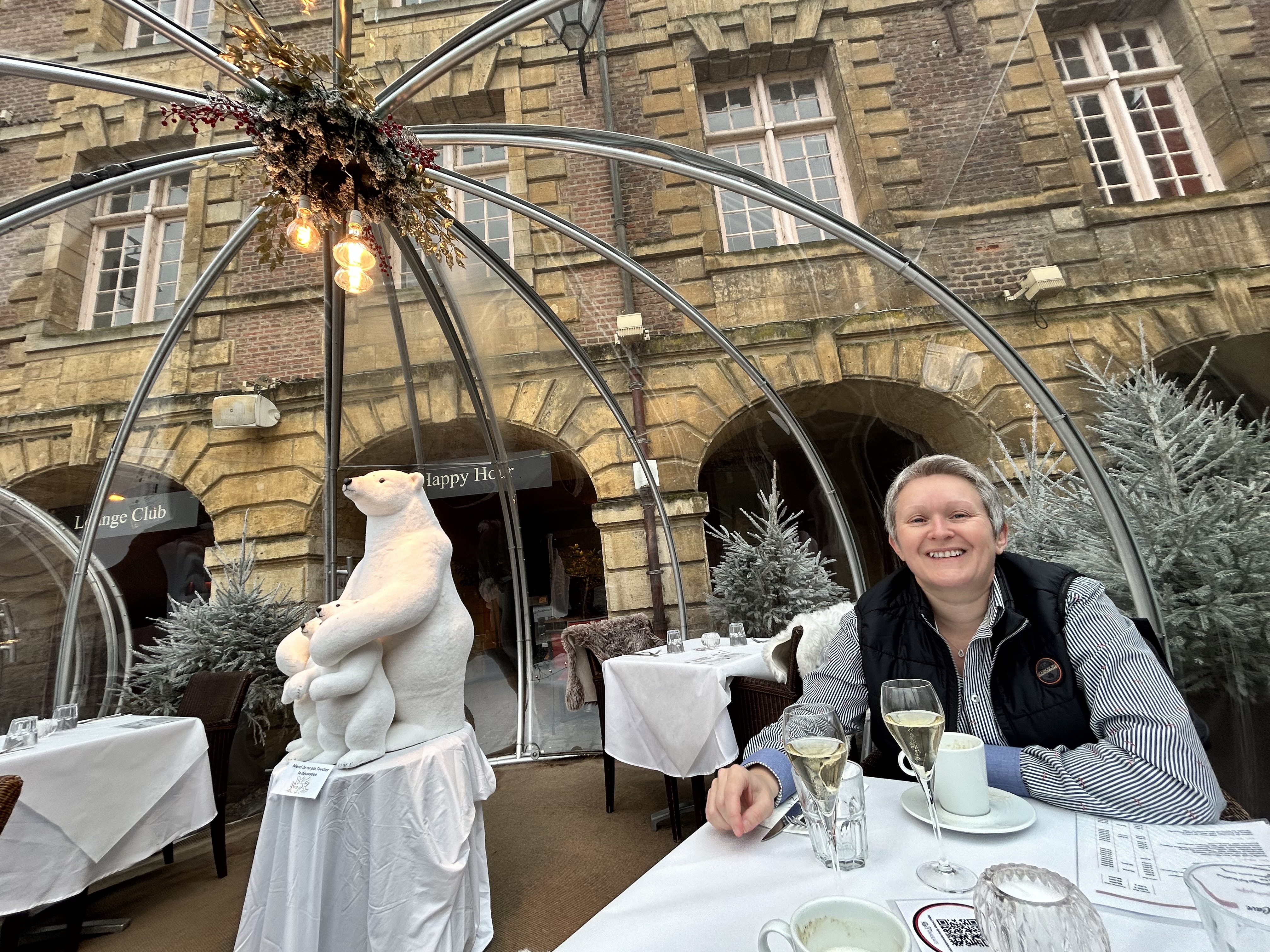 Par le hasard de notre visite de la place Ducale, Belle découverte. L'expérience du repas dans un igloo (chauffé heureusement) était extra !! Cuisine de haut niveau, dans une ambiance très chaleureuse. Moment parfait grâce à un serveur aux petits soins pour notre famille. Merci beaucoup