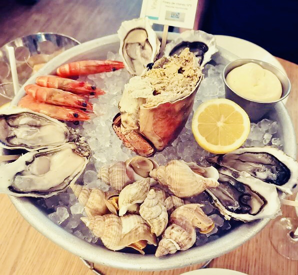 Très bons plats et service sympathique : nous avons passé un très bon moment ☺️. Le seul bémol est sur les prix qui sont en moyenne assez élevés par rapport à d'autres restaurants écaillers du quartier néanmoins la variété de plats proposés est meilleure. Nous avons pris un plateau de fruits de mer et des encornets à la plancha délicieux. Le restaurant offre un petit bol de moules marinières à la crème en mise en bouche. C'était un délice je reviendrai pour ça. Ce serait top si le menu du midi avait une formule huitres ou plus de choix de plats de poissons.