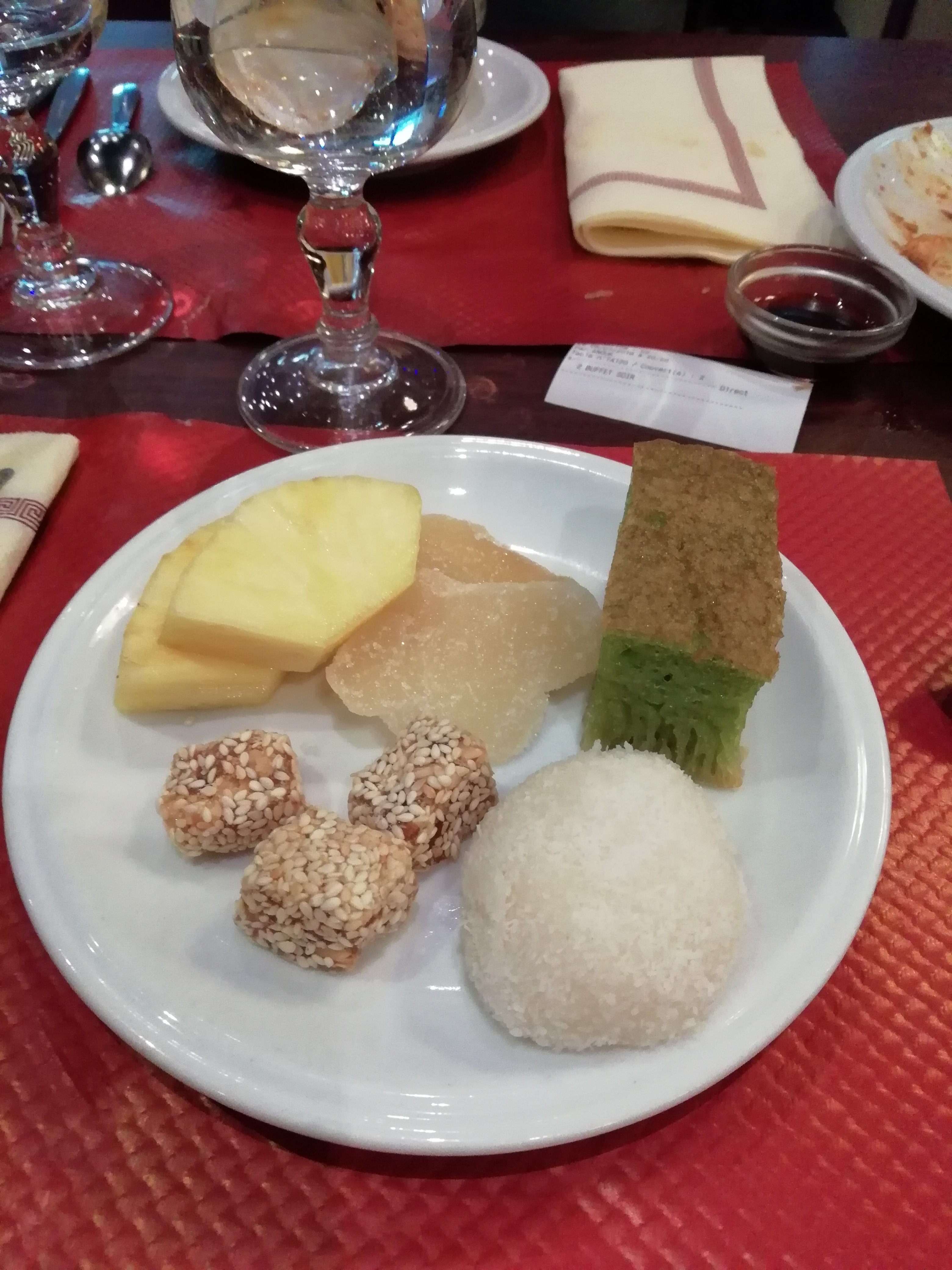 Plats asiatiques traditionnels. Bons mais sans grande innovation. Le coin des desserts manque un peu d'authenticité même si c'est bon. Le personnel est très aimable et le cadre très agréable.