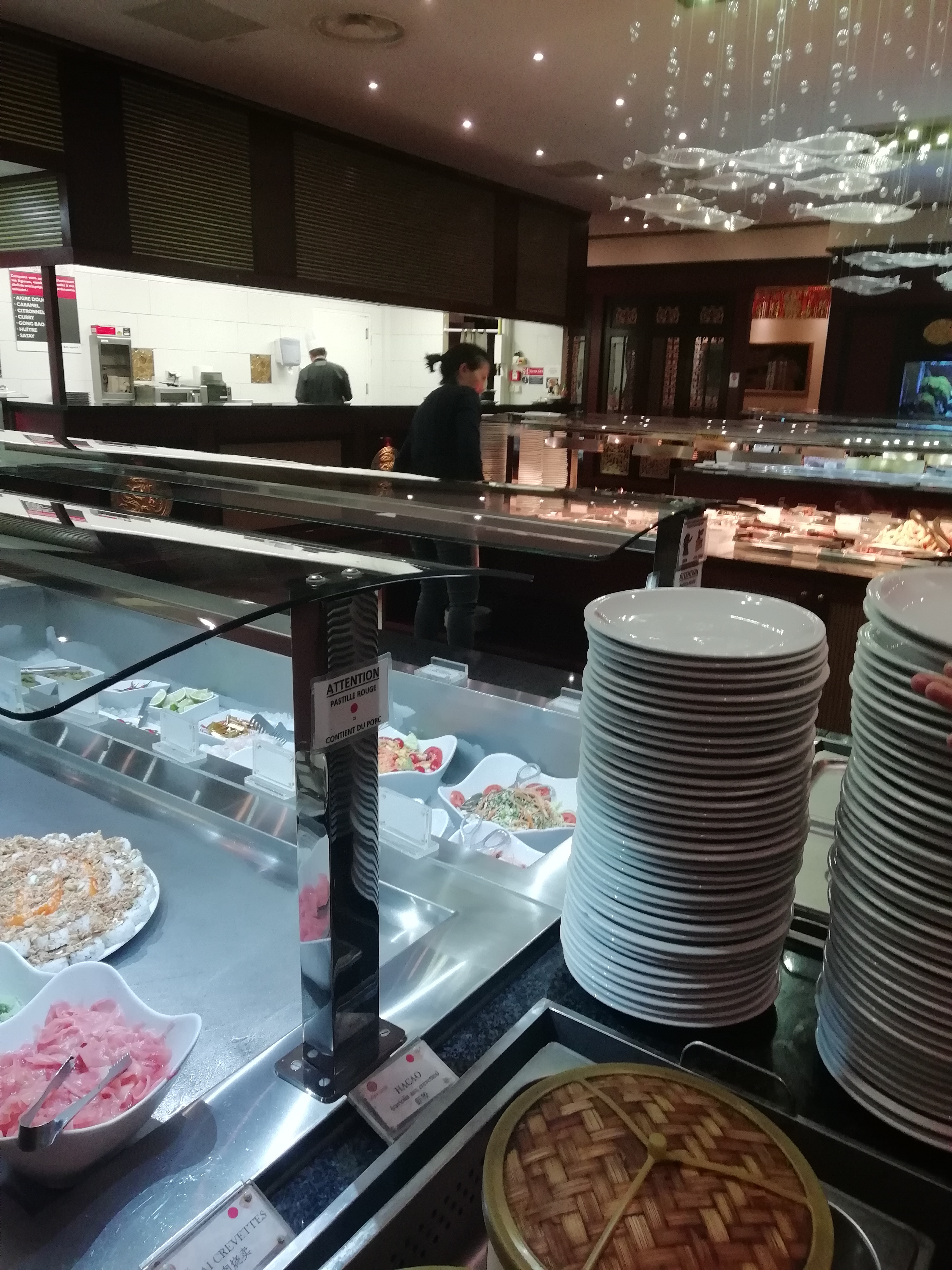Très très déçu par ce restaurant. Pour commencer, un acceuil peu chaleureux avec de la décoration sans aucune originalité. C’est bruyant, il y a trop de gens. Ensuite, les plats du buffet chaud n’ont rien à voir avec les plats originaux. Plus particulièrement le canard laqué pour n’en siter qu’un. Tout est gras, trop gras, autant vous dire que c’est le restaurant parfait pour une prise de masse bien sale. Pour finir, les desserts, ou seul la crème brûlée m’a permise de ne pas sortir sans payer, car sachez que le soir le repas vous coûte 20,90€. C’est trop cher. Cependant !⚠️ Je met une étoile pour le saumon. les sushis et les toilettes qui sont propres.