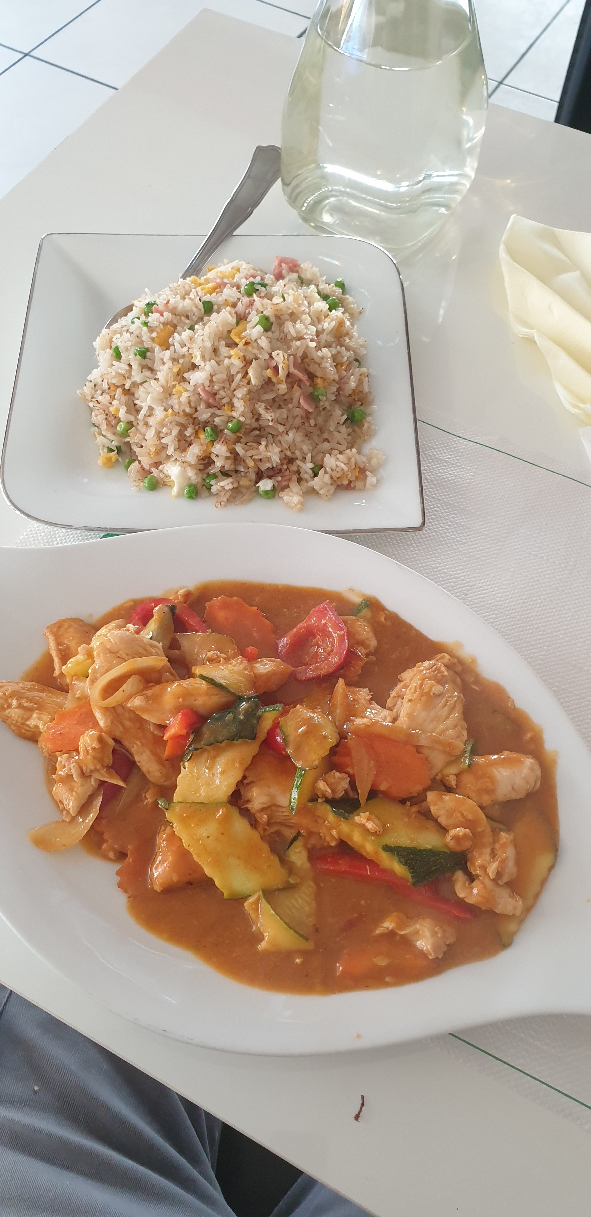 Agréable surprise, nous avons très bien mangé. Riz cantonnais maison, très bon. Poulet sauce thaï, tendre et bien assaisonnée. Sushis et raviolis vapeur fait maison, très bon aussi.