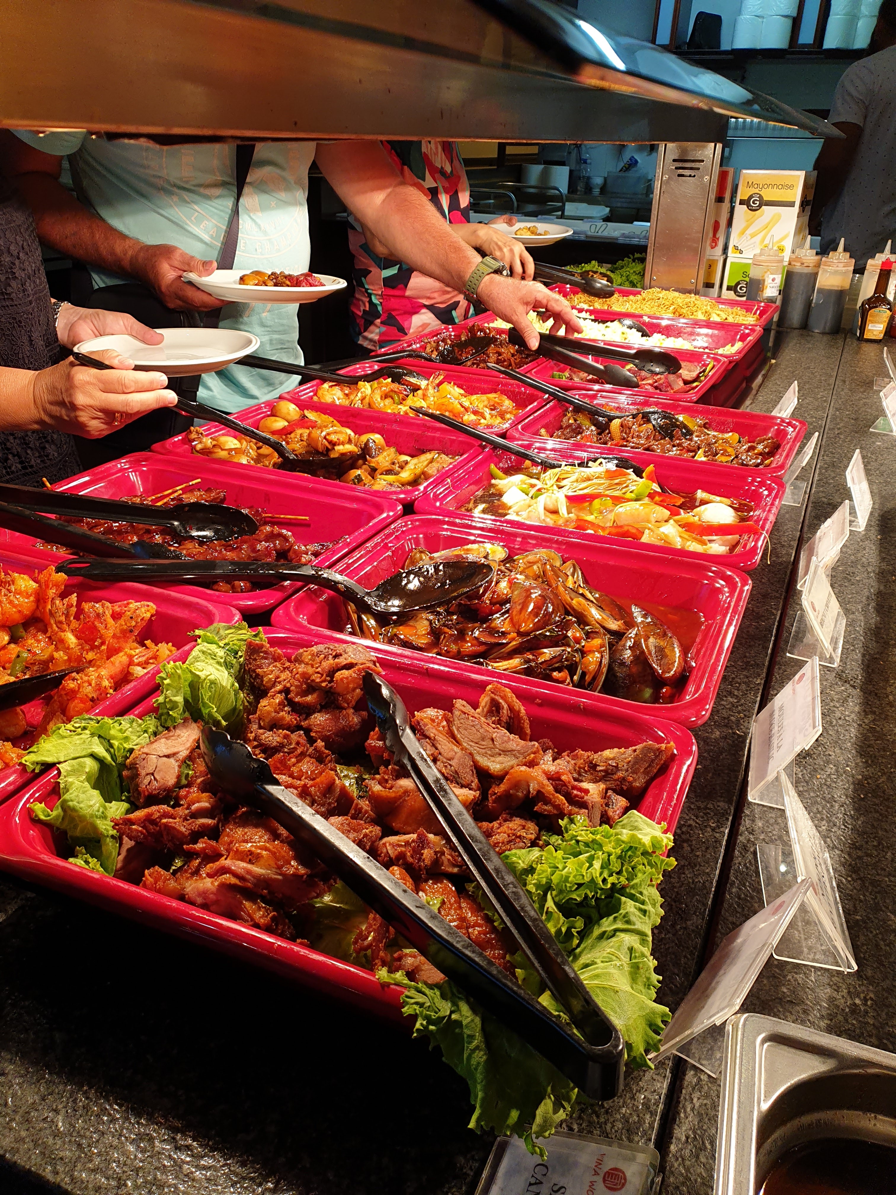 Bien sûr un buffet à volonté bien garni en choix. La nourriture est bonne mais ça reste simple en goût. Personnel agréable .