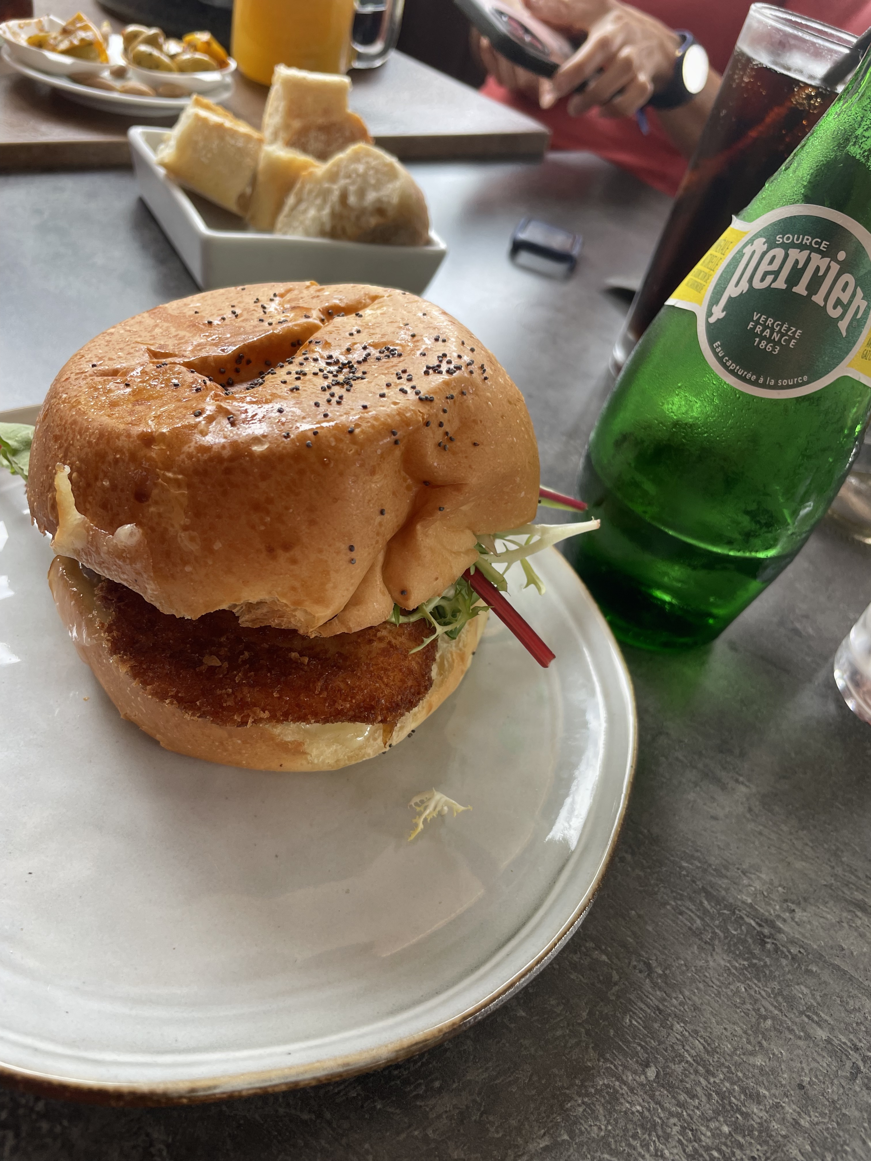 Hamburger pas terribles, extrêmement déçus, le pain n est pas bon pour des Hamburger soit disant maison, ils ne savent pas doser les Spritz, cher pour ce que c est, on paye la vue, c est tout.