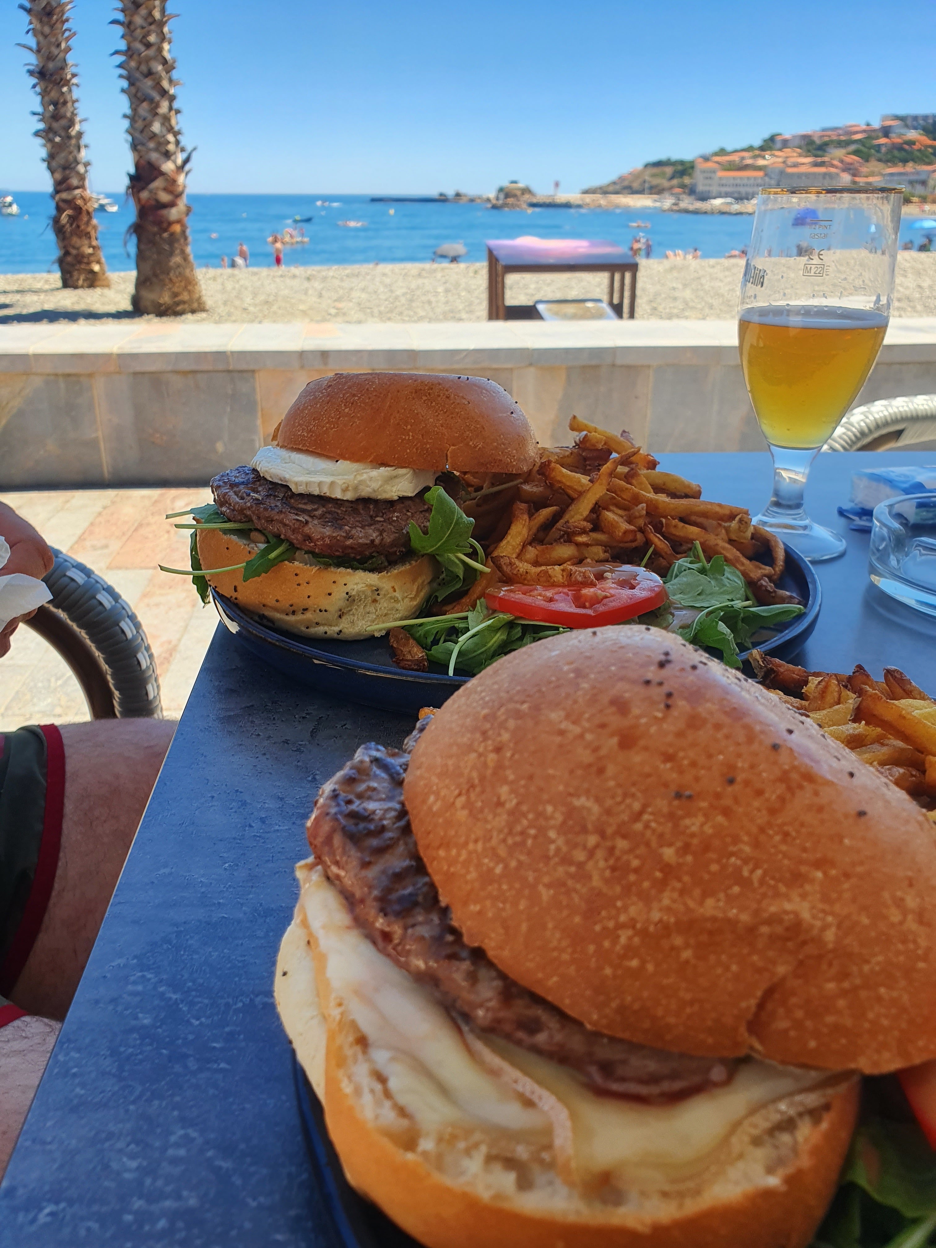 Nous nous sommes arrêtés dans ce restaurant un midi à Banyuls car le menu donnait envie : large choix de salade et de burgers. Et Les Prix semblaient corrects si on les compare aux restaurants à proximité. Belle vue sur la mer. Le cadre est très sympa. Par contre beaucoup d’attente nous avons attendus un bon moment avant d’avoir nos hamburgers ! Mais quel délice . Les burgers étaient excellents ! Celui est à la fourme d’ambert est un régal ! Le pain est excellent. Je recommande ce restaurant malgré l’attente si vous êtes de passage à Banyuls et souhaitez vous arrêter manger en bord de plage .