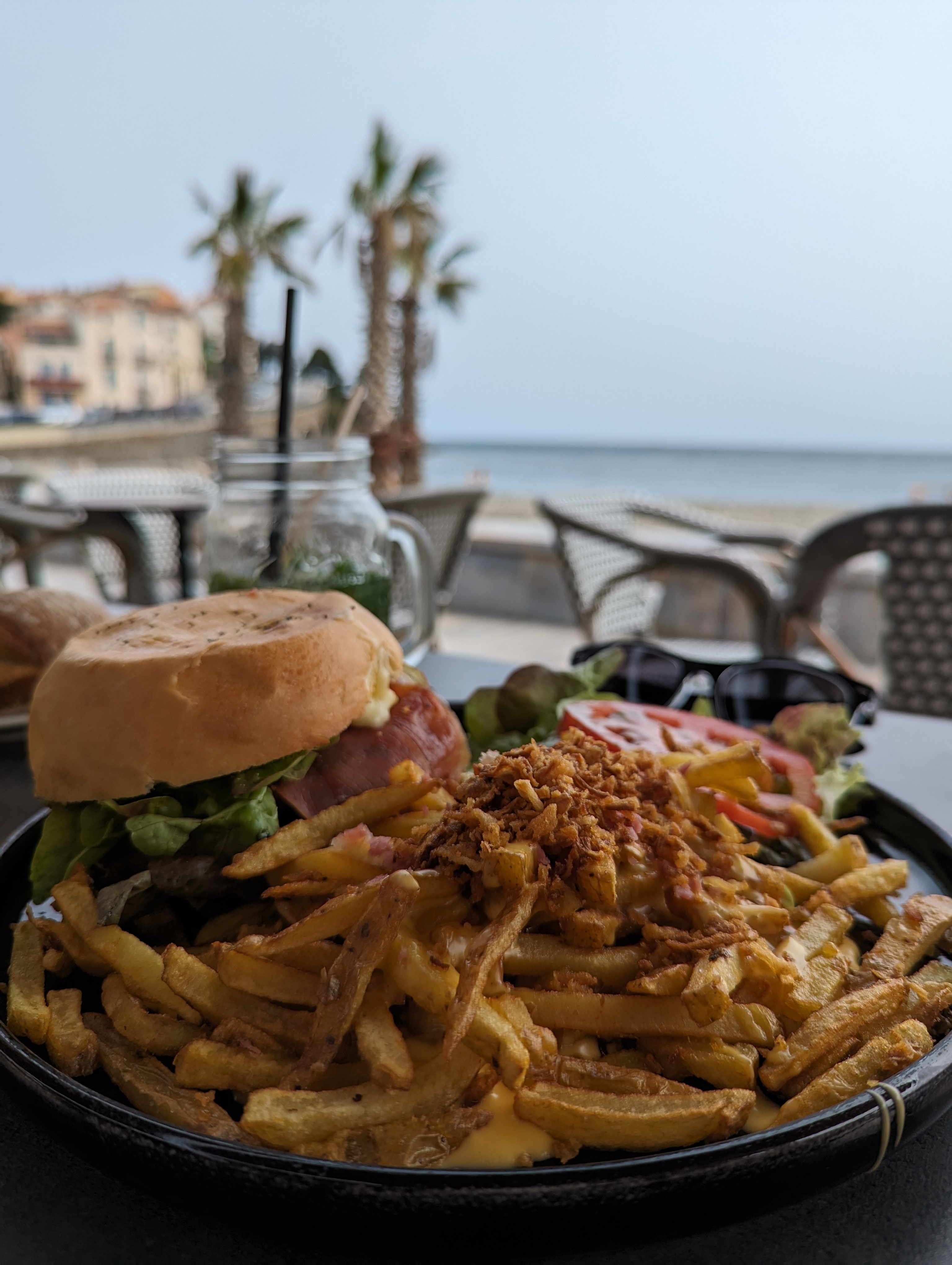 Très bon hamburger, frites maison, service rapide et toilettes nickel ! Merci beaucoup. Le tout sur le front de mer de Banyuls.