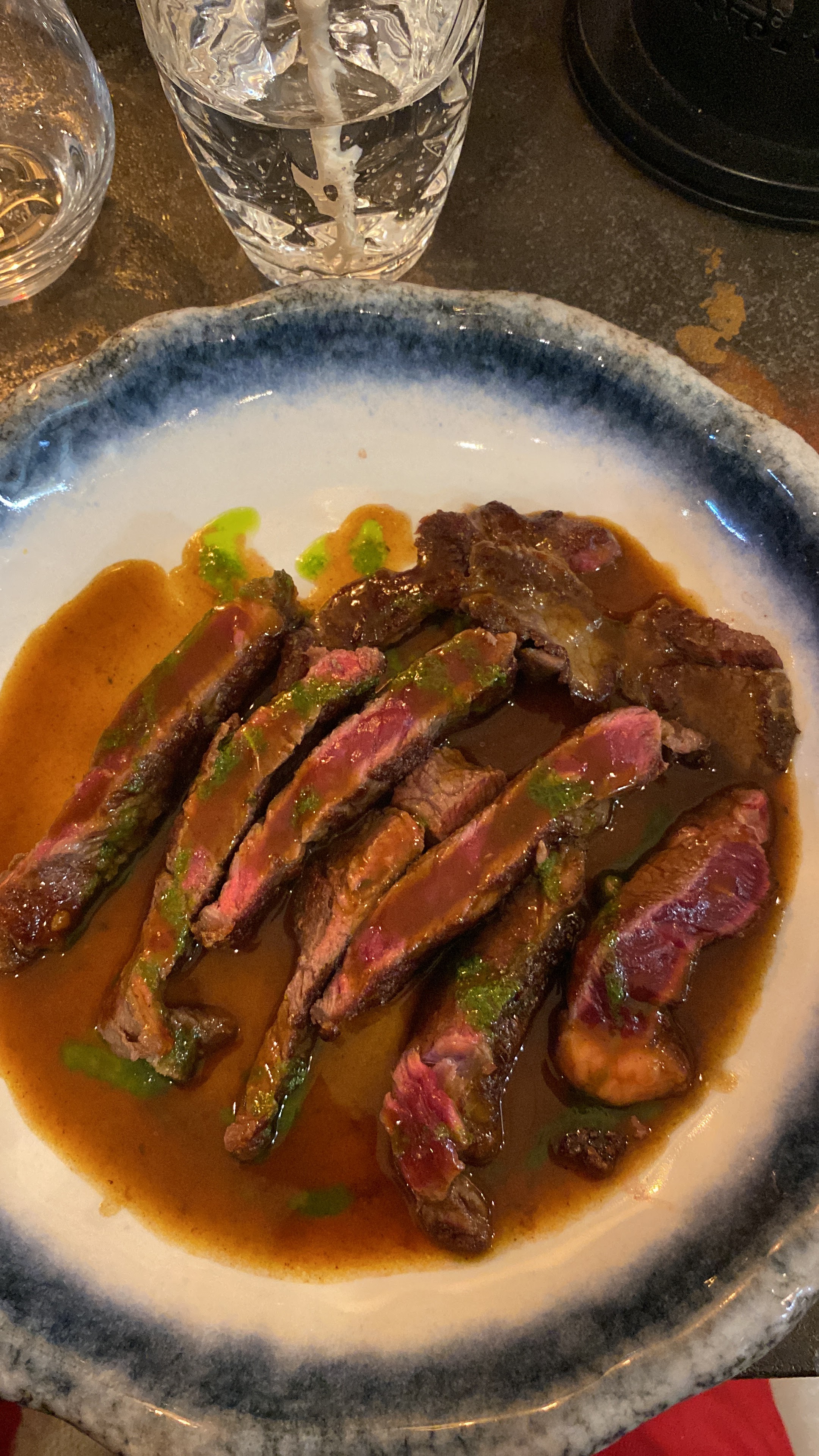 Personnel agréable et restaurant très sympathique. Toutefois, je déplore le fait de payer la garniture avec la viande. Bien que les produits soient de très bonnes qualités, je trouve ça dommage de payer 84€ pour seulement trois personnes avec qu'une seule boisson...