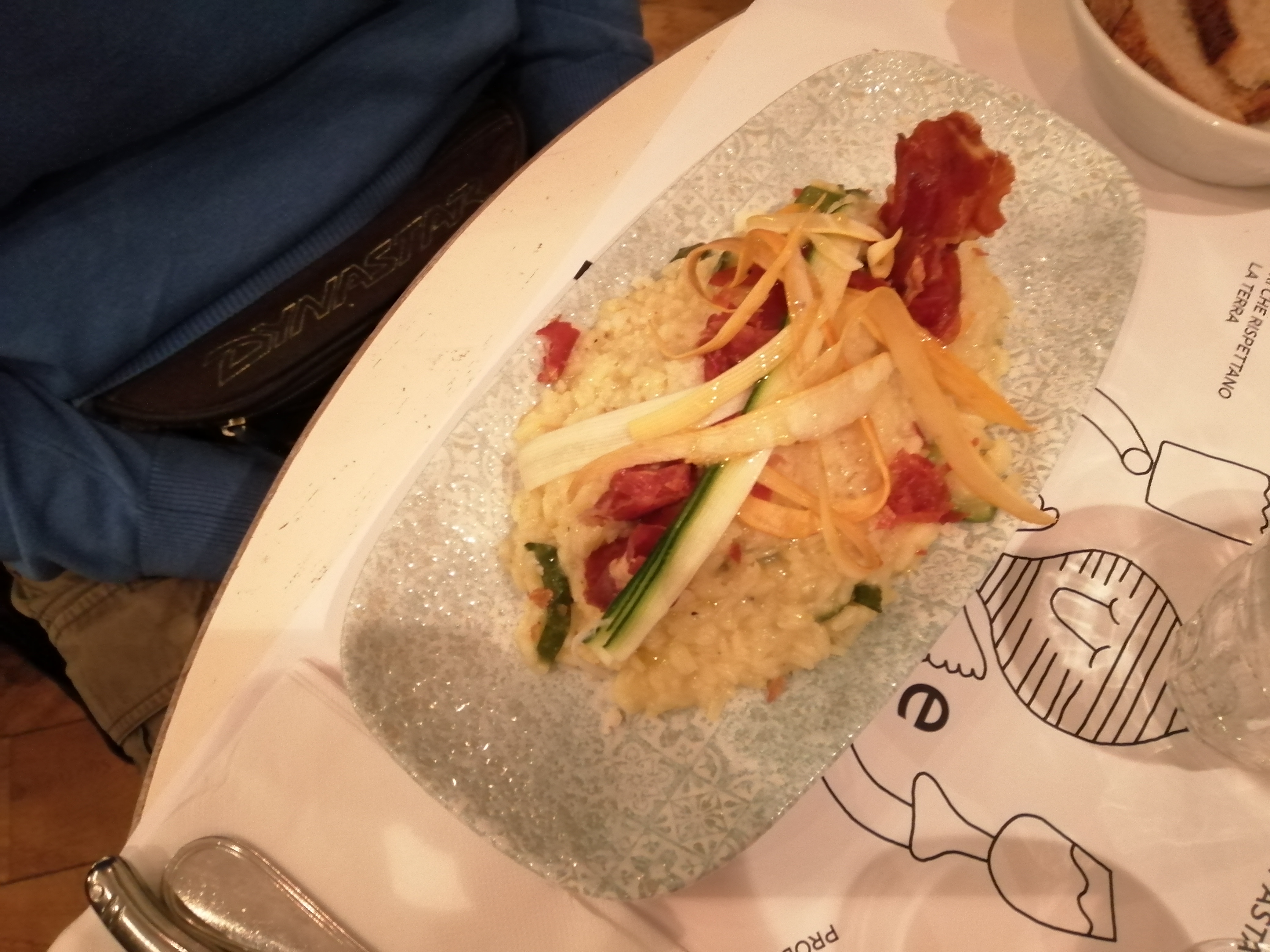 risotto de betterave et buffala, parfait ! Le petit vin sicilien est passé tout seul. Merci.