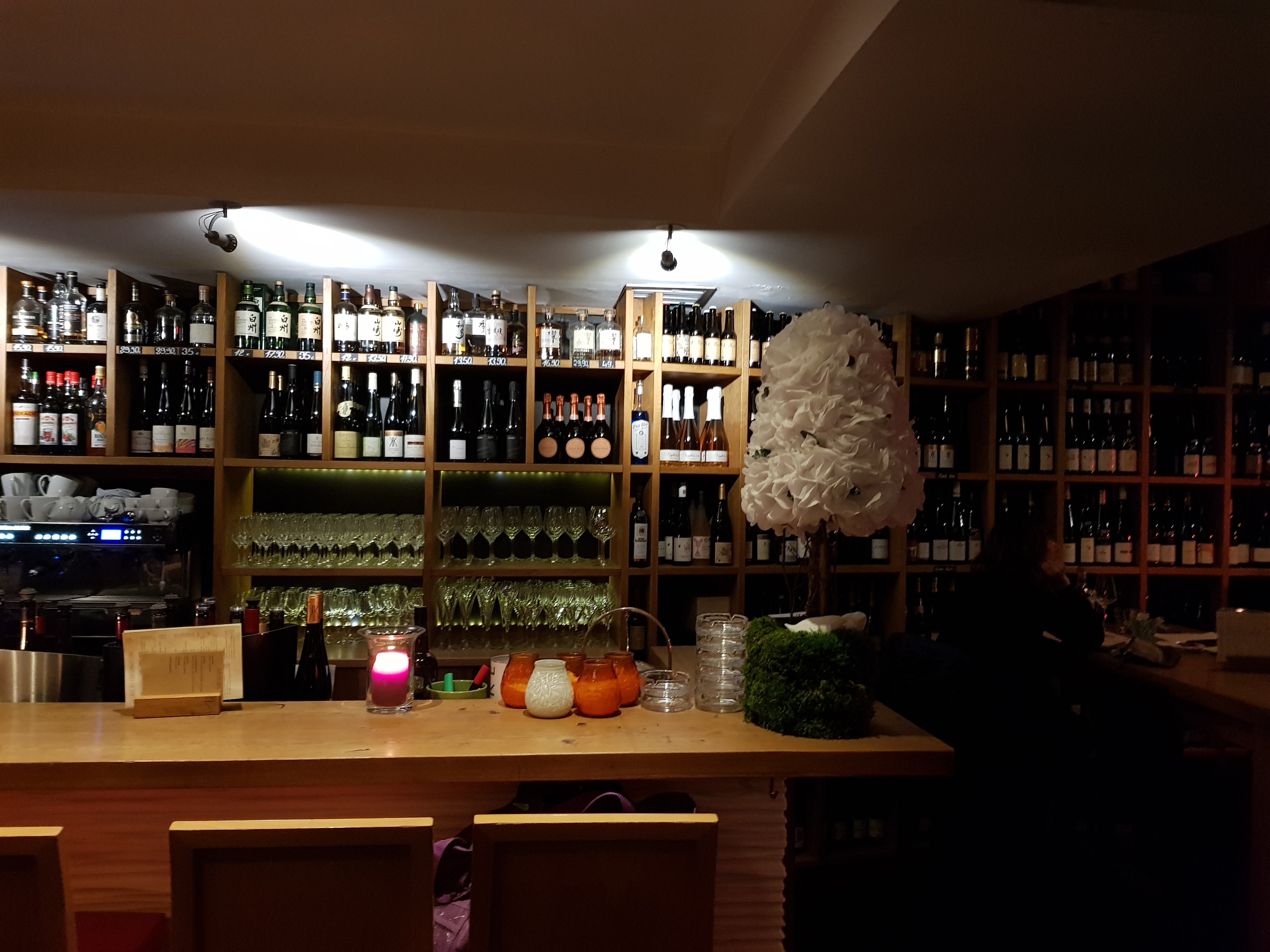 Beau choix de vins (30 bouteilles ouvertes), nourriture excellente et service amical et serviable :)