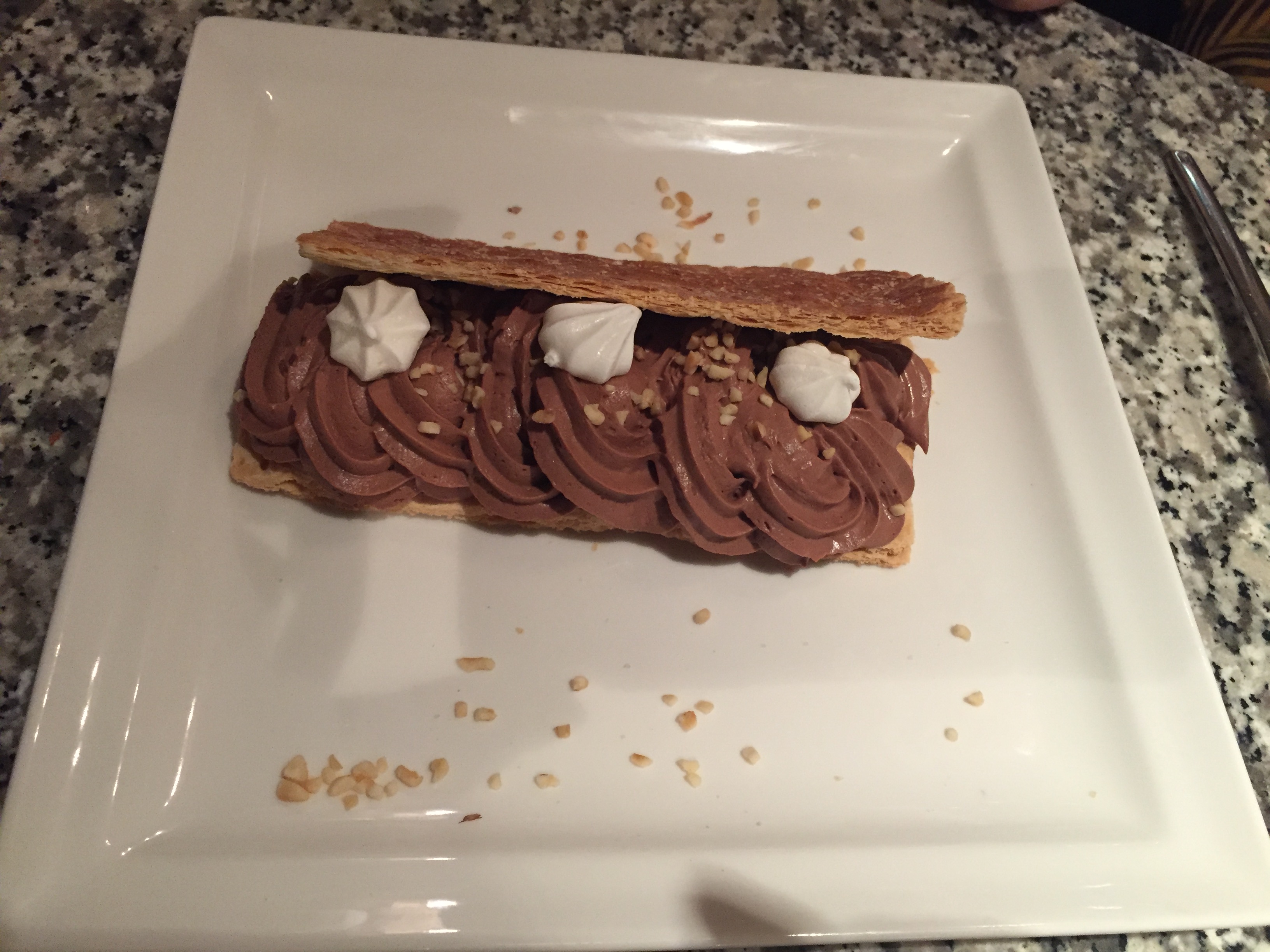 Carte des menus bien maigre. Très petites portions, et je n'ai jamais vu même l'ombre de mon dessert. Trop cher pour du pain tartiné. Le vin y est bon cependant.