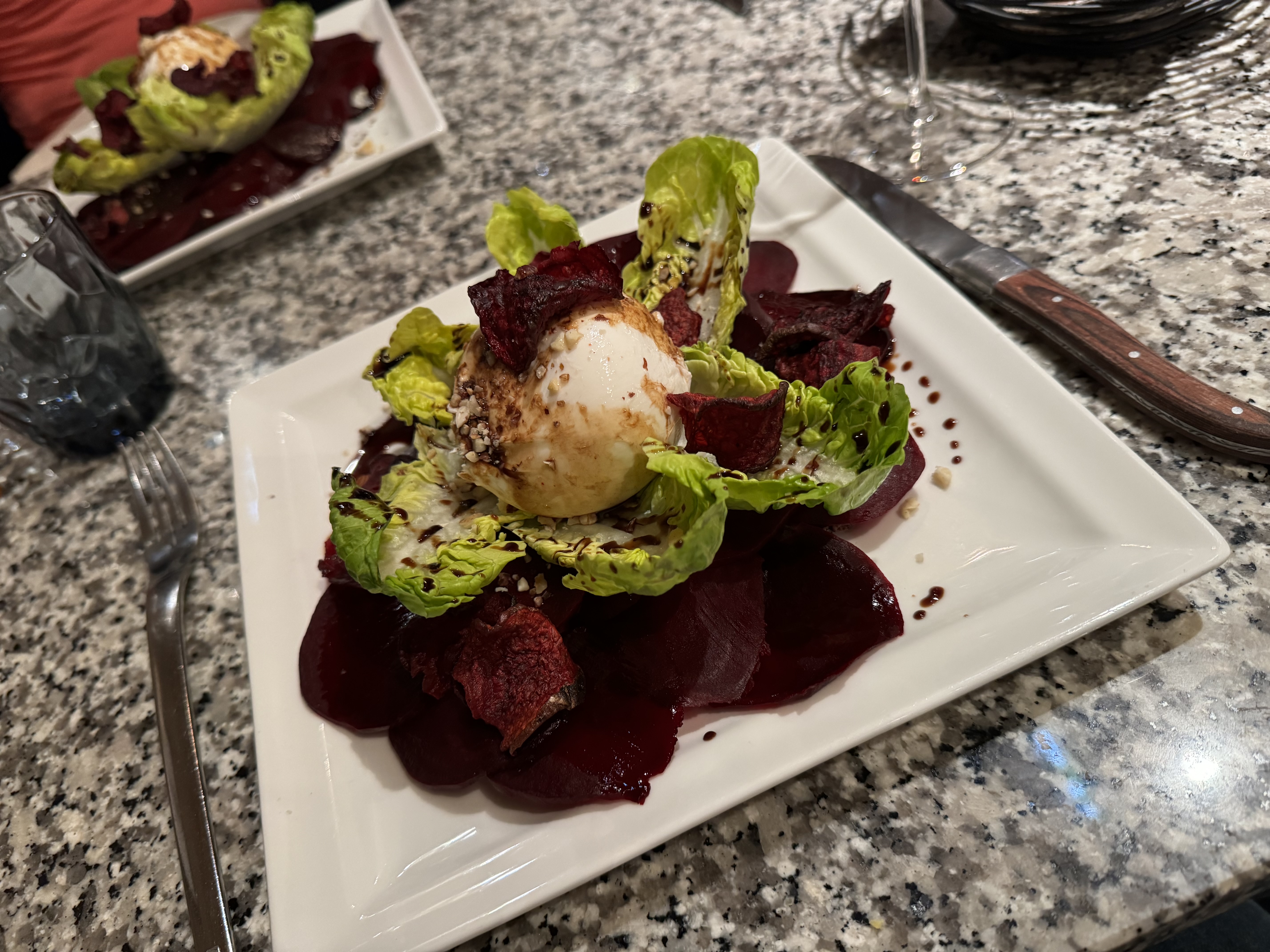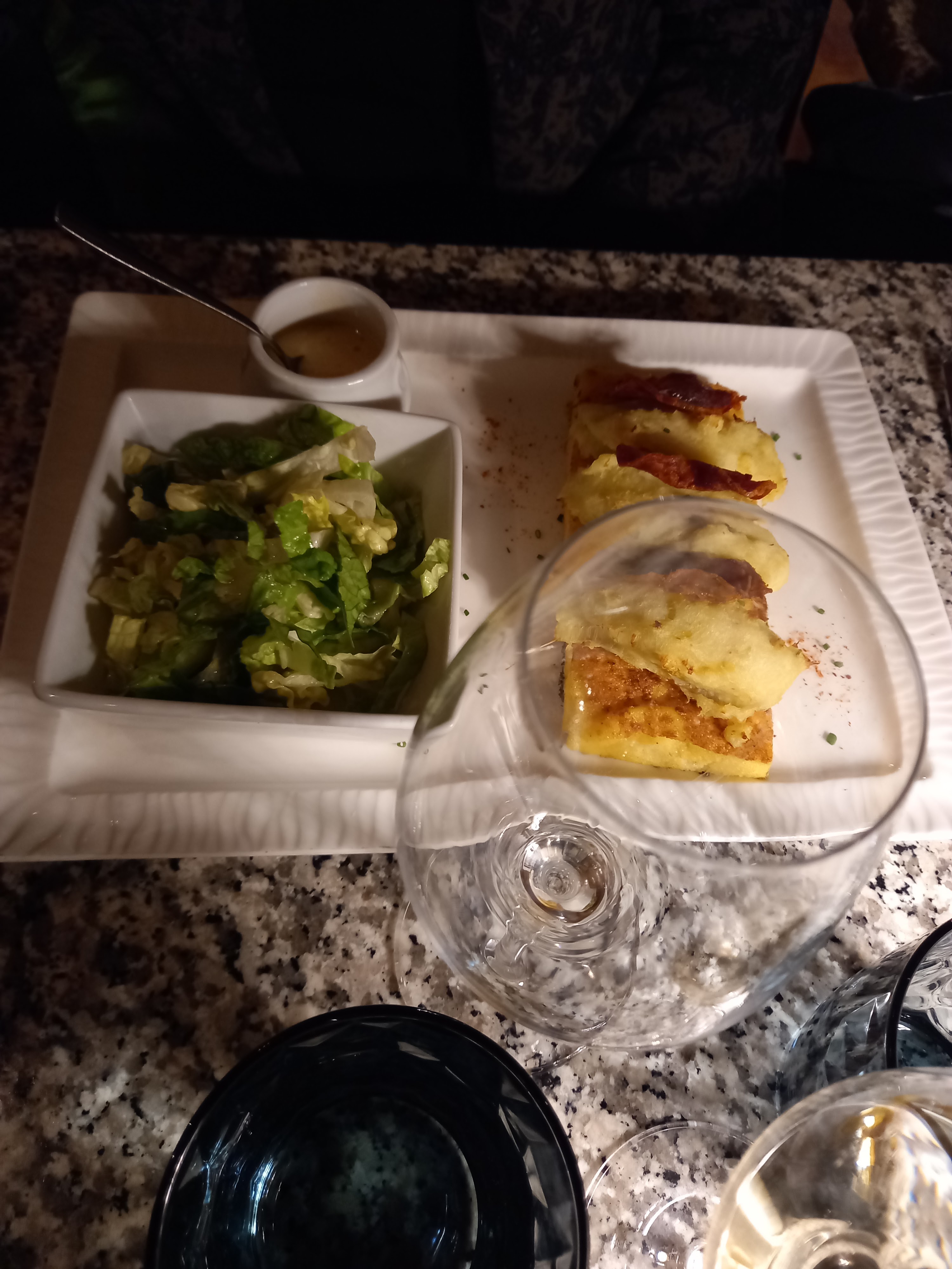 Tout était exquis👌 le plat, le vin et le dessert. Le service très agréable, le cadre de pierres voutées apporte un charme.