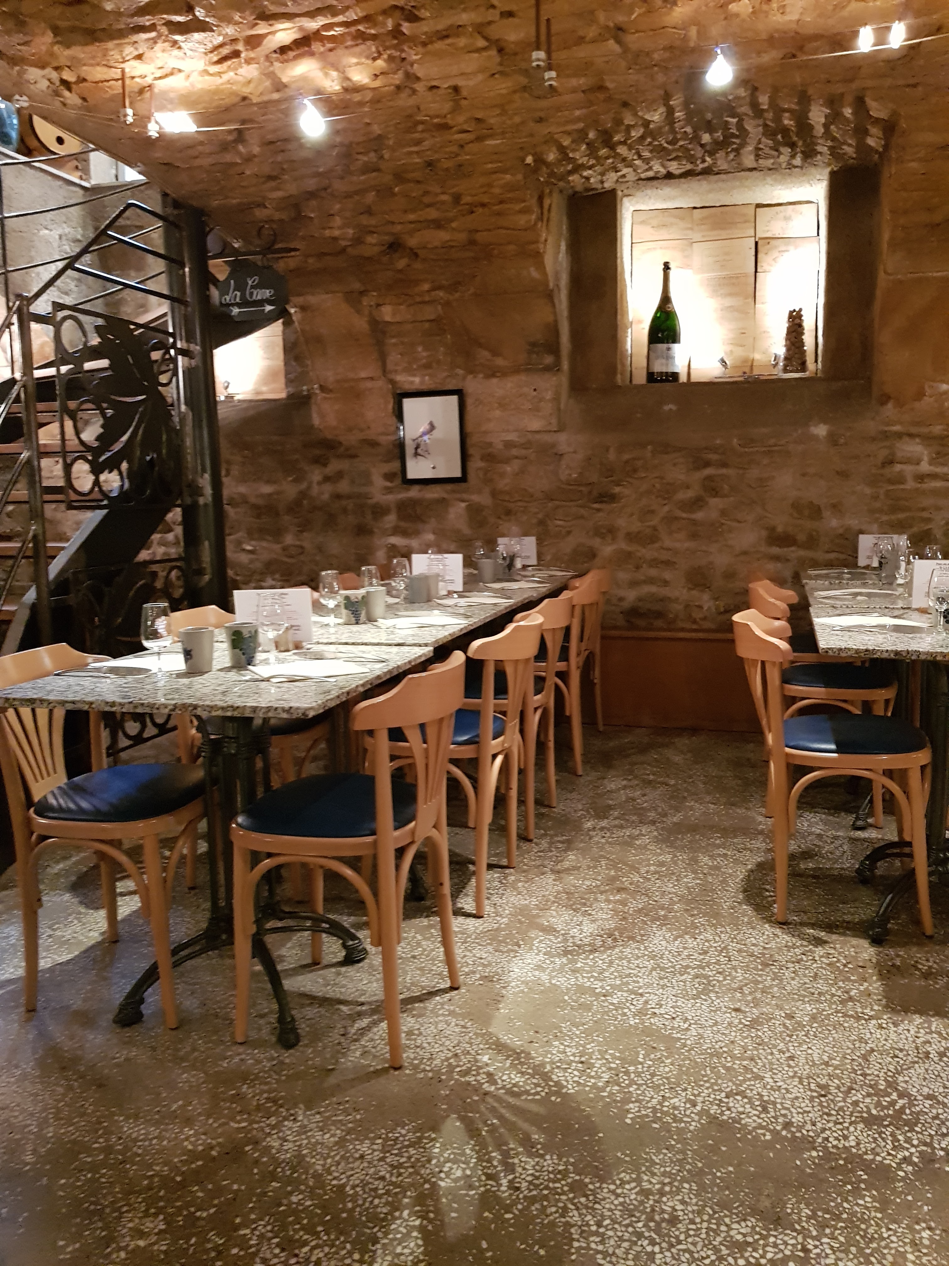 Le cadre est atypique, on à la fraîcheur de la cave en été, c'est le top. Et les plats sont succulents avec des délicieux accords mets et vins. Je recommande cette adresse.