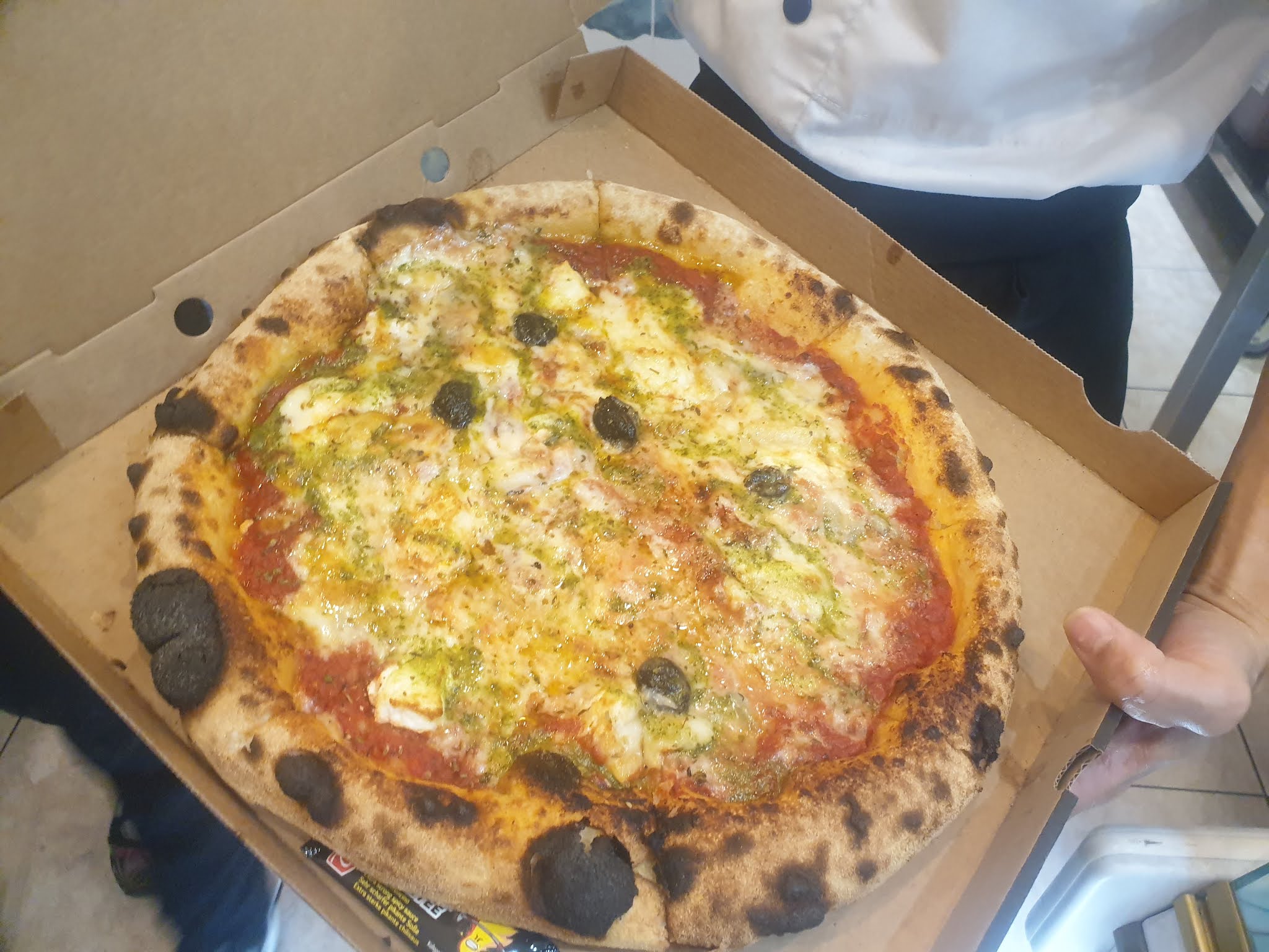 J'y suis passé en coup de vent pour commander une pizza et j'ai pas été déçu. L'accueil est chaleureux, on sent tout de suite que ce sont des passionnés qui on le souci du travail bien fait et de qualité, et sans surprise ça donne une pizza goûteuse qui m'a fait fait regretter de ne pas en avoir pris une deuxième. De plus j'ai eu ma pizza en 10 min montre en main après commande.