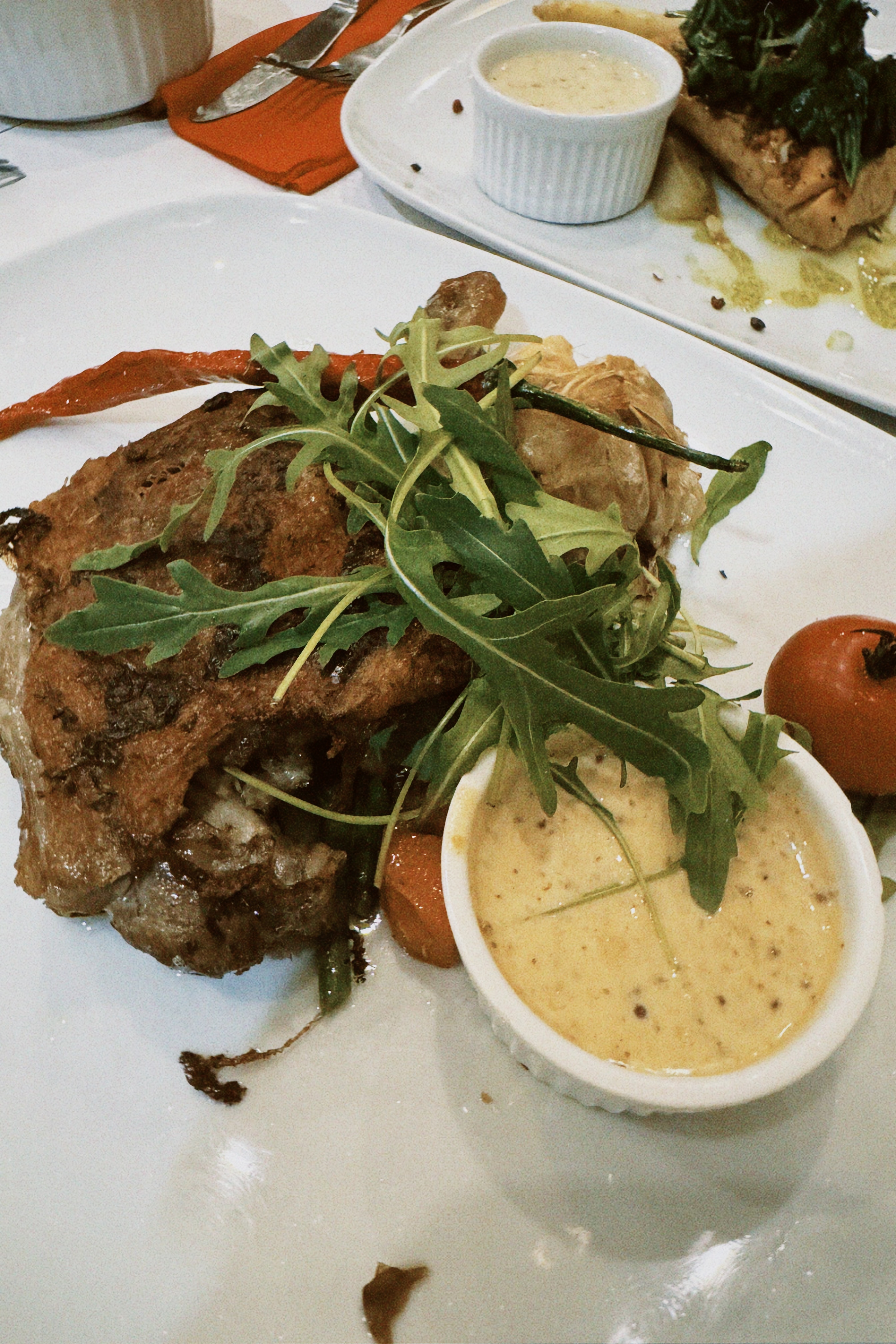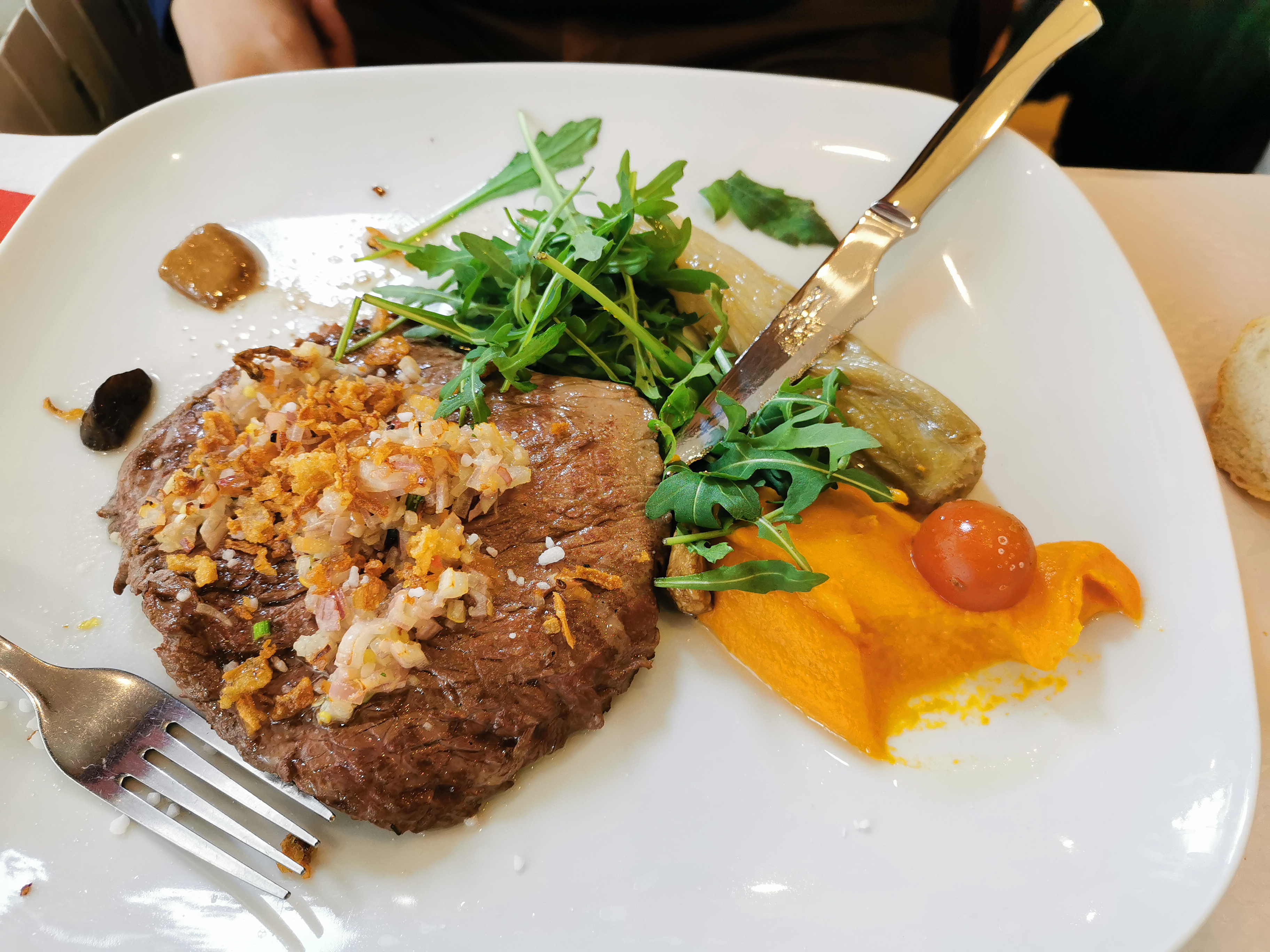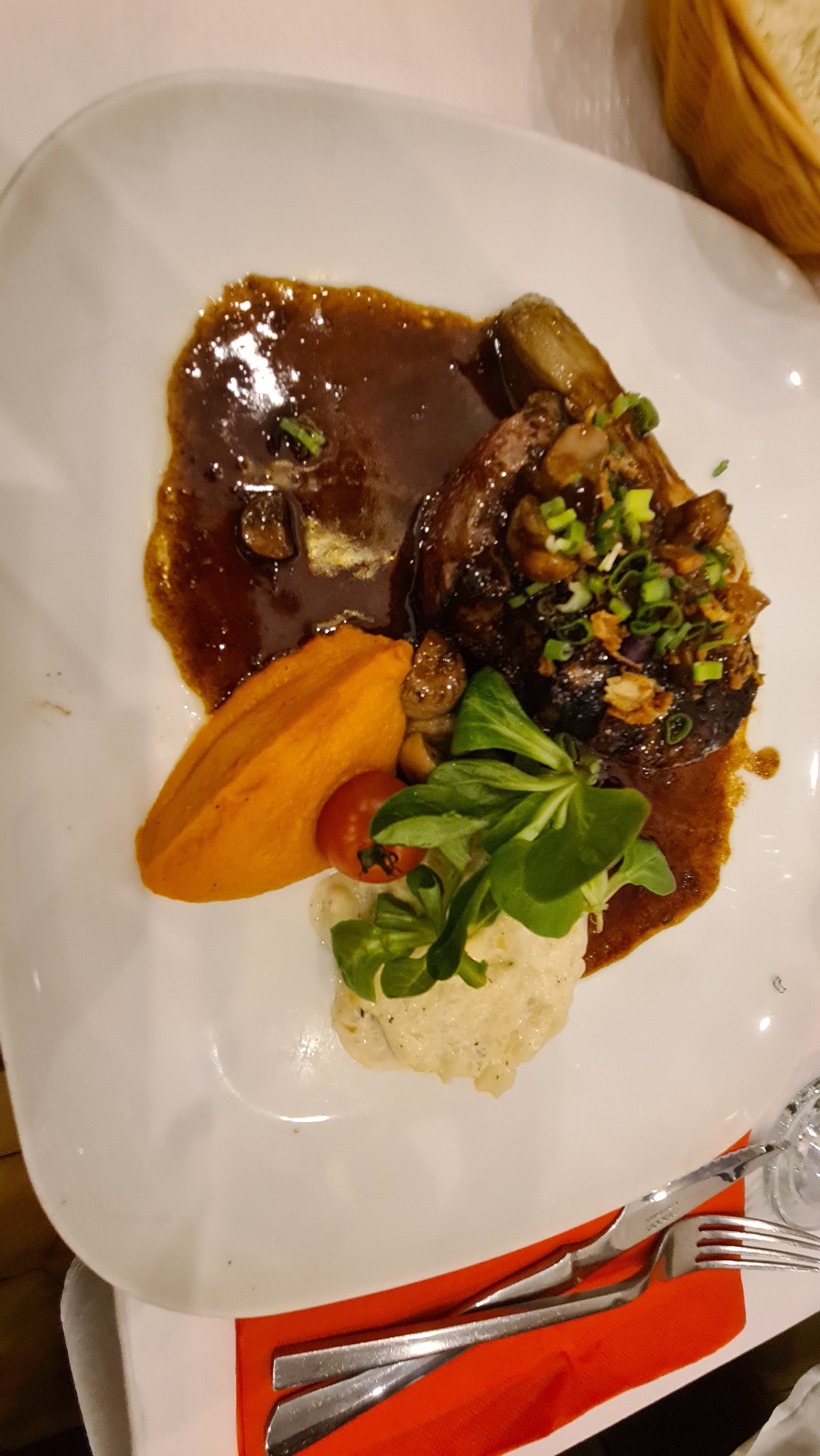 Nous avons passé un très bon moment et les plats principaux étaient très bons. Néanmoins, 17,50€ pour le camembert frit… sachant que c’était uniquement deux petits triangles frits sur 2 tranches de jambon cru. Sinon, le jarret de porc et la cuisse de lapin étaient tout deux très copieux. Je recommande tout de même !