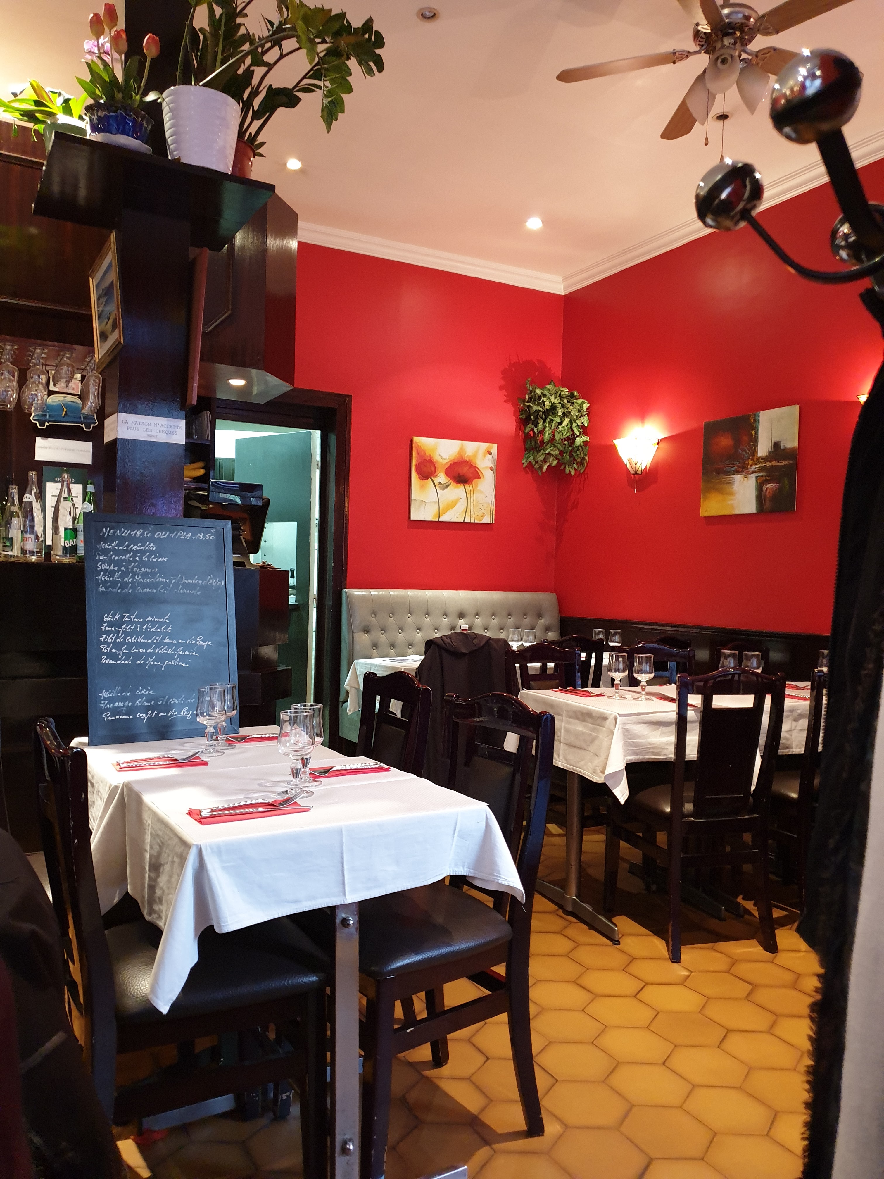 Très bon restaurant de quartier, le menu à 18.50€ ( entrée, plat, dessert) est imbattable par sa qualité et quantité. Excellents tête de veau et rognons entiers grillés !