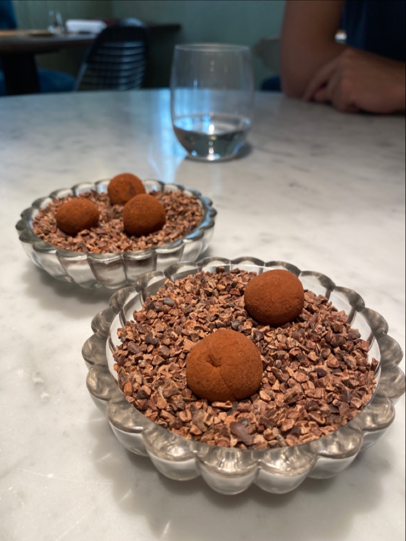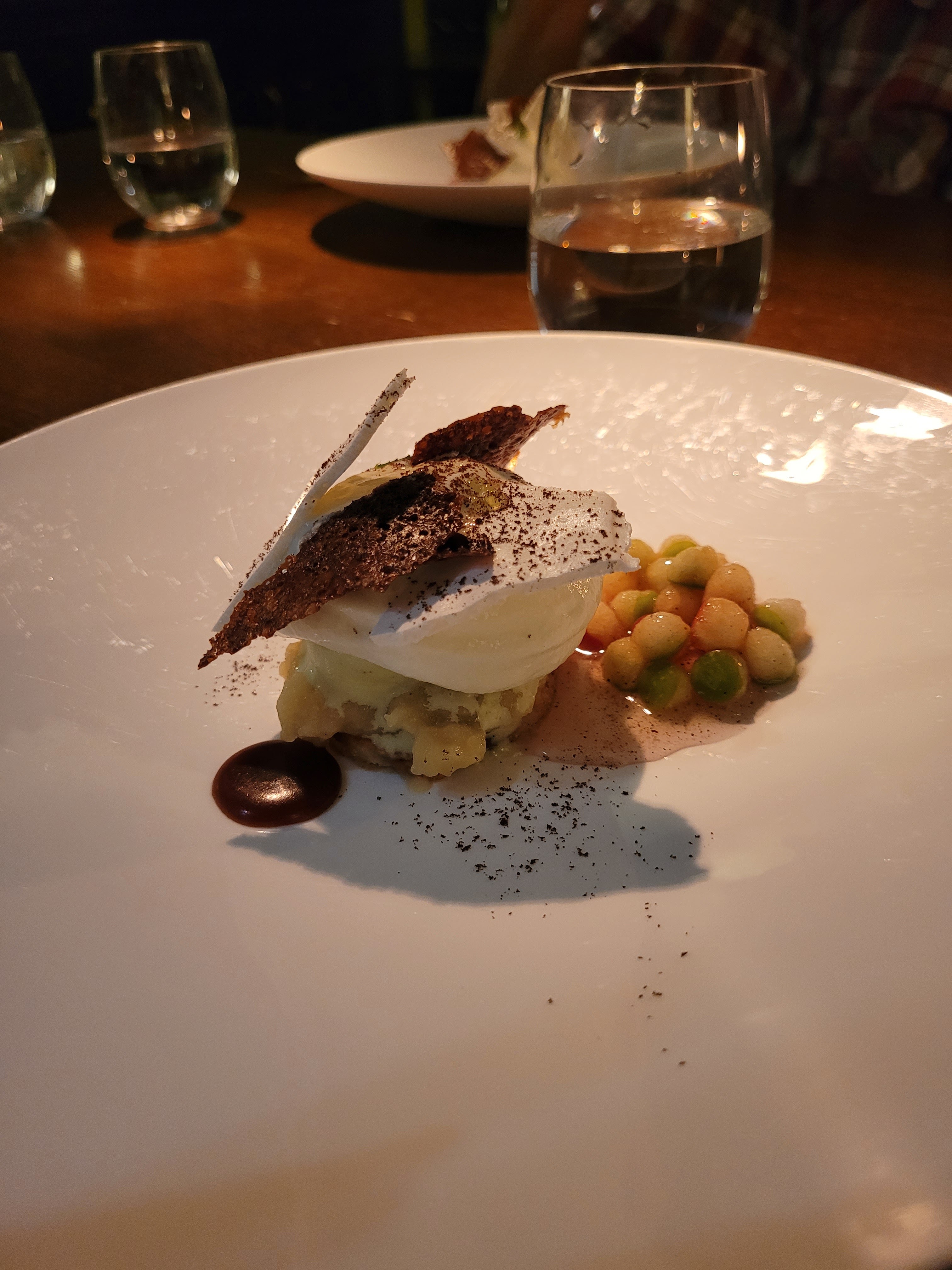 Pour ce deuxième dîner, tout était encore parfait. Cuisine créative, service attentionné. Même si j’adore le la deco et l’aspect chaleureux de la salle, j’ai un petit bémol sur l’ambiance musicale (certes très discrète). Une programmation très années 80 ne me semble pas en adéquation avec l’expérience culinaire. Quitte à lettre de la musique, il faudrait repenser ce choix. Mais rien de rédhibitoire.