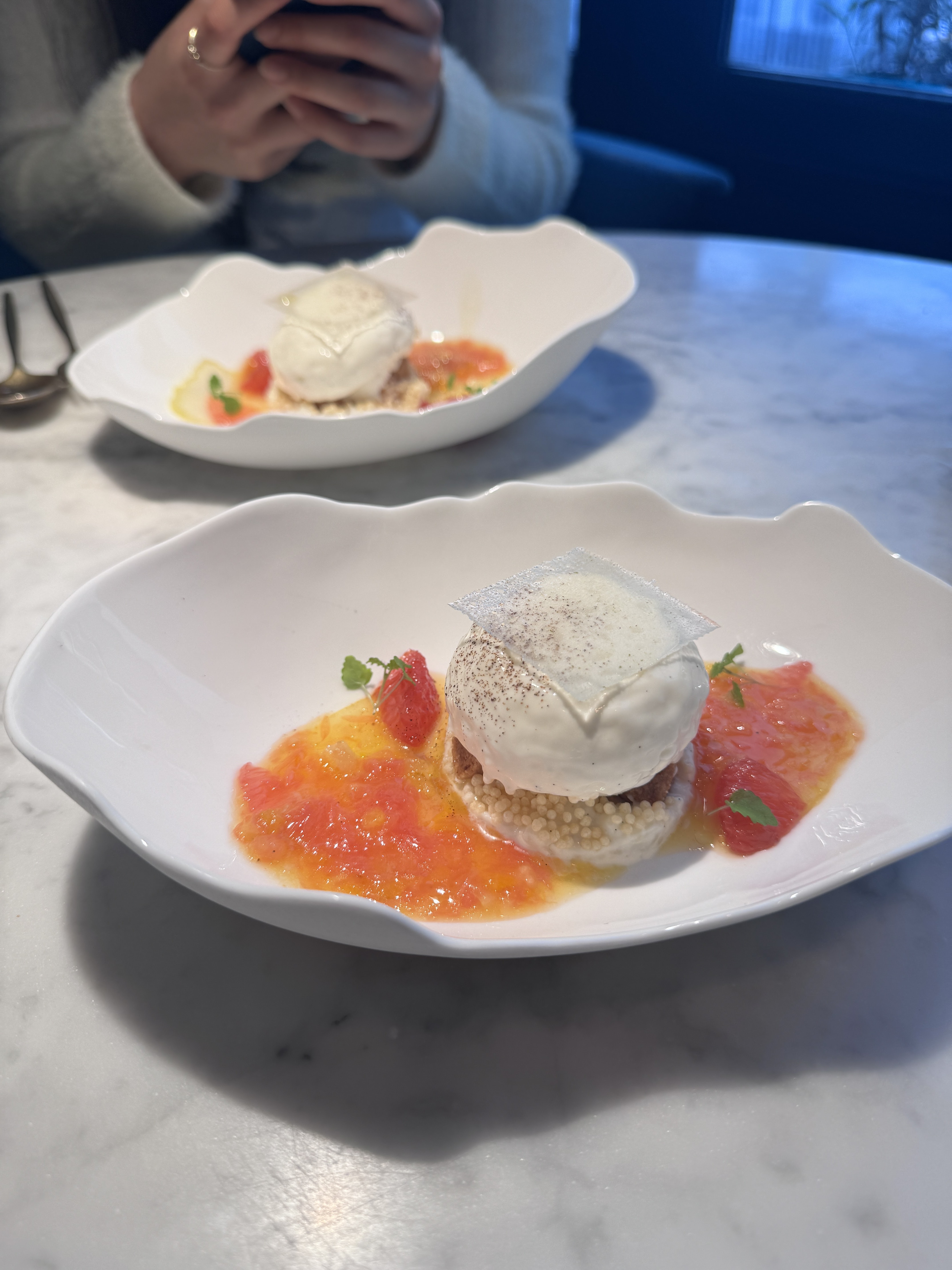 Super expérience ! Les plats étaient délicieux, le service très agréable. De très belles surprises au menu, très gourmand et surprenant. Par contre c’était dommage car notre table était beaucoup trop proche de la table voisine donc il manquait vraiment le côté intimiste pour pouvoir discuter librement. Il faut faire attention lors du choix de la table en amont. À part ça, tout était super.