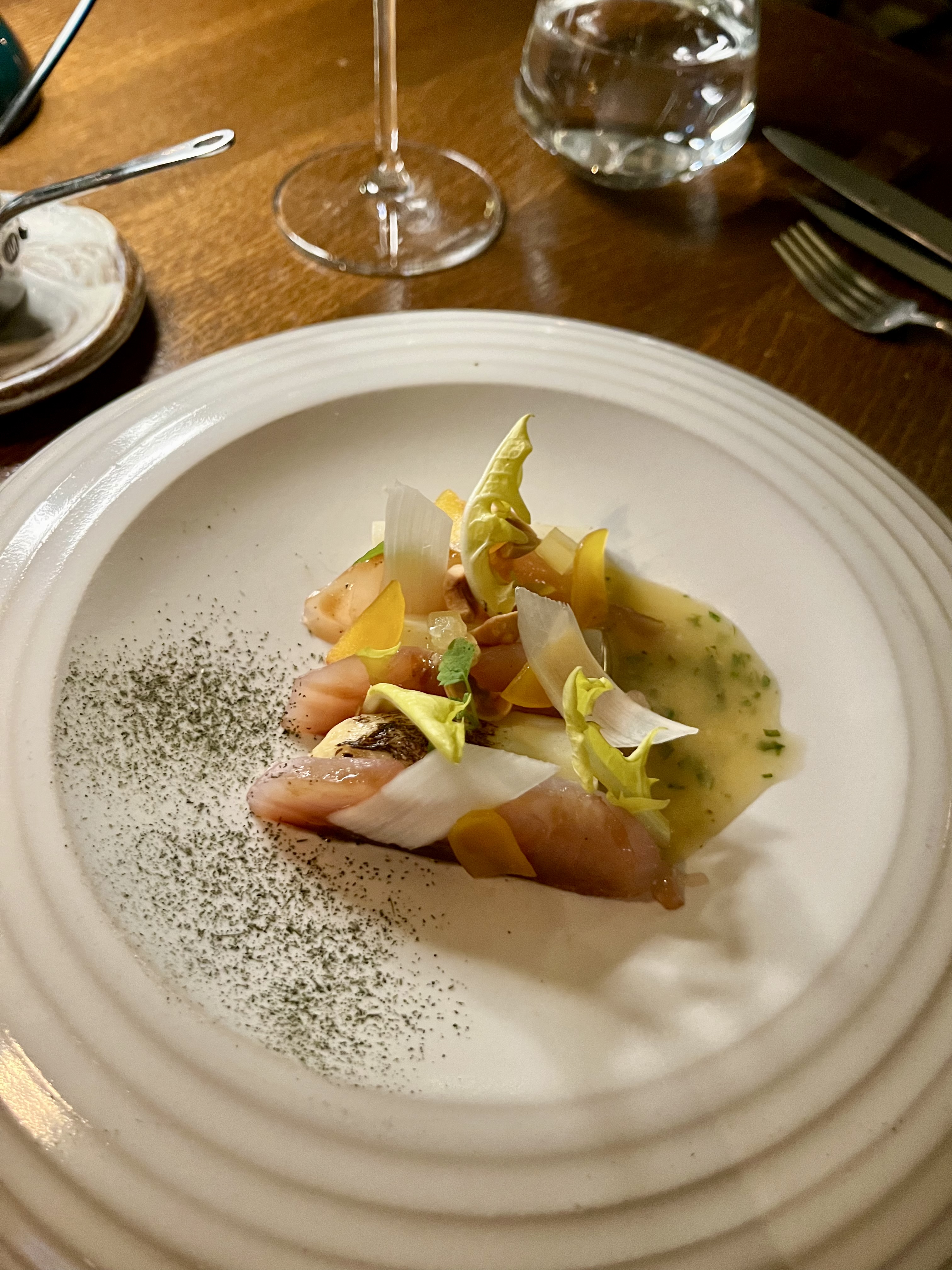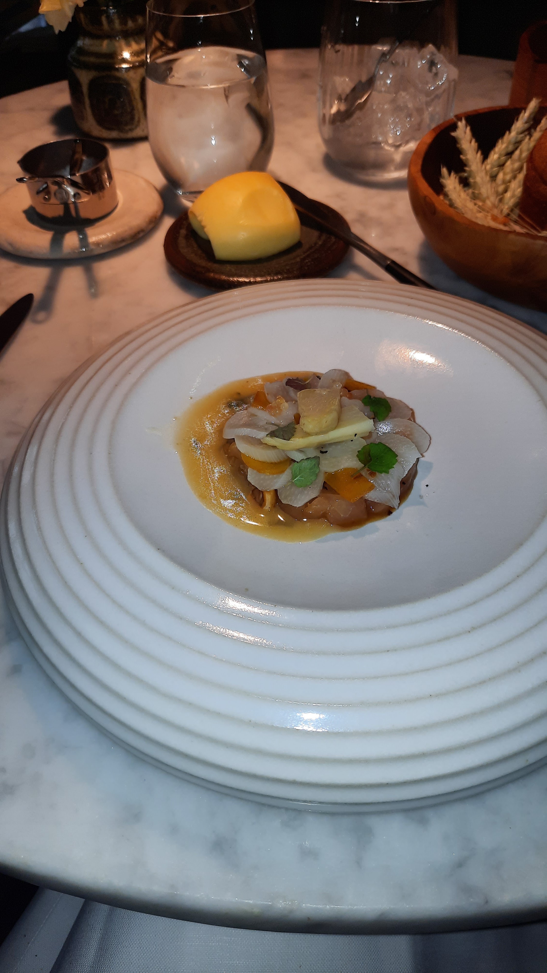 Superbe expérience a part cela, assiette , cadre, carte des vins digne de 2 étoiles. Beaucoup d originalité et de recherche dans les plats. Le service etait tres attentionne et professional mais semblait un peu débordé, trop peu staffé.