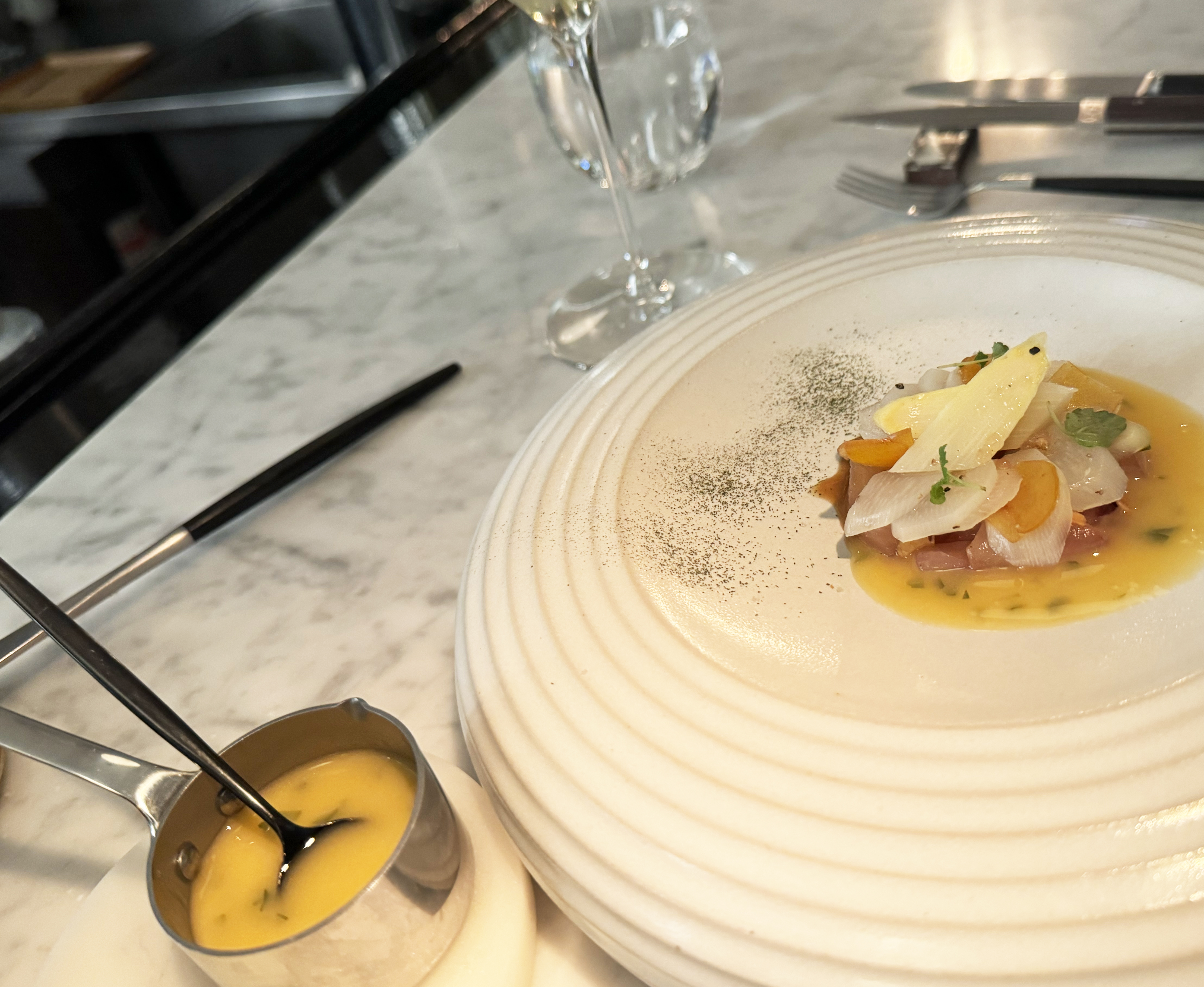 Une expérience délicate et délicieuse avec une équipe aux petits oignons et des plats à tomber par terre. Merci encore pour ce diner très attentionné. Le menus personnalisé était parfait 🥰 !
