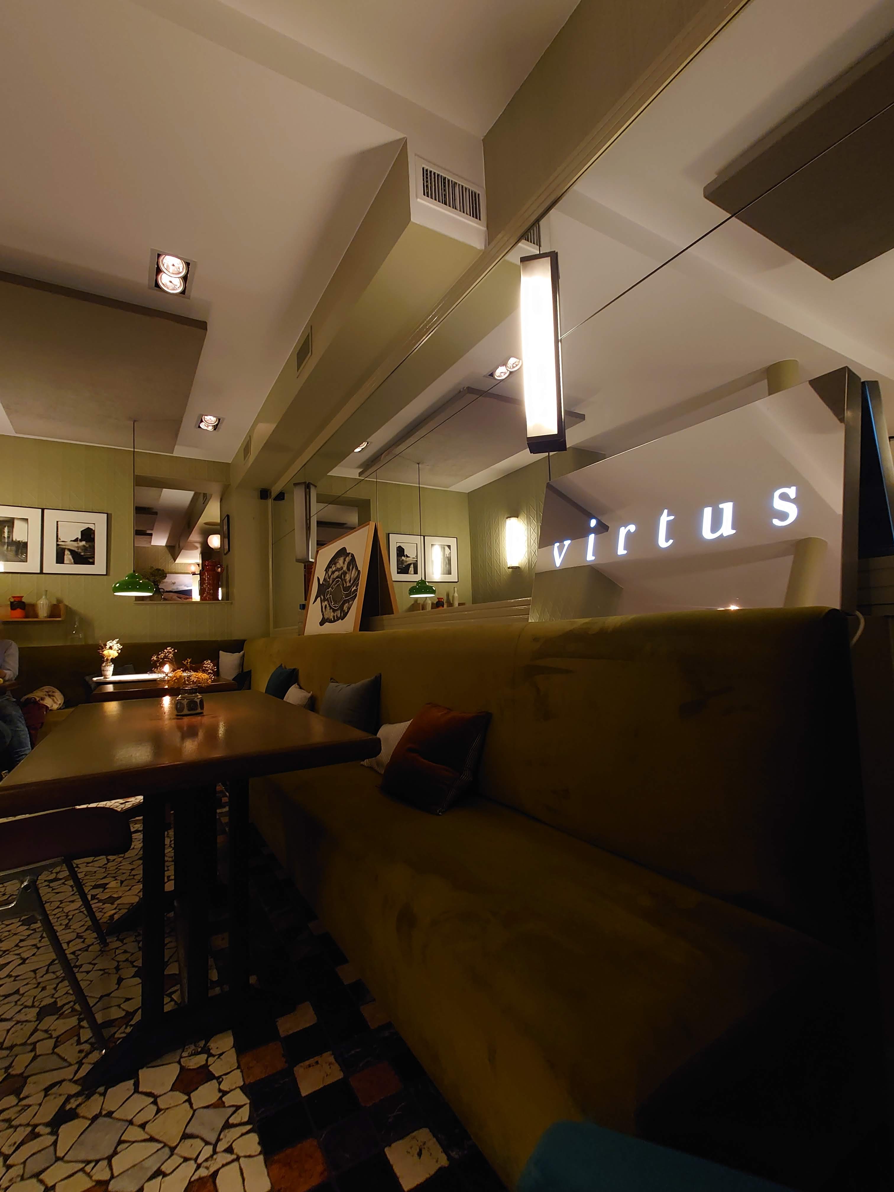 Très belle 1ere expérience chez Virtus, personnel charmant et drôle, plats excellents, espace art déco aménagé avec goût qui en fait un lieu assez unique !
