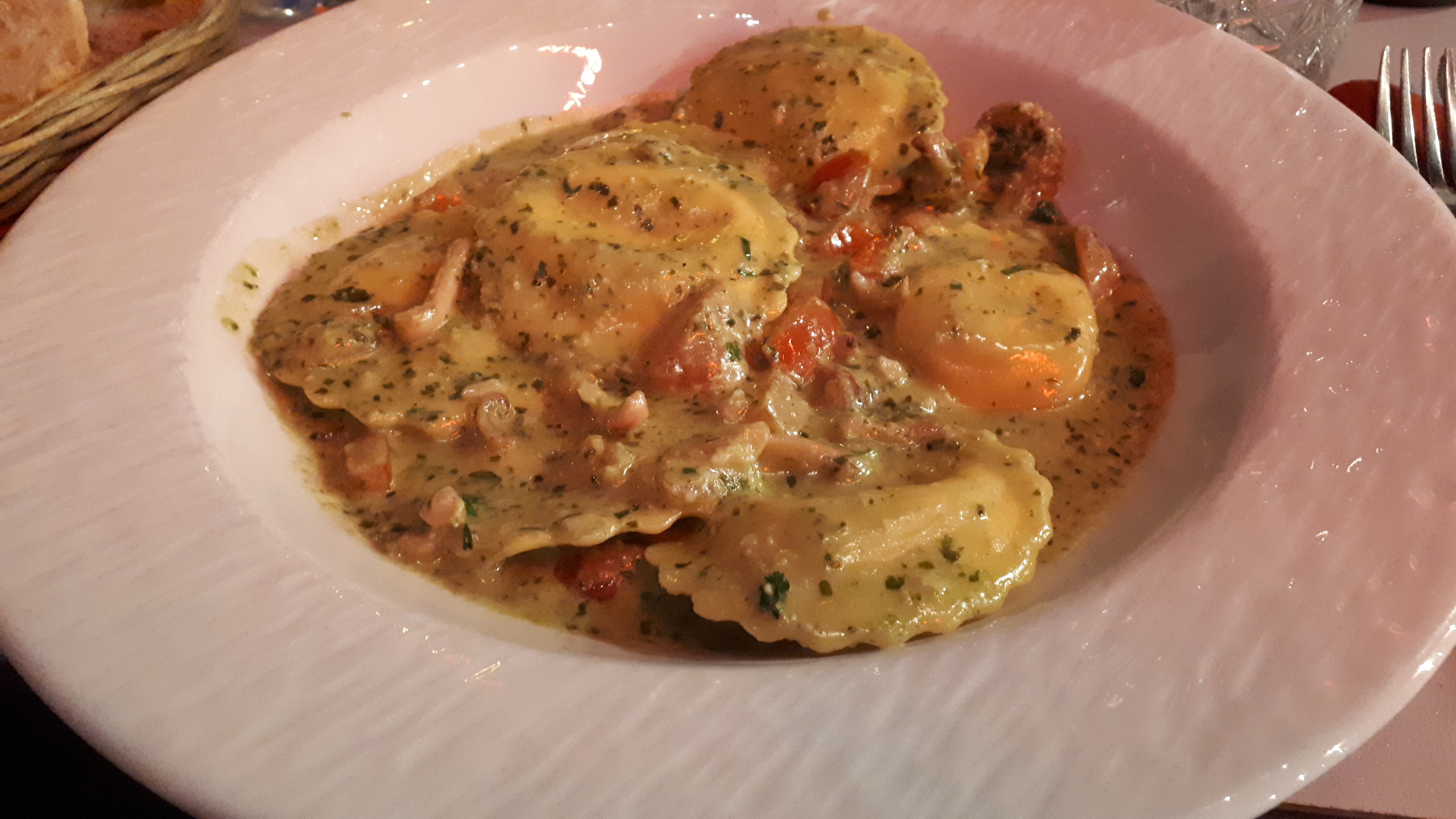 Très contente de mon dîner au Visconti. En entrée, des antipasti bien goûteux à partager. En plat, l’un des choix du jour, des pâtes fraîches maison avec des tronçons de gambas cuits fondants et une sauce crème et truffe, exquis! J’aurai plaisir à revenir tester d’autres plats de pâtes ou des pizza qui m’ont fait de l’œil!
