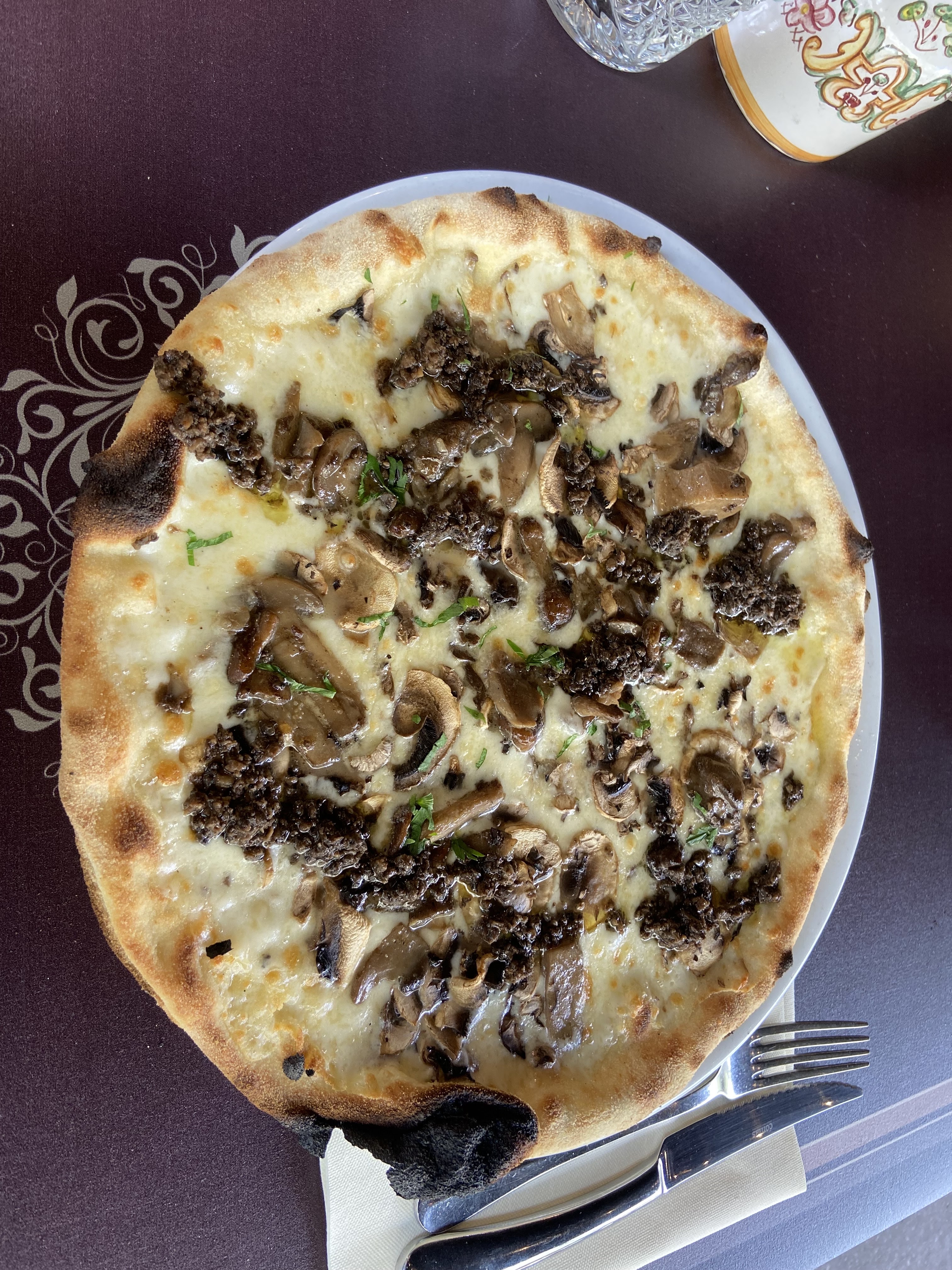 Nous avons pris la pizza aux truffes et c'était vraiment pas mal ! Et les conseils en matière de vins étaient également excellents. L'une des meilleures pizzerias de la région, pas étonnant qu'elle soit toujours pleine.