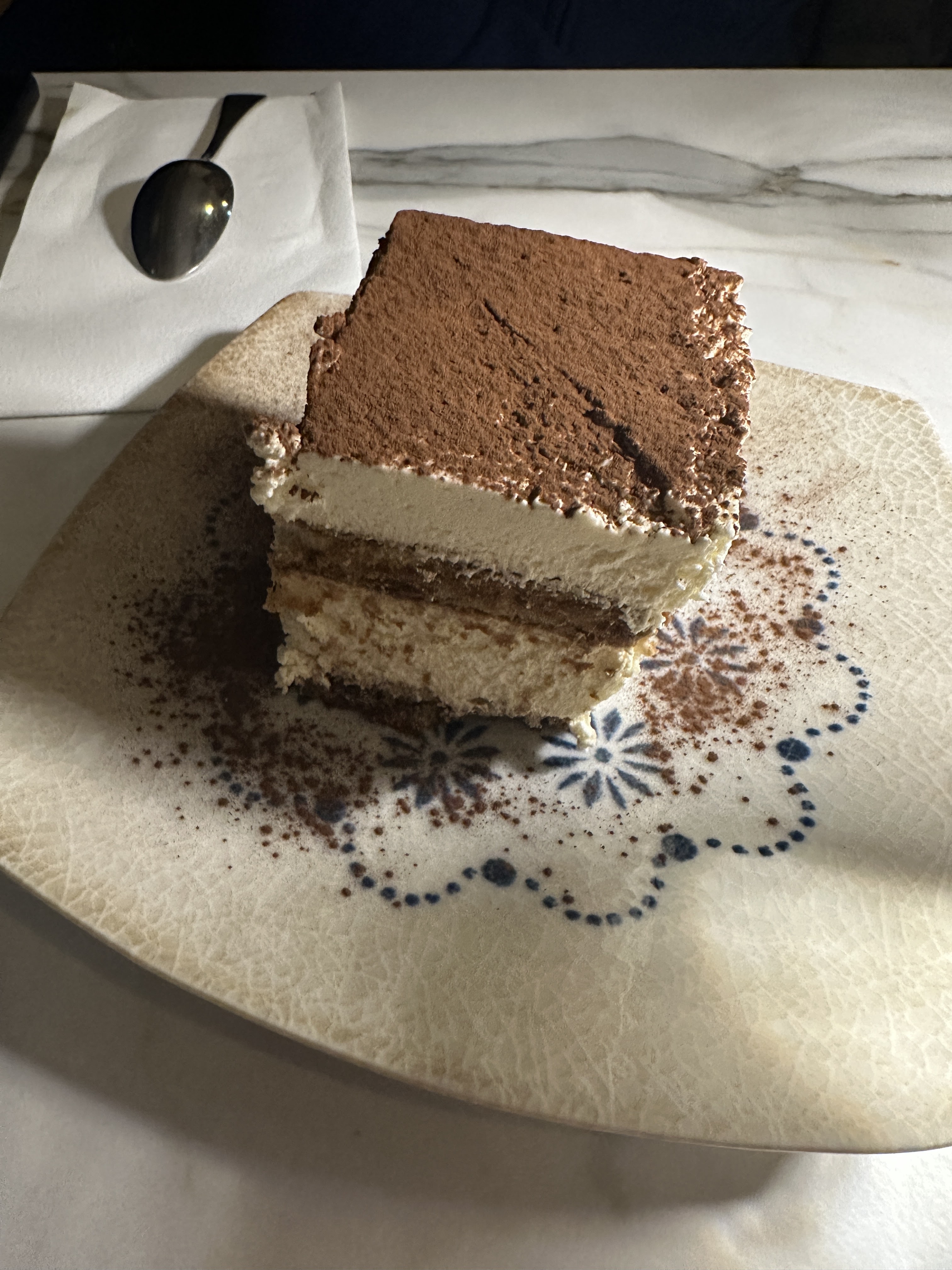 Belle trouvaille près de l'Arc. La nourriture était bonne (j'ai essayé la vongole) et les portions étaient généreuses (voir photo du tiramisu). Certainement bien mieux par rapport à certains endroits touristiques de la région, et à un prix raisonnable également. Points bonus pour être ouvert un dimanche. Je le recommanderais 👍