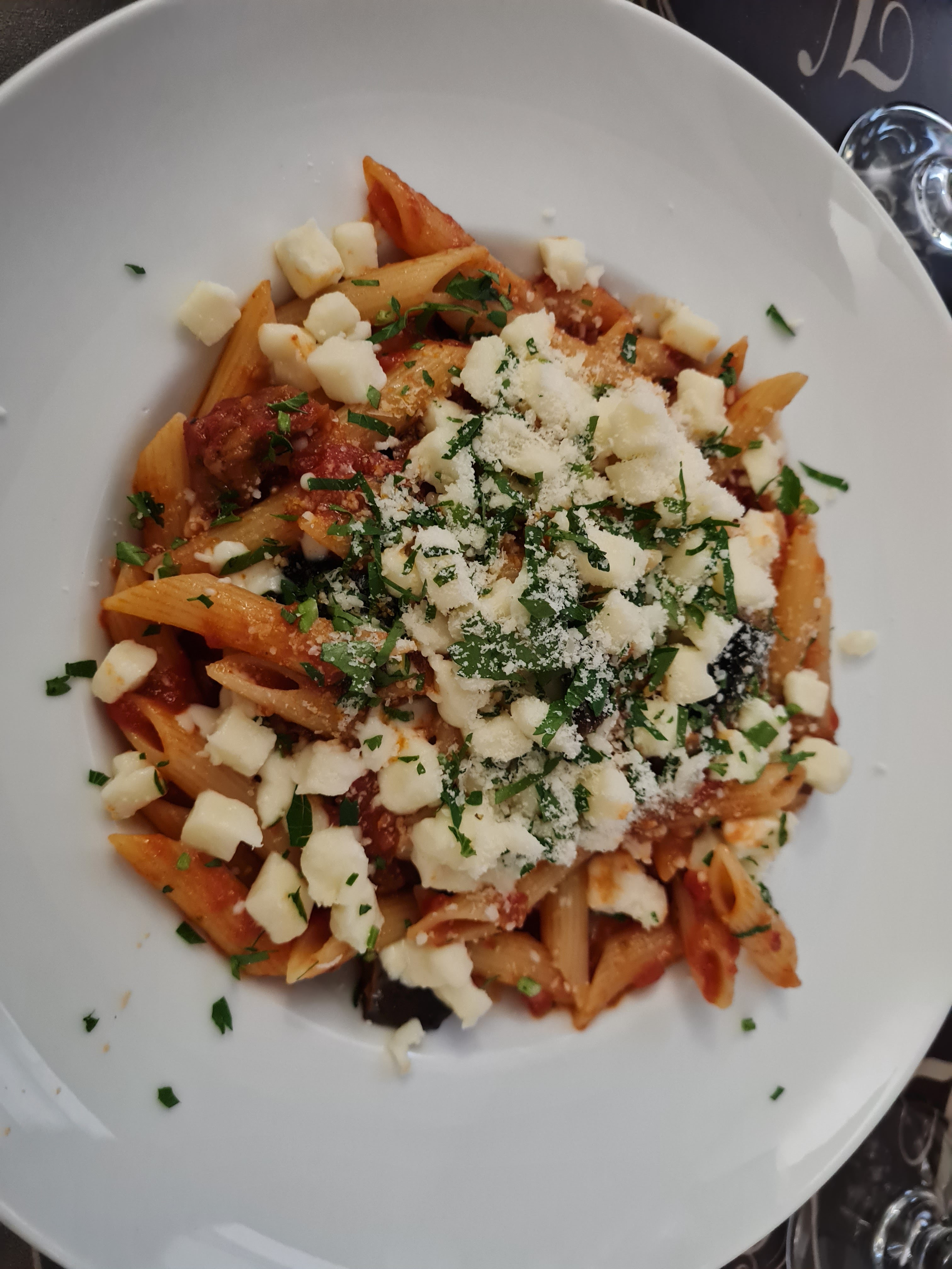 Excellente cuisine italienne, les pennes aubergines mozzarela sont un délice .