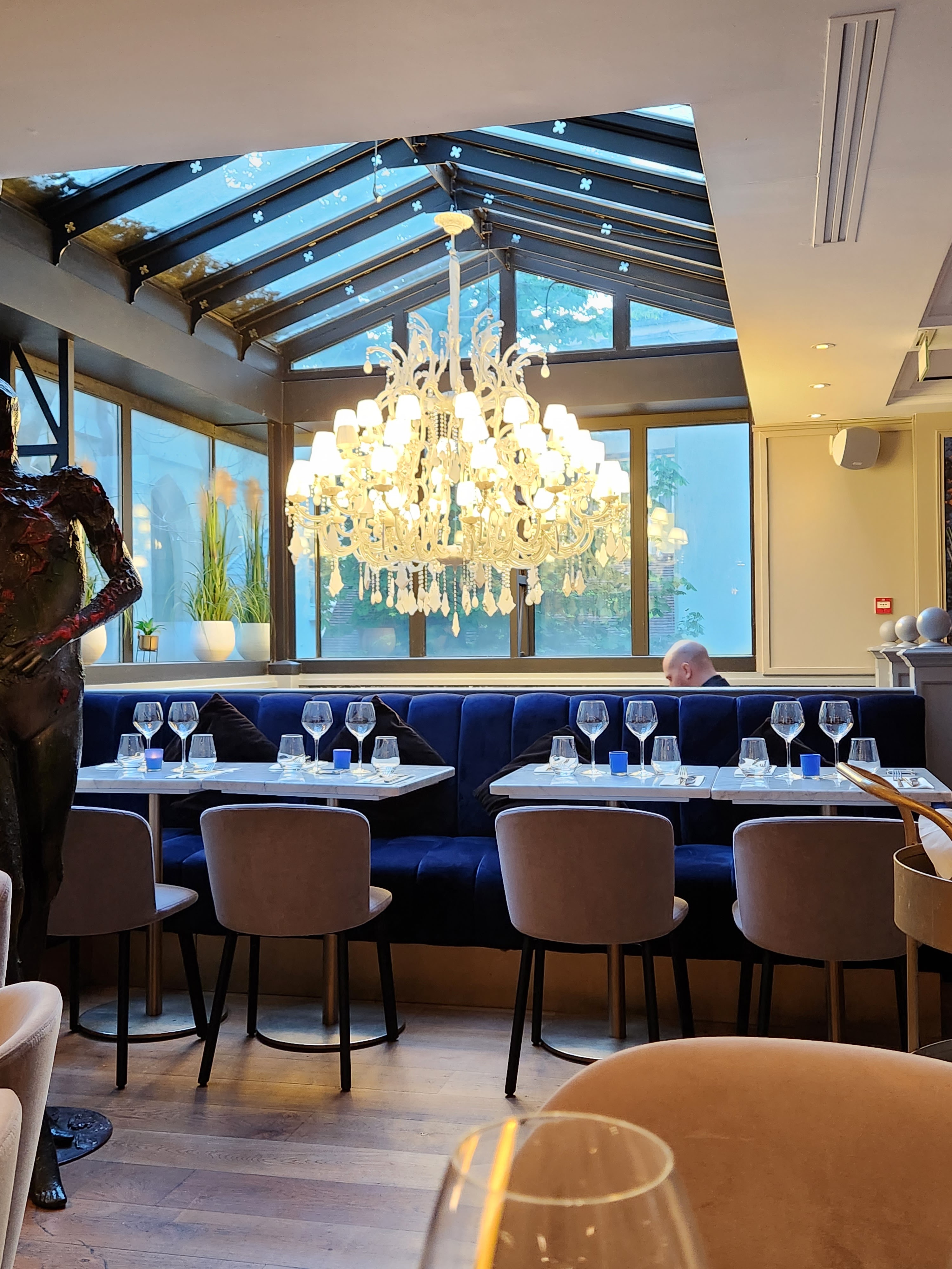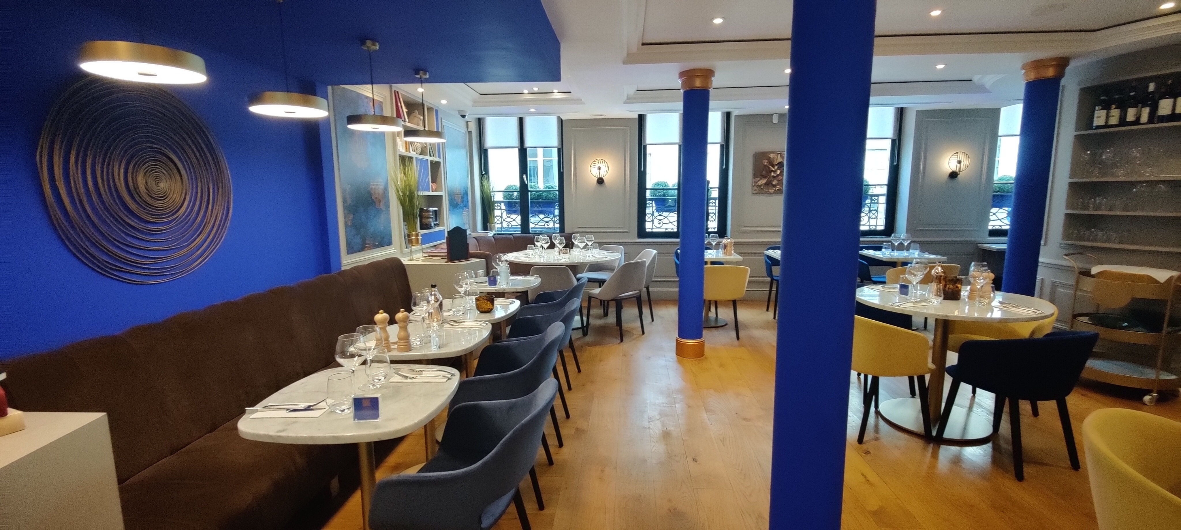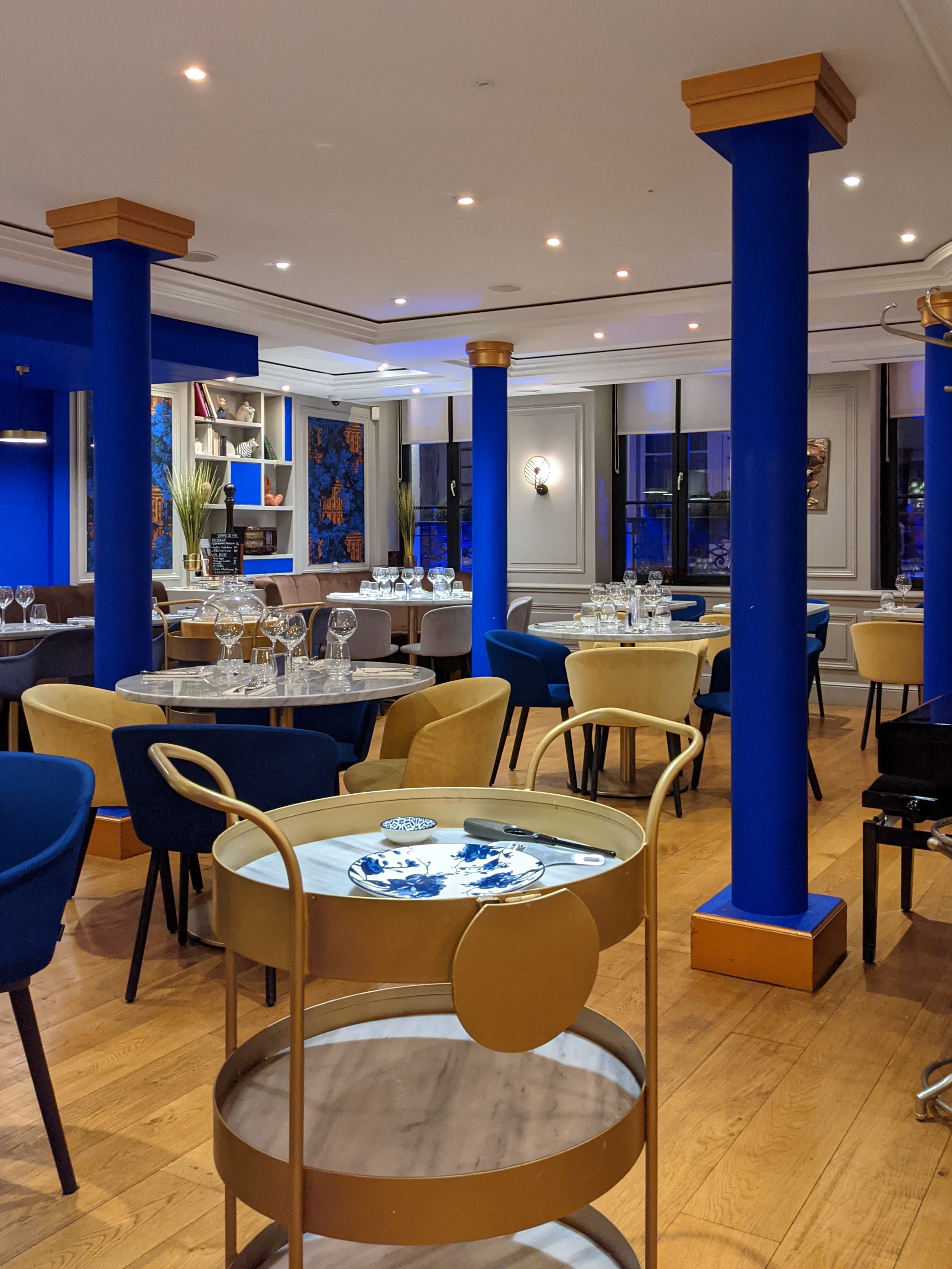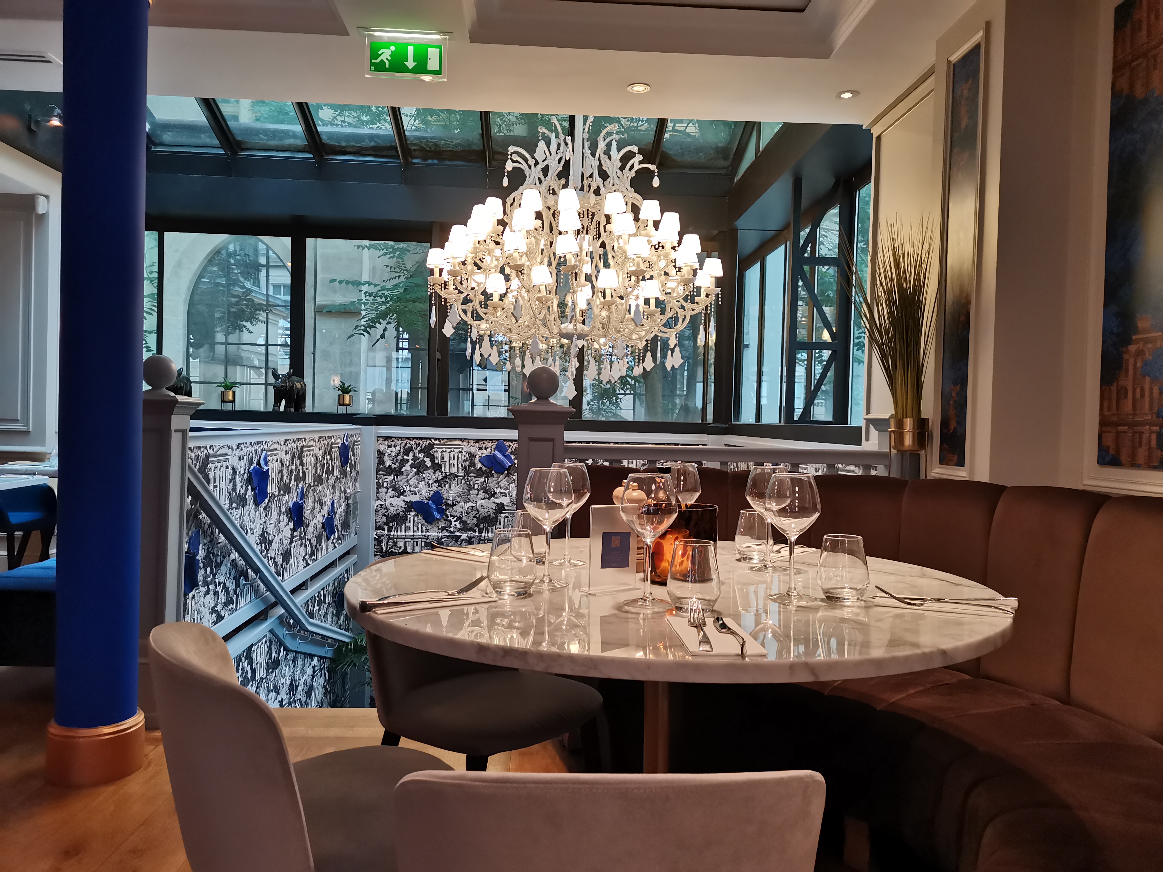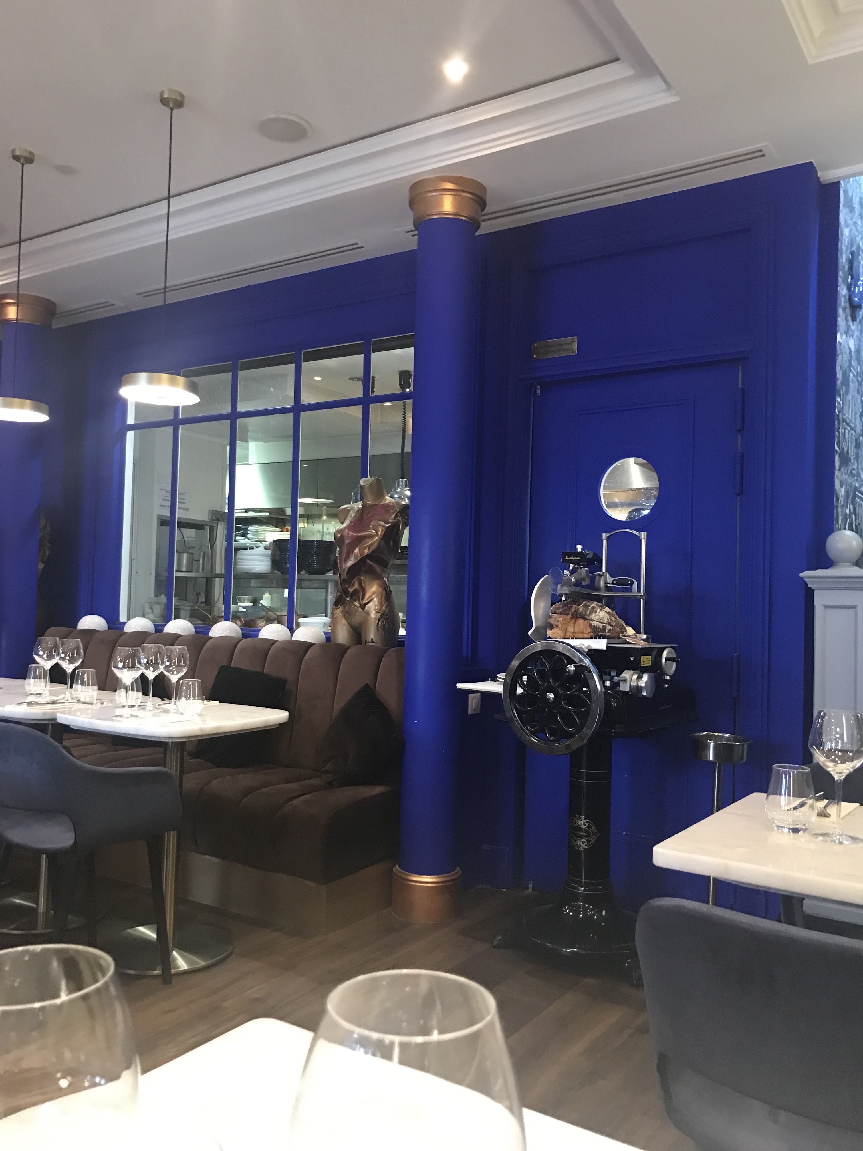 Une belle surprise. L'ambiance générale bonne très bonne. Le cadre oh mon dieu, très beau, belle déco, le bleu Klein franchement très sympa. Le fumoir il faut faire un saut. Le personnel sympa. L'entrée une tuerie. Les plats une tuerie, j'ai mangé comme un roi. La purée à la truffe était trop salée, le patron a goûté, ce dernier a remplacé par un plat de pâte à la tomate (à tomber par terre, trop bon) Le dessert J'ai pris une panacota au beurre salé. Je l'ai trouvé une peu trop salé à mon goût, mais il est bon cela dit. Bref je valide.