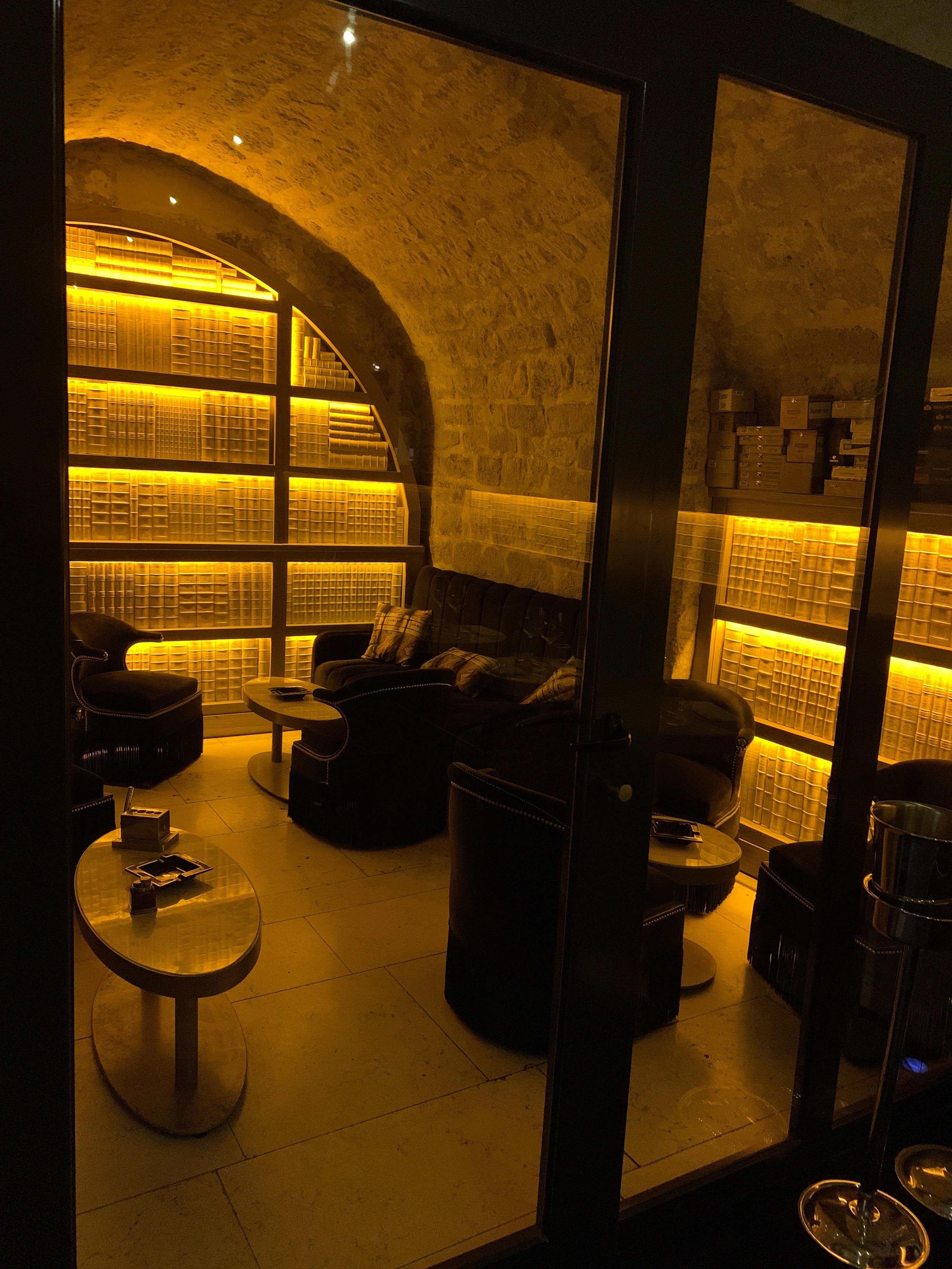 Notre dîner préféré à Paris ! Mon petit ami et moi sommes venus dîner après avoir trouvé l'endroit sur des cartes, initialement intrigués par le bar à cigares dont ils disposent. Le directeur nous a accueillis chaleureusement et a vendu à mon petit ami un cigare incroyable, et nous avions même la chambre pour nous seuls car nous y sommes allés dès leur ouverture. Après, nous sommes allés nous asseoir pour le dîner et il nous a assis en privé en bas. Nous avons mangé certaines des meilleures pâtes que nous ayons jamais mangées, des boissons délicieuses et l'ambiance était incroyable. La cave où se trouve le fumoir a une signification historique étonnante, mais je vous laisse le découvrir par vous-même ! Félicitations au chef!